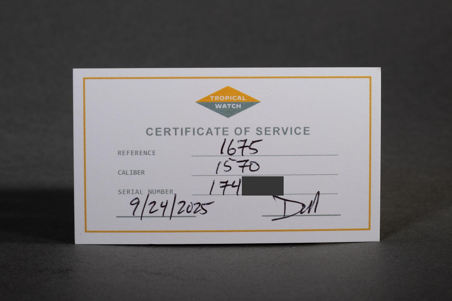Accessories: Box, papers, chrono cert papers & Tropical Watch service papers.