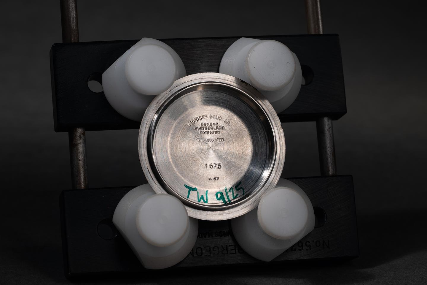Bracelet: The 12-link Swiss rivet bracelet is excellent, showing some light wear from use. The clasp is stamped with a 1968 date code.