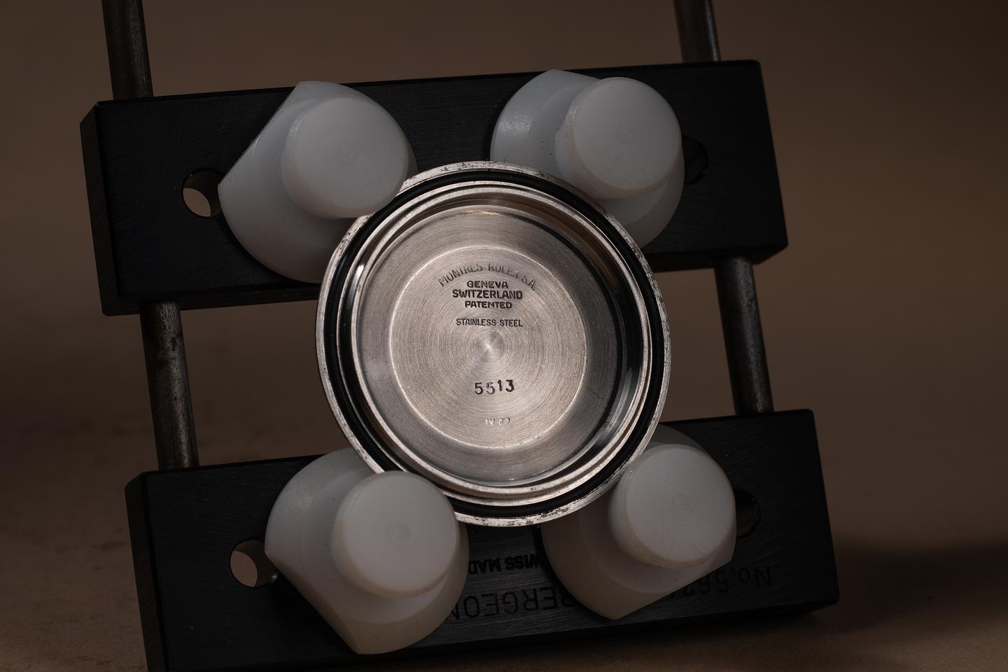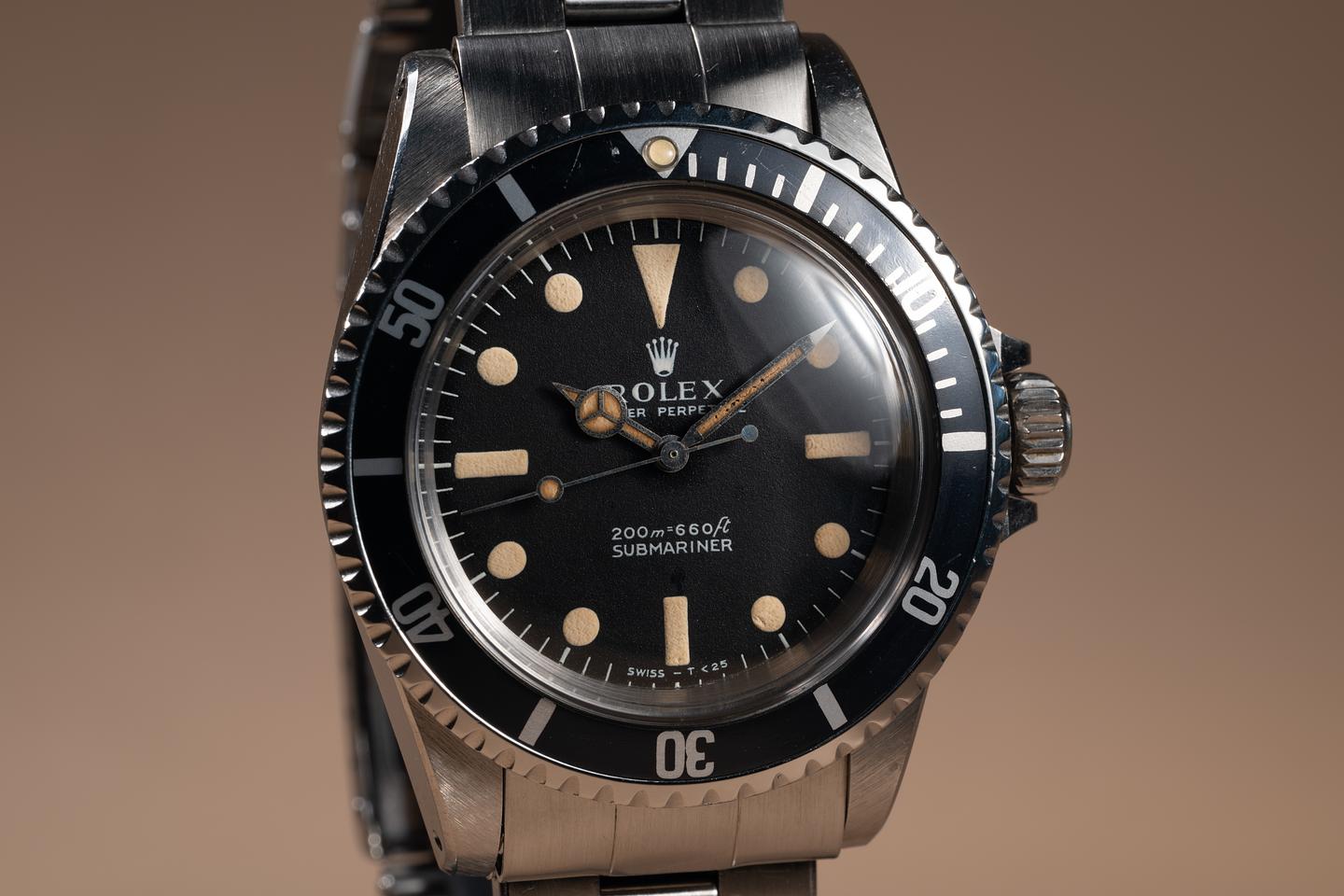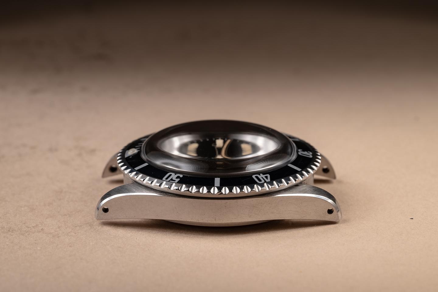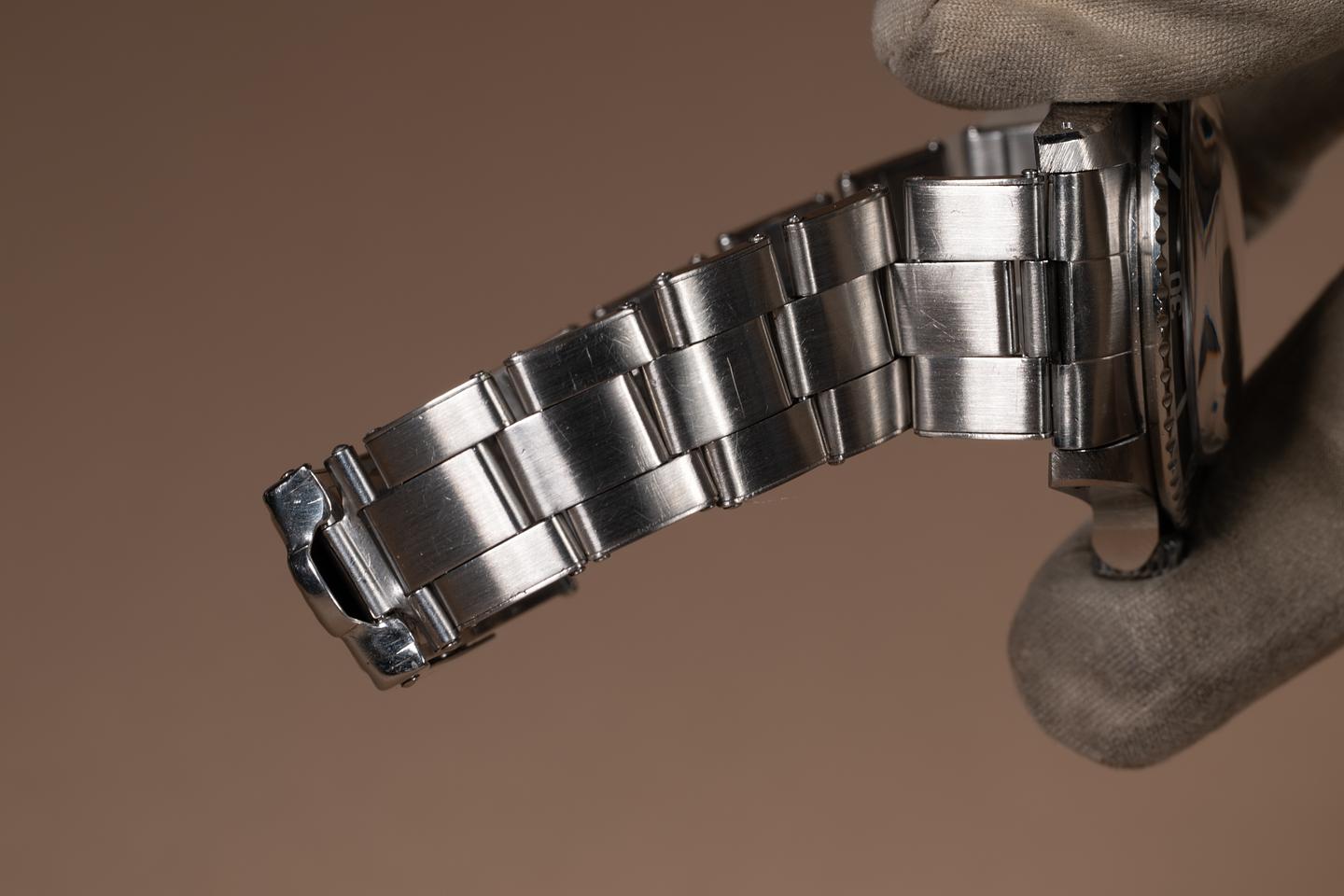 Case: The recently polished case is excellent, showing wide, sharp, prominent bevels and only very light wear. The black fat-font bezel insert is also in excellent condition showing only light wear from use.