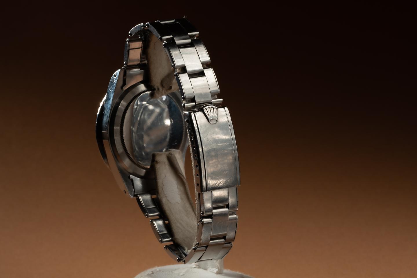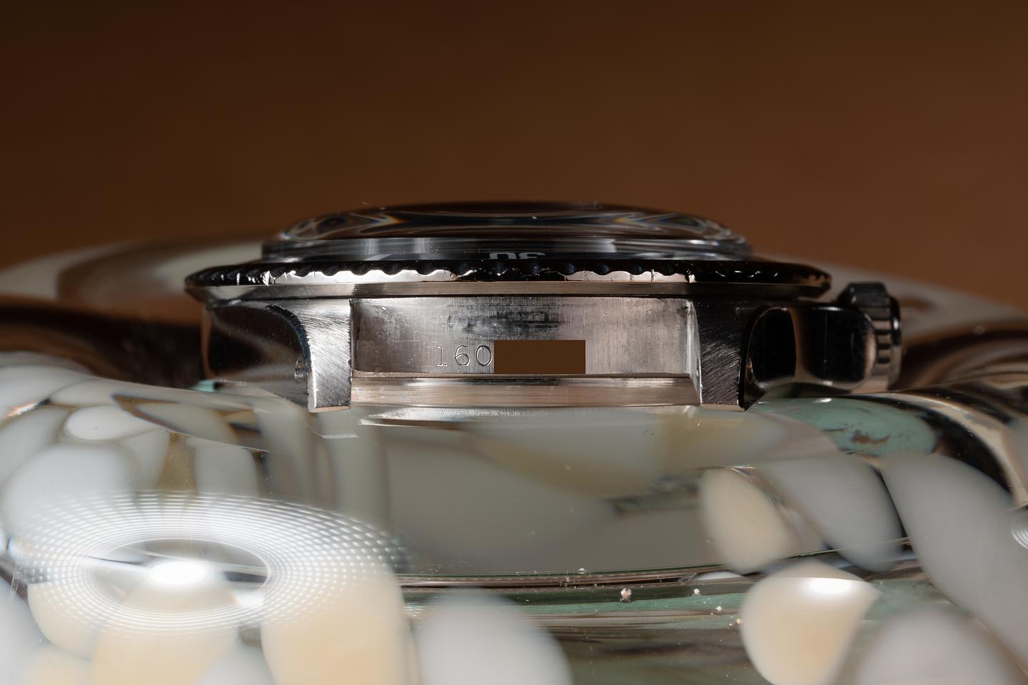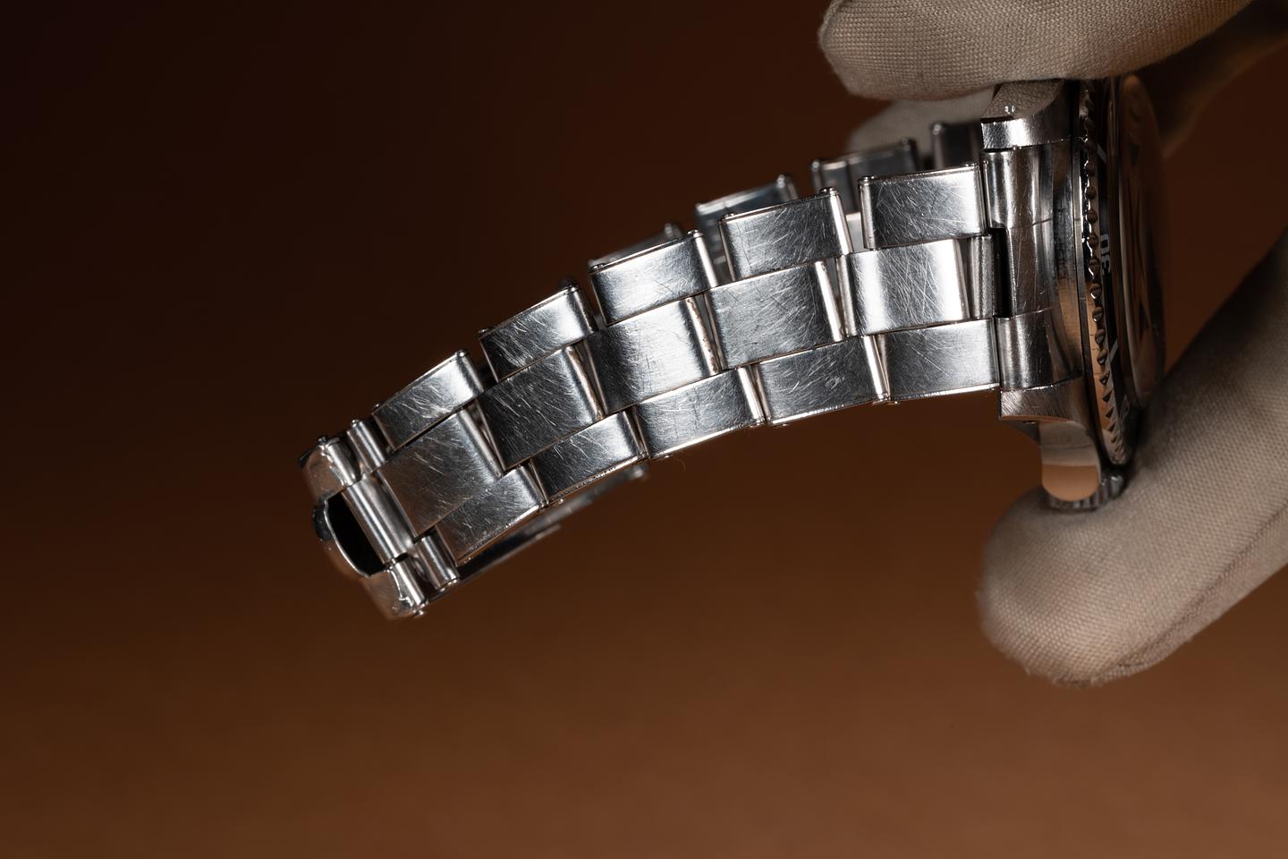 Case: The previously polished case is excellent showing sharp prominent bevels and some light wear from use. The black bezel insert is also in excellent condition showing only light wear from use.