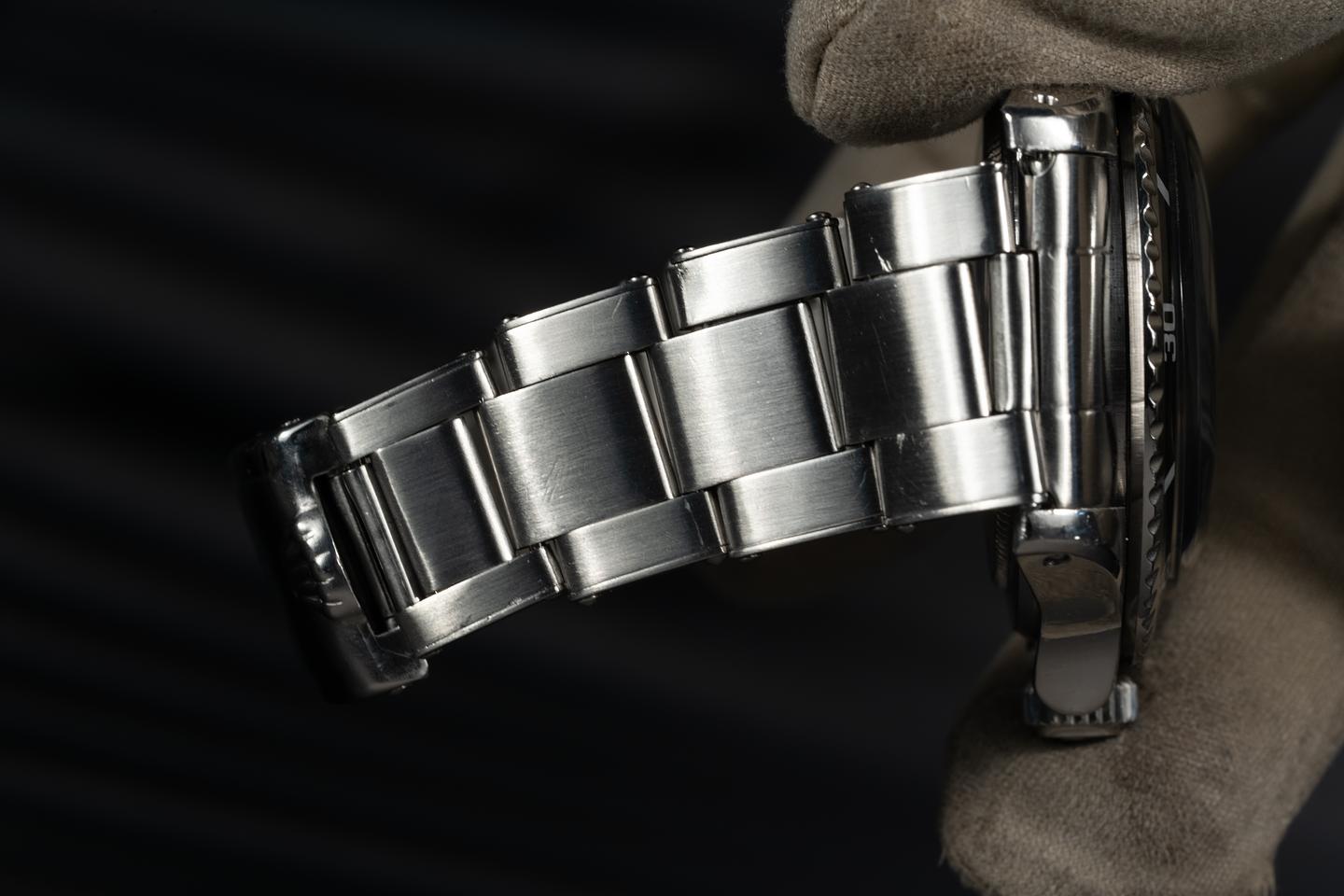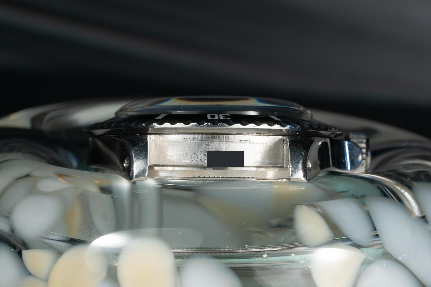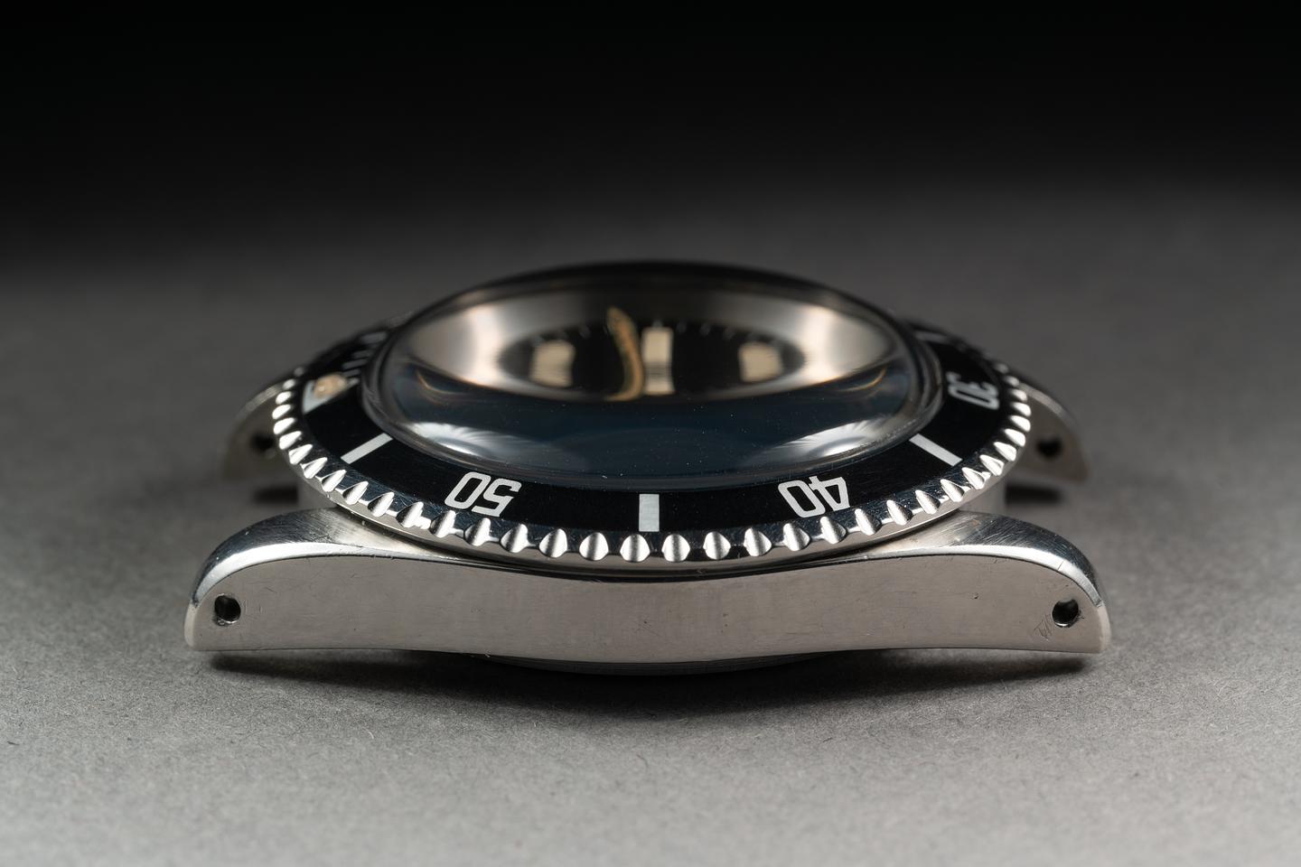 Case: The thick and even case is excellent showing prominent bevels and some light wear from use. The black bezel insert is also in excellent condition showing only very light wear from use.