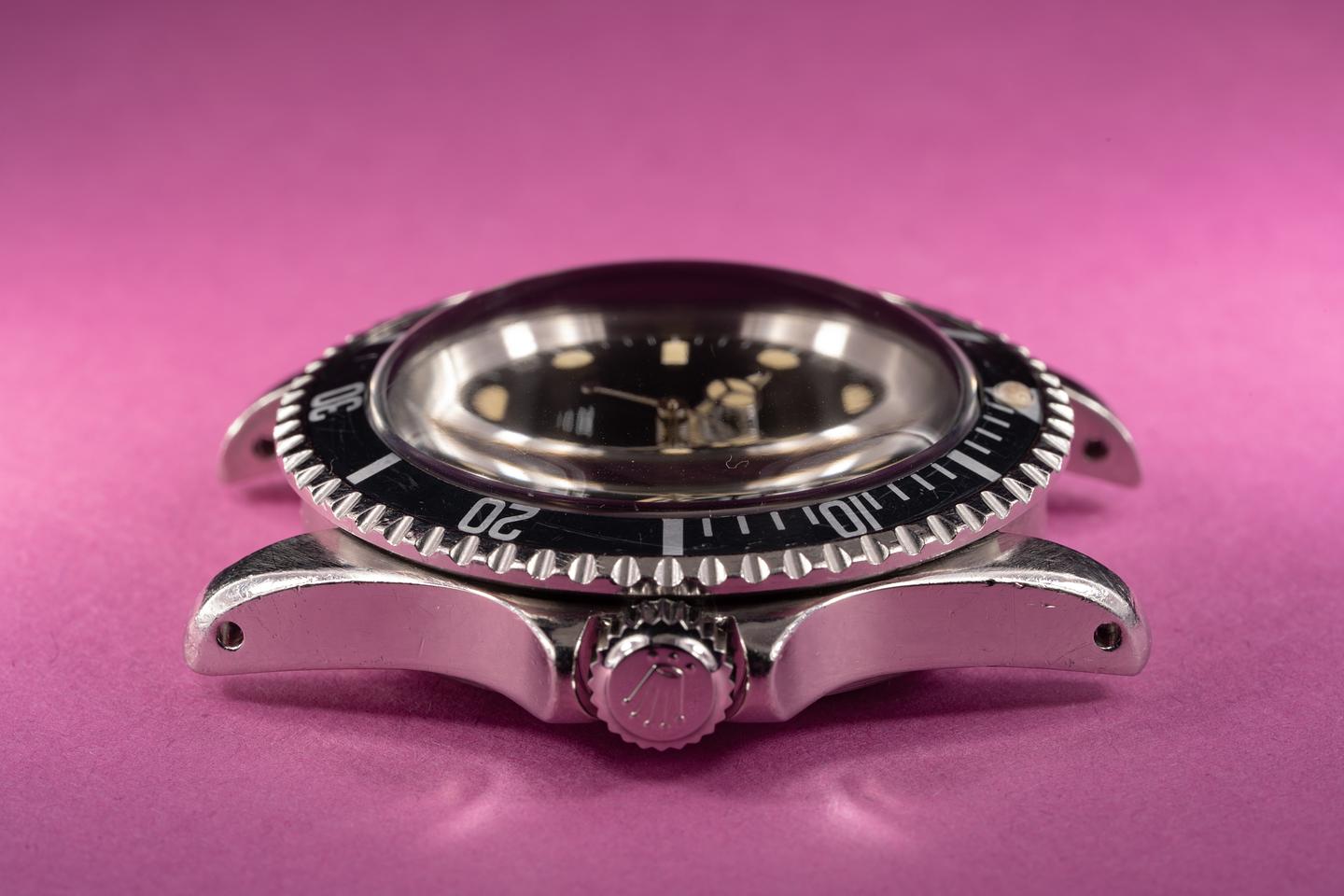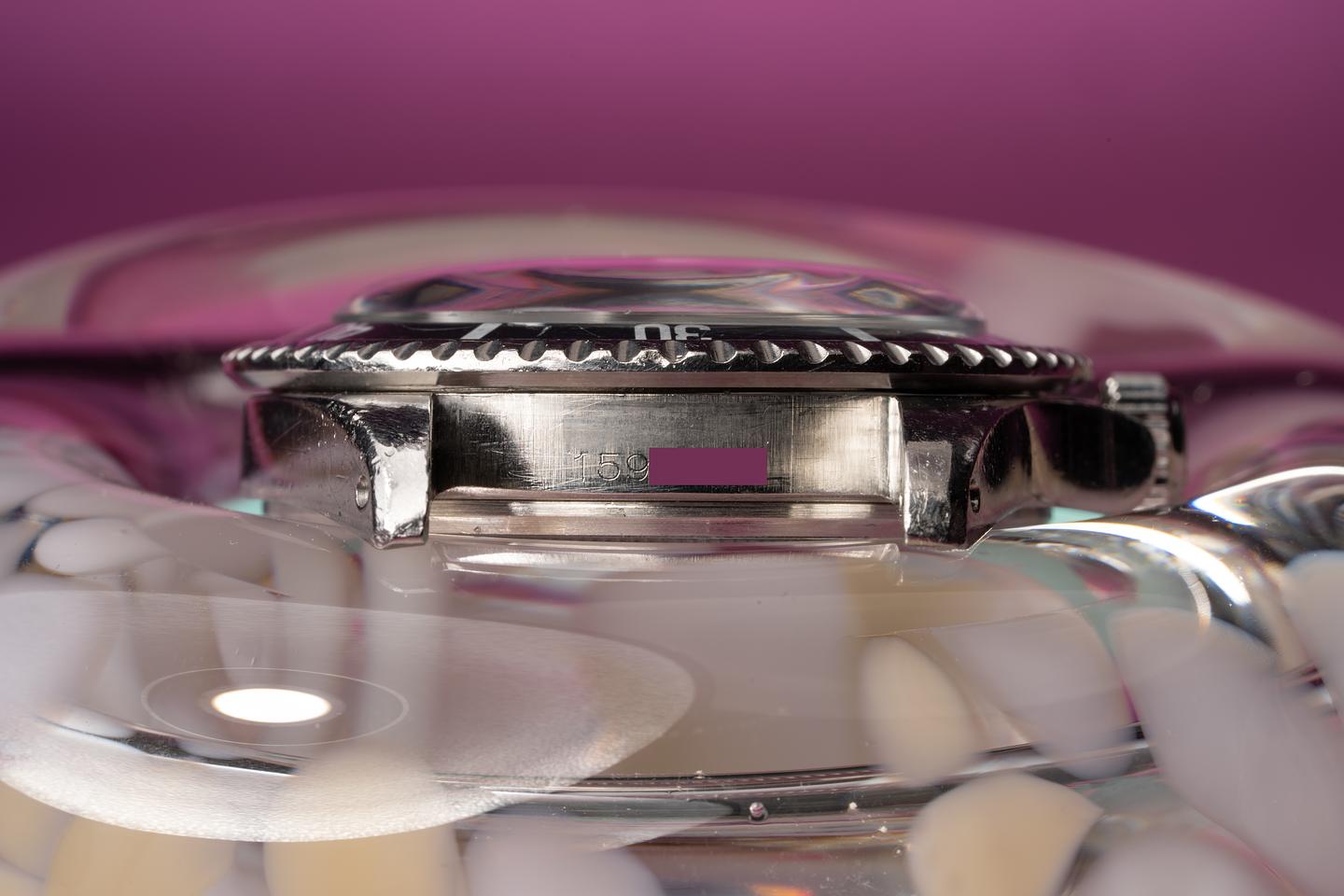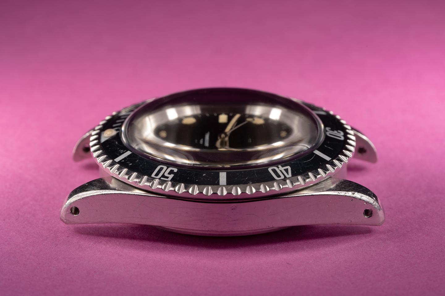 Case: The previously polished case is excellent and shows some wear from use. The black fat font bezel insert shows some wear and has faded to a satin blue-grey hue.