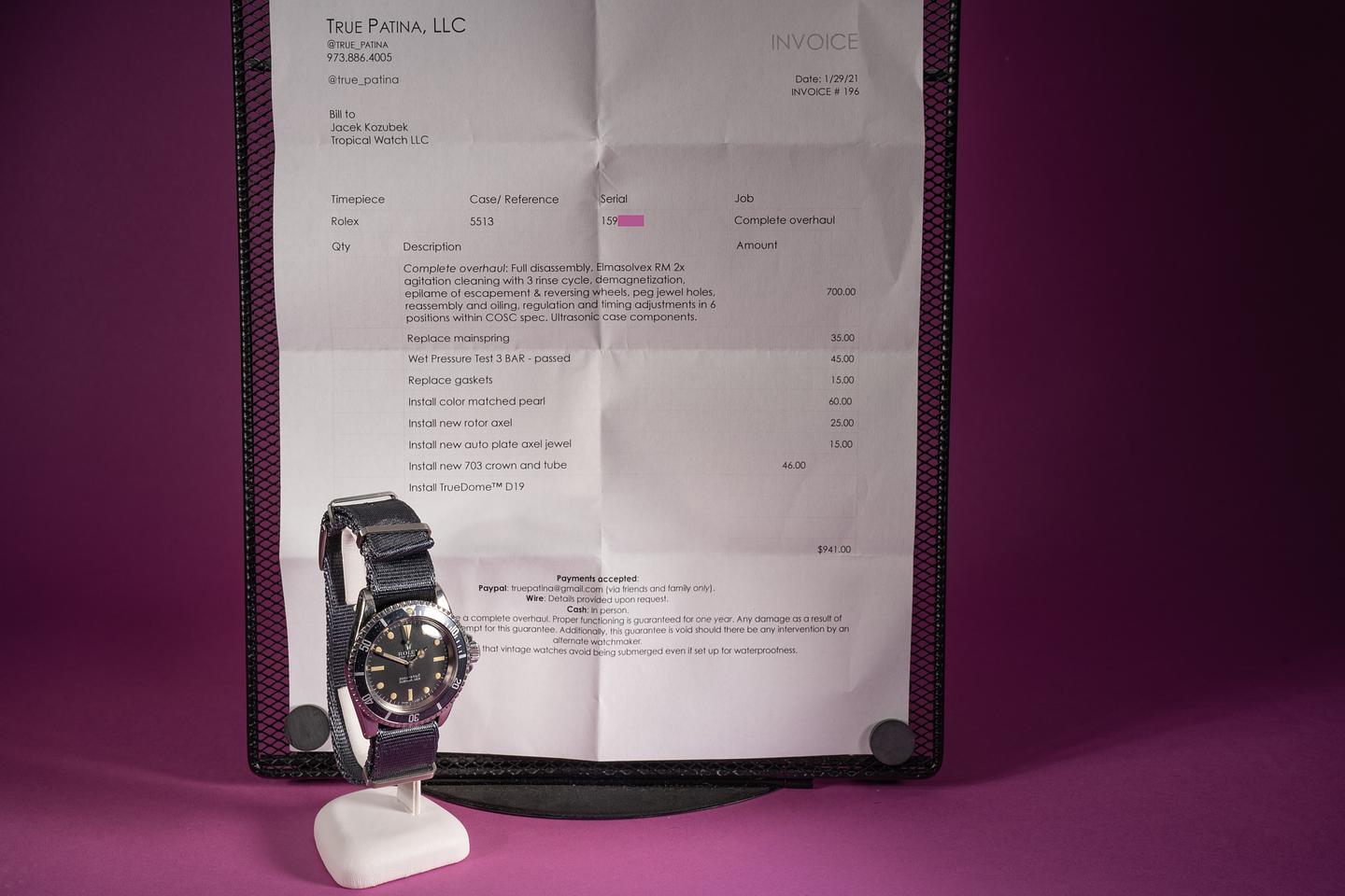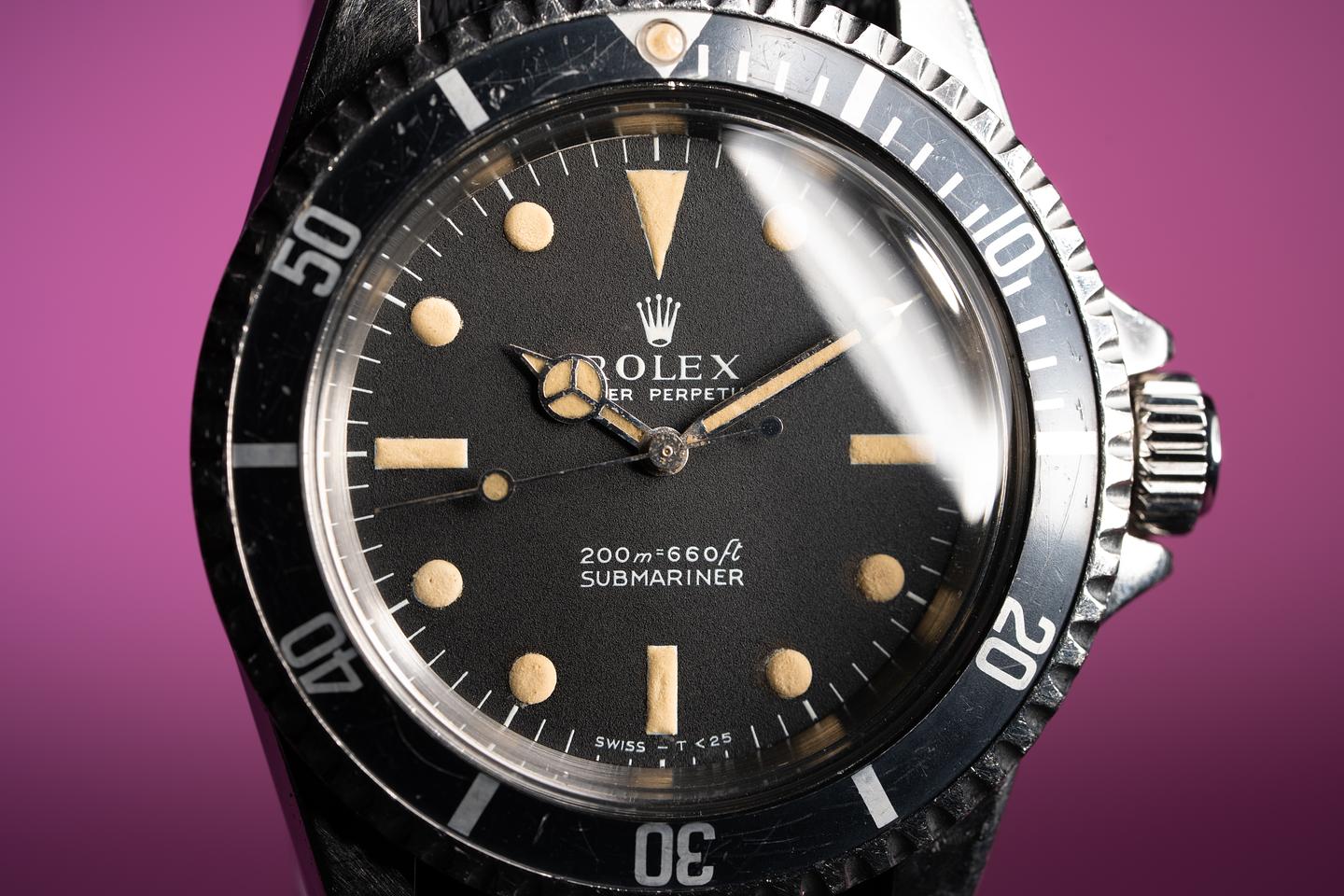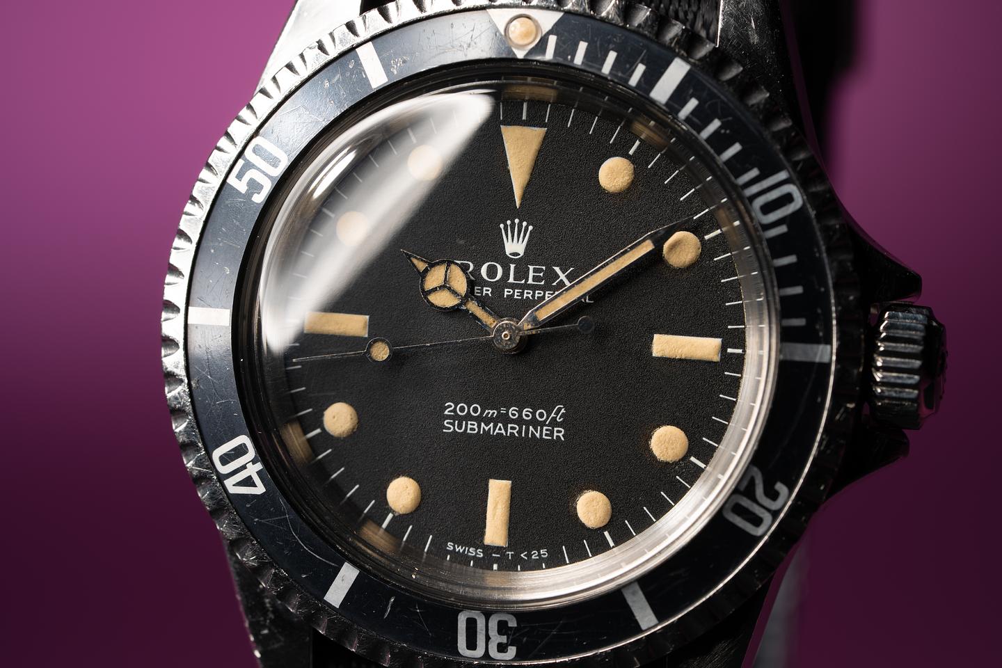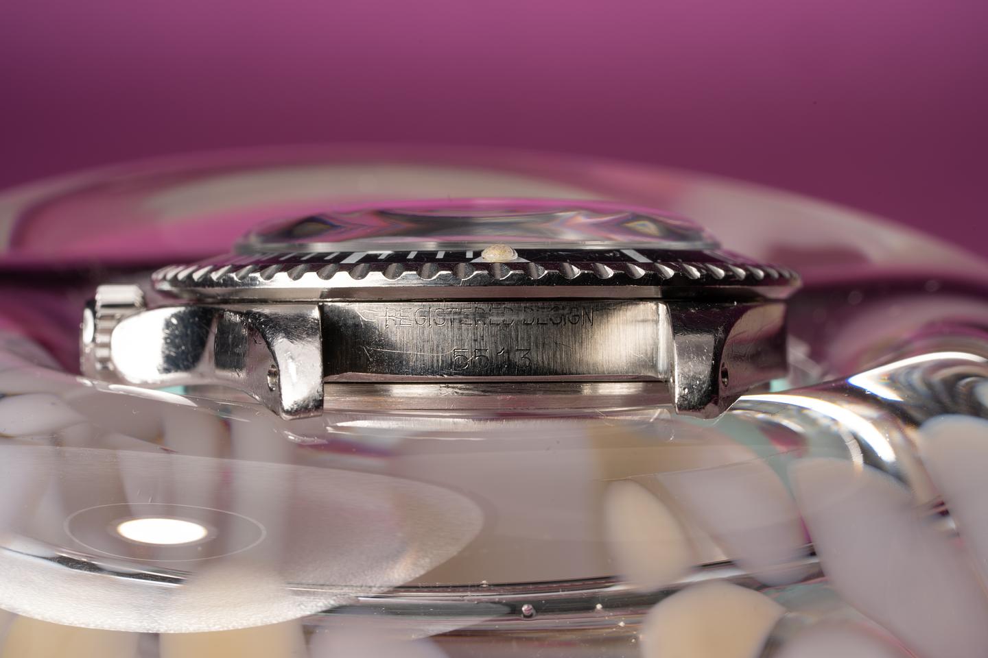 Case: The previously polished case is excellent and shows some wear from use. The black fat font bezel insert shows some wear and has faded to a satin blue-grey hue.
