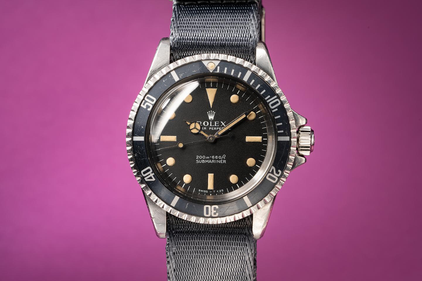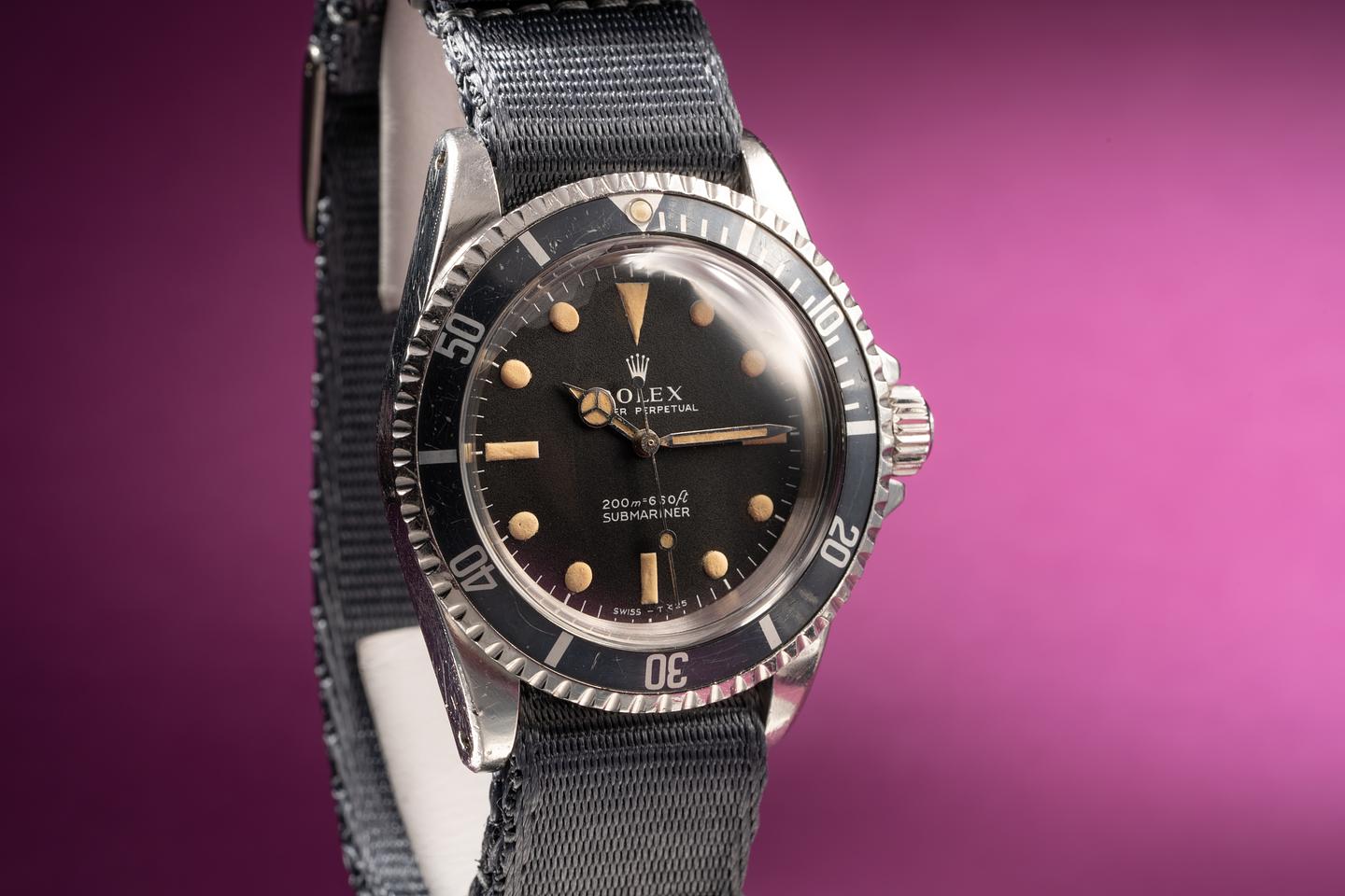 Dial: The matte black dial is excellent and shows very light wear from age. The tall puffy lume plots have aged to a warm creamy hue and the hands match perfectly. All lume glows brightly when exposed to UV and falls off rapidly at the same rate.