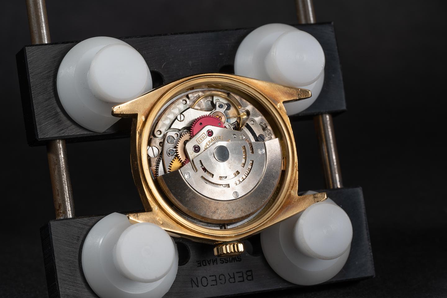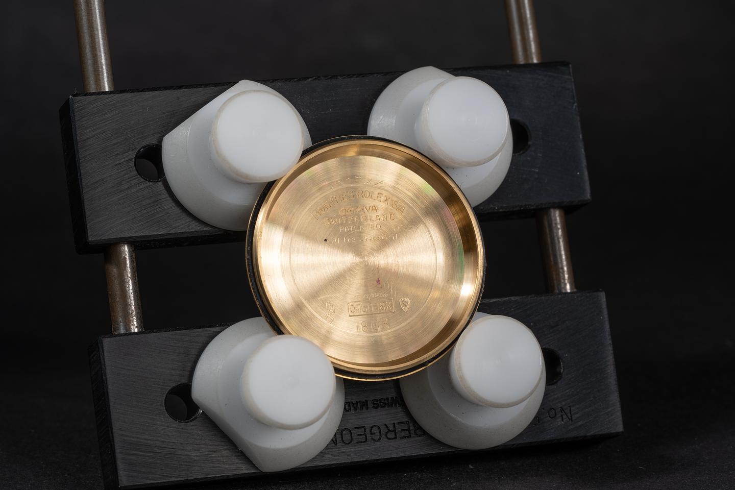 Case: The 18k yellow gold case is excellent showing only light wear from use. The 18k yellow gold fluted bezel is also in excellent condition showing only light wear from use.