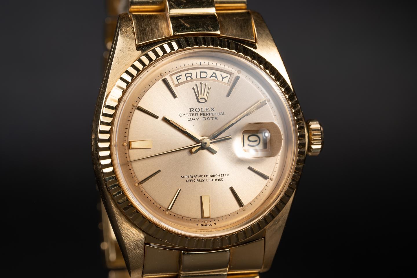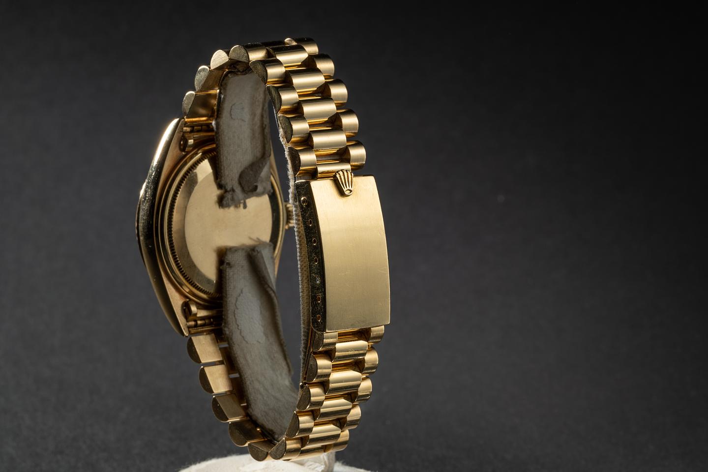 Bracelet: The 19 link 18k yellow gold made in Japan President bracelet is excellent showing only light wear for its age.