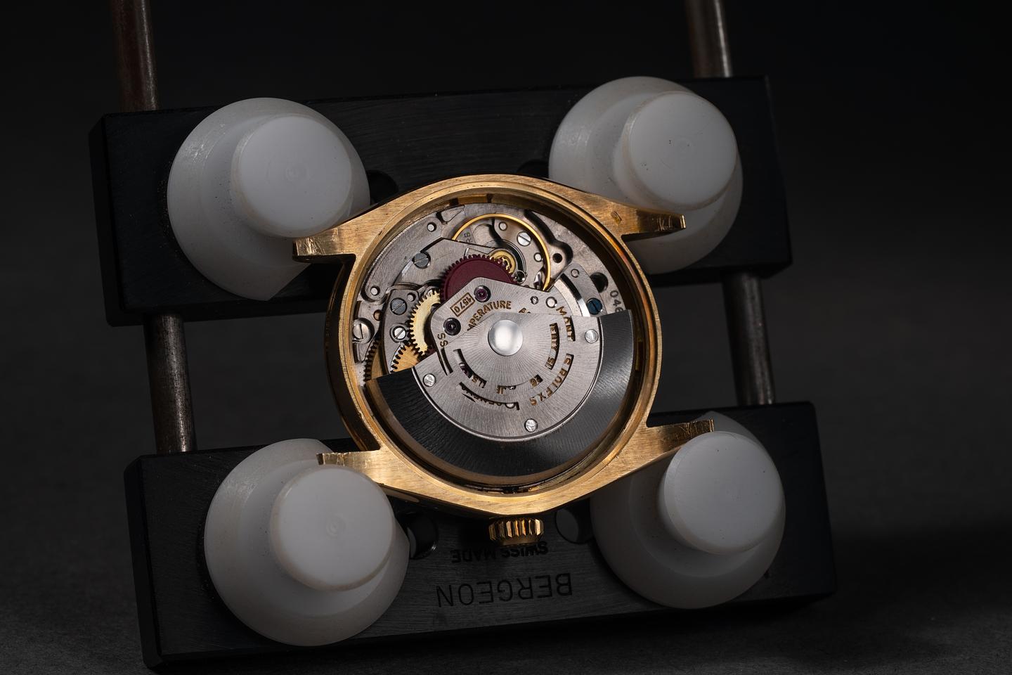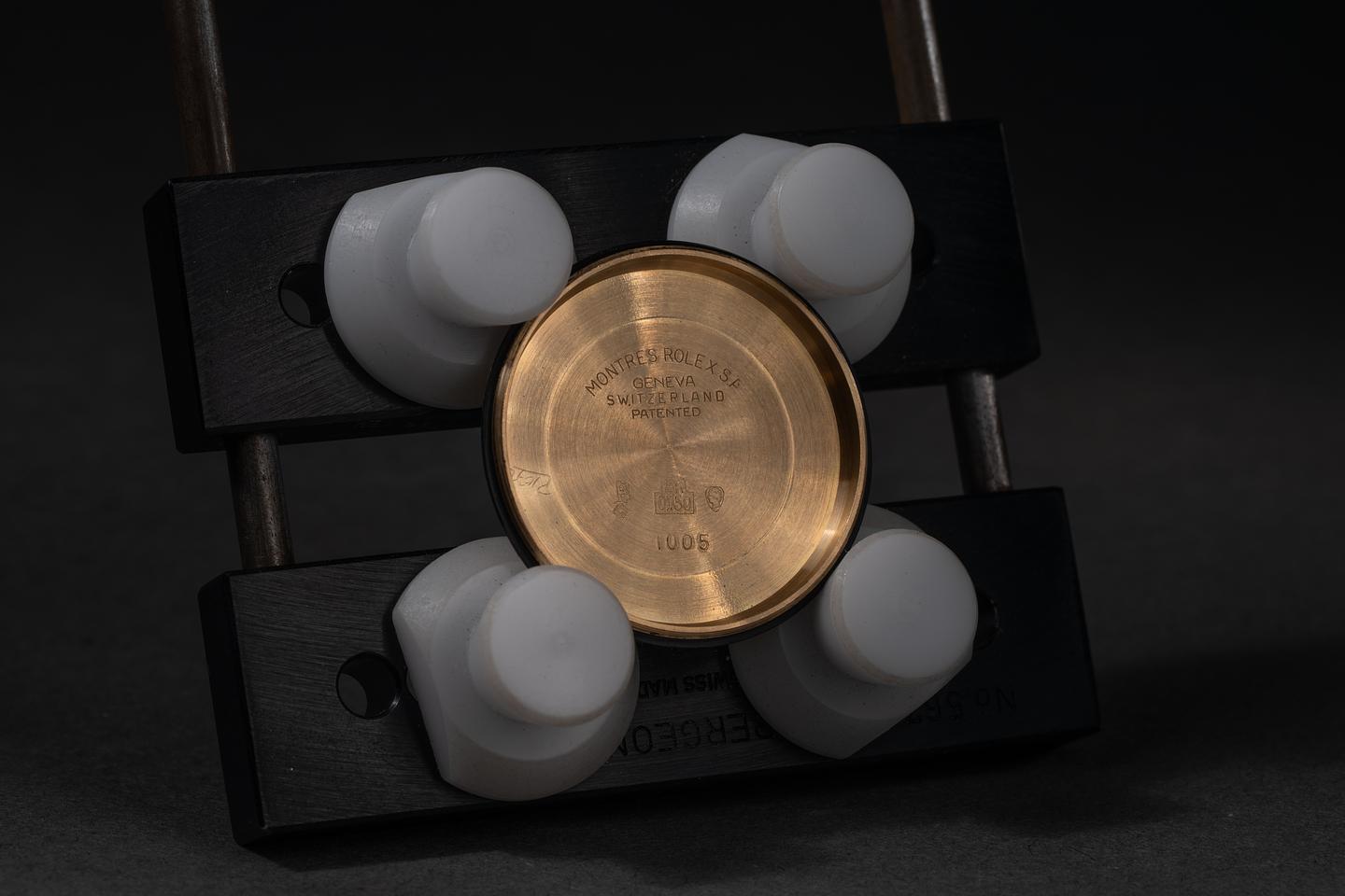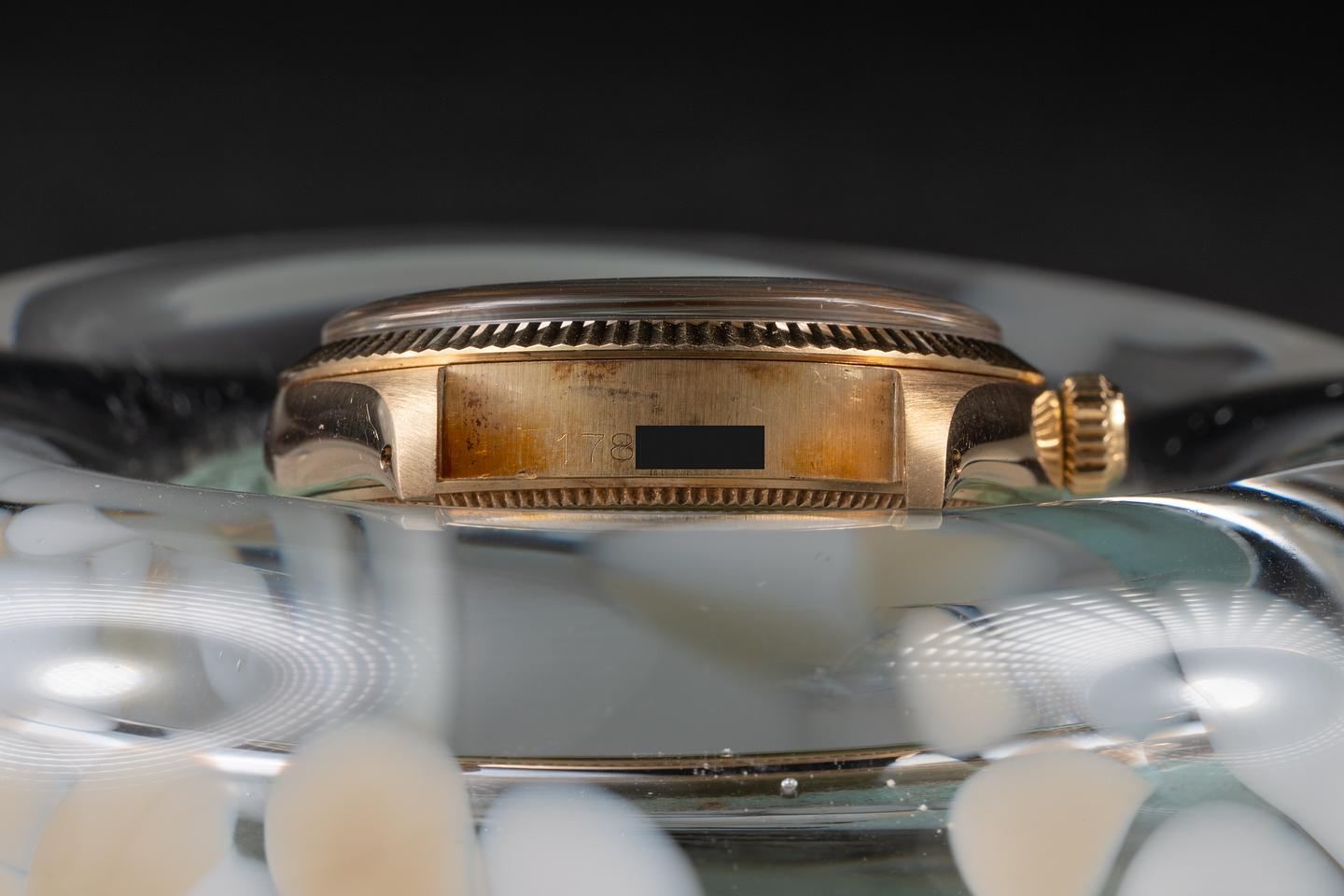 Case: The sharp 34mm 18K yellow gold case is excellent, showing only very light wear from use. The sharp 18K yellow gold fluted bezel is also in excellent condition, showing only very light wear from use.