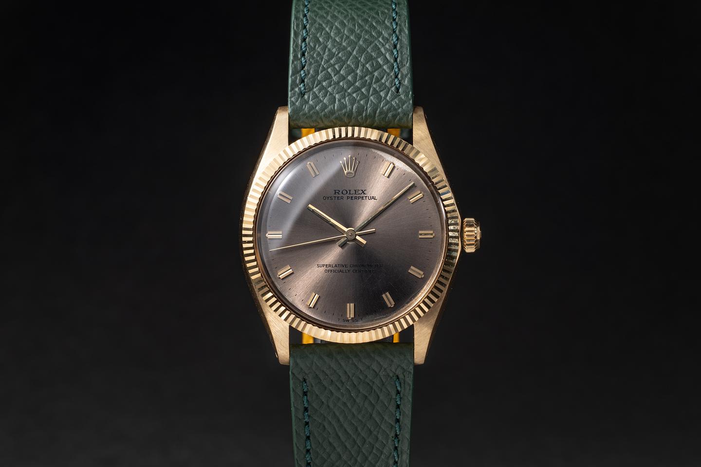 Dial: The grey dial is excellent, showing some lightening around the edge of the dial. The lume has aged to a warm, creamy hue, and the hands match perfectly.