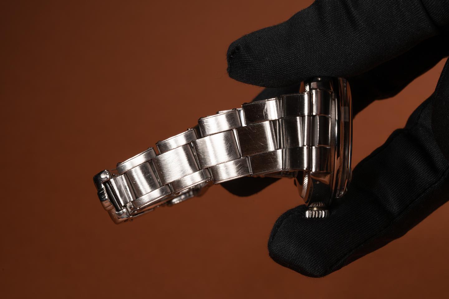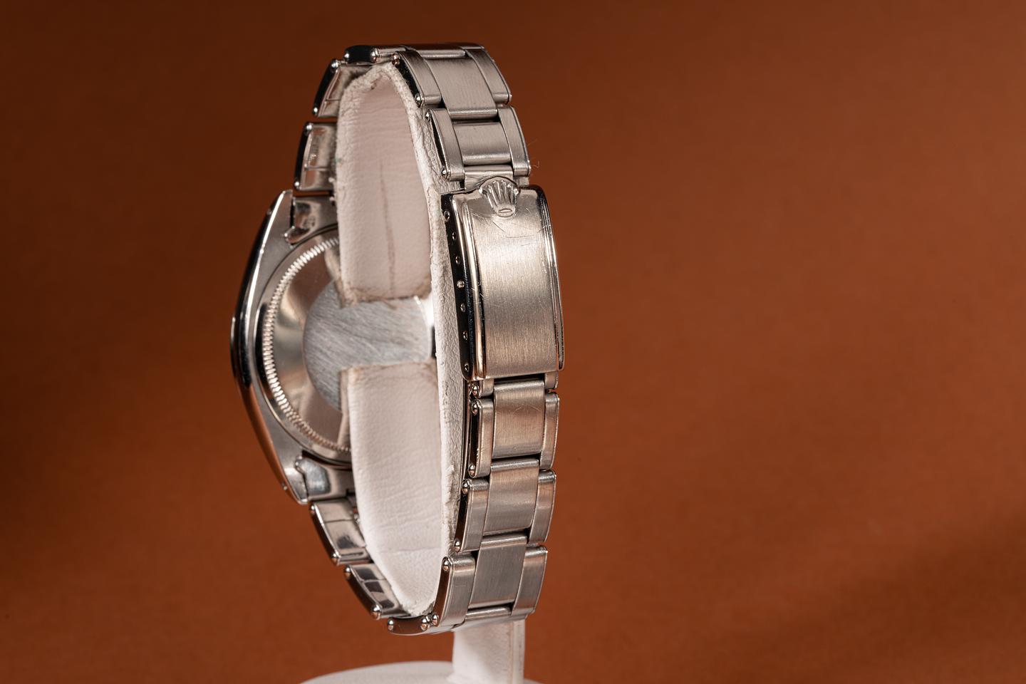 Bracelet: The 12 link Swiss rivet bracelet is excellent showing light stretch for its age. The clasp is stamped with a 1969 date code.