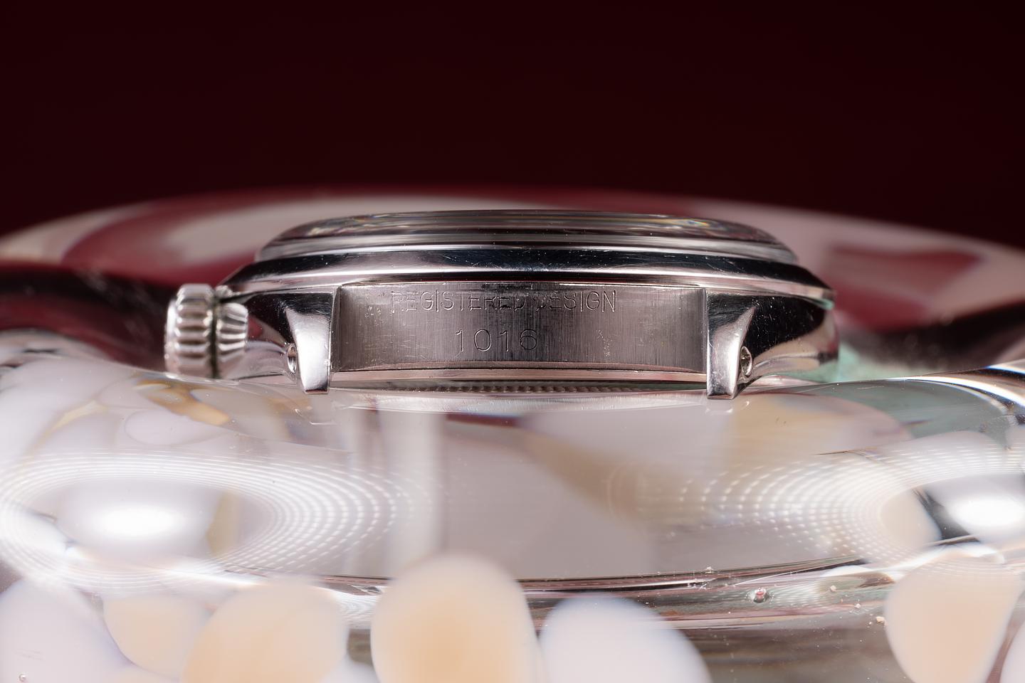Case: The 36mm case is excellent, showing a bright sleeve polished finish and only light wear from use. The smooth stainless bezel is also in excellent condition, showing only light wear from use.
