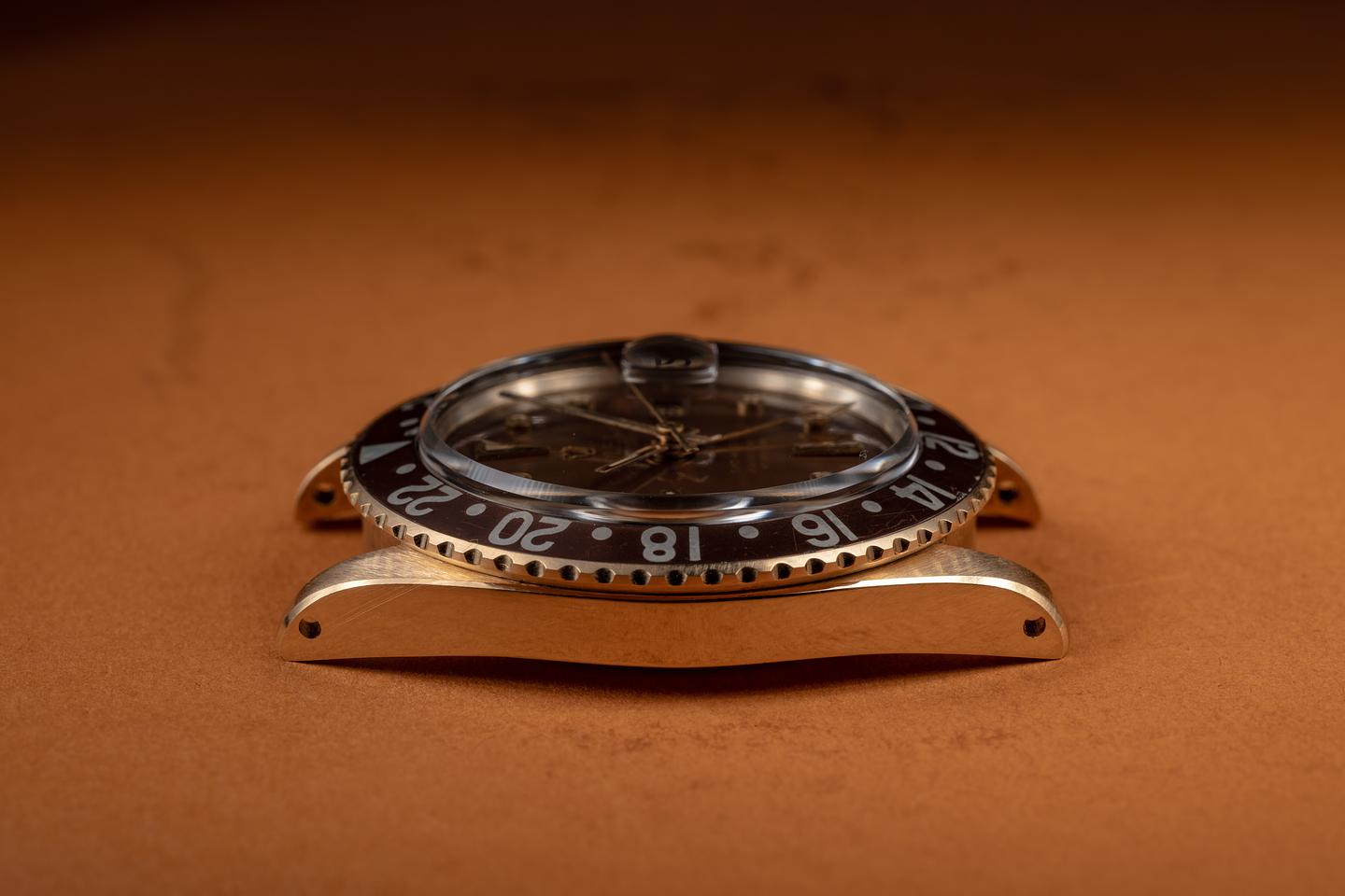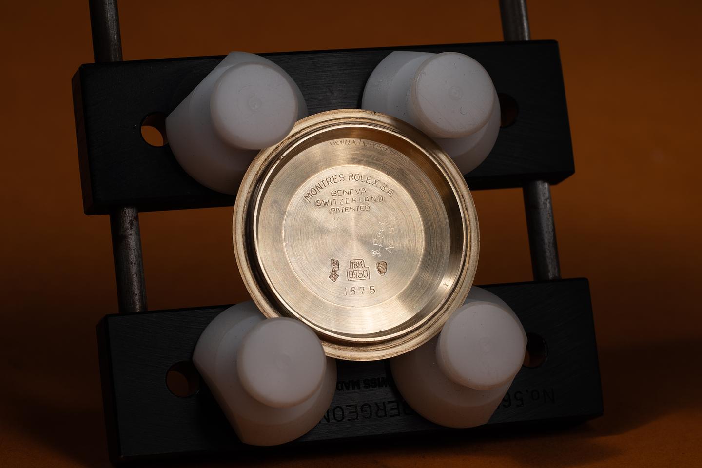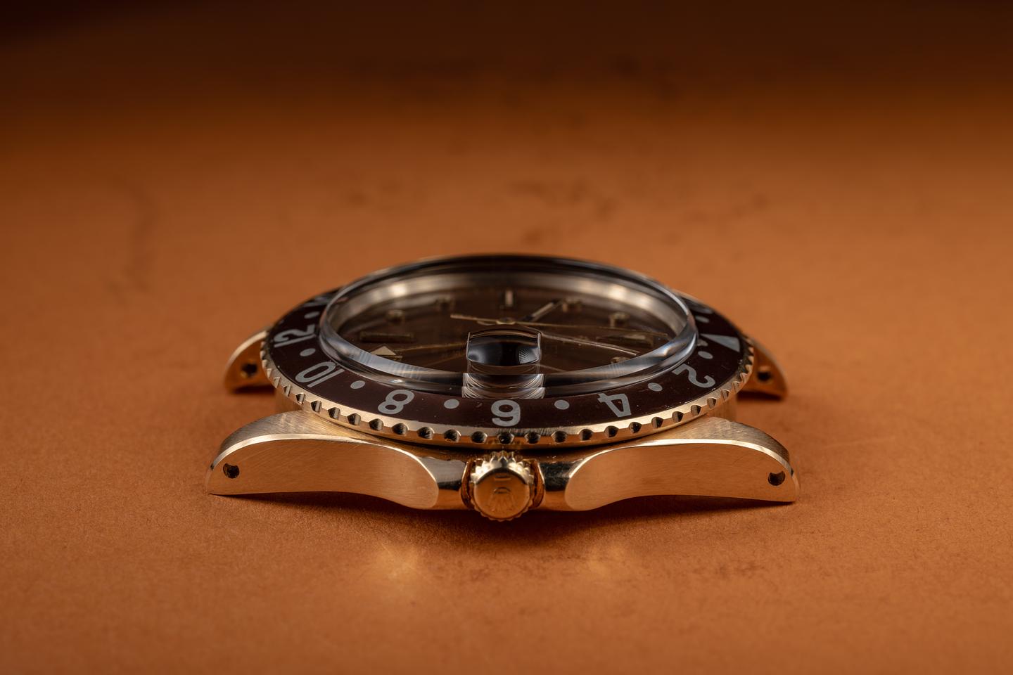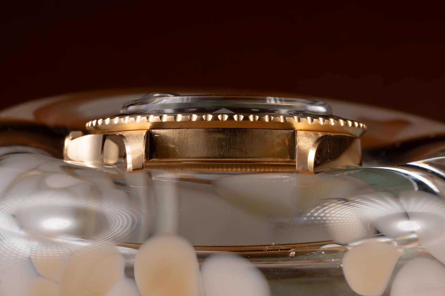 Case: The recently polished case is excellent, showing wide, sharp, prominent bevels, and only very light wear. The brown bezel insert is also in excellent condition, showing only very light wear from use.