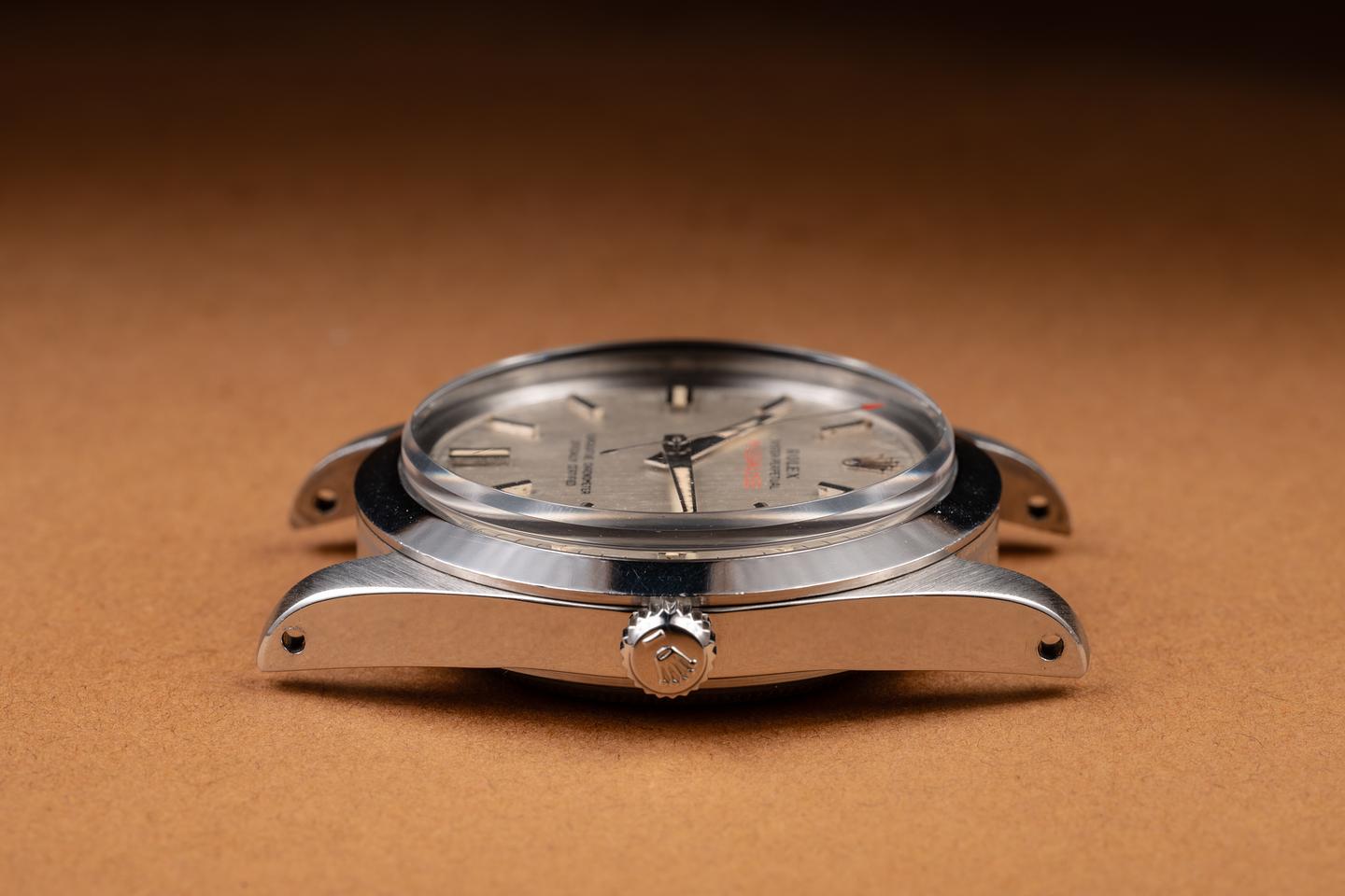 Dial: The silver dial is excellent, showing some subtle speckling across the surface of the dial. The lume has aged to a warm creamy hue and the hands match perfectly.