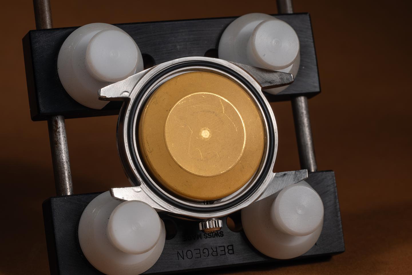 Case: The previously polished case is excellent, showing only light wear from use. The smooth stainless bezel is also in excellent condition, showing only light wear from use.