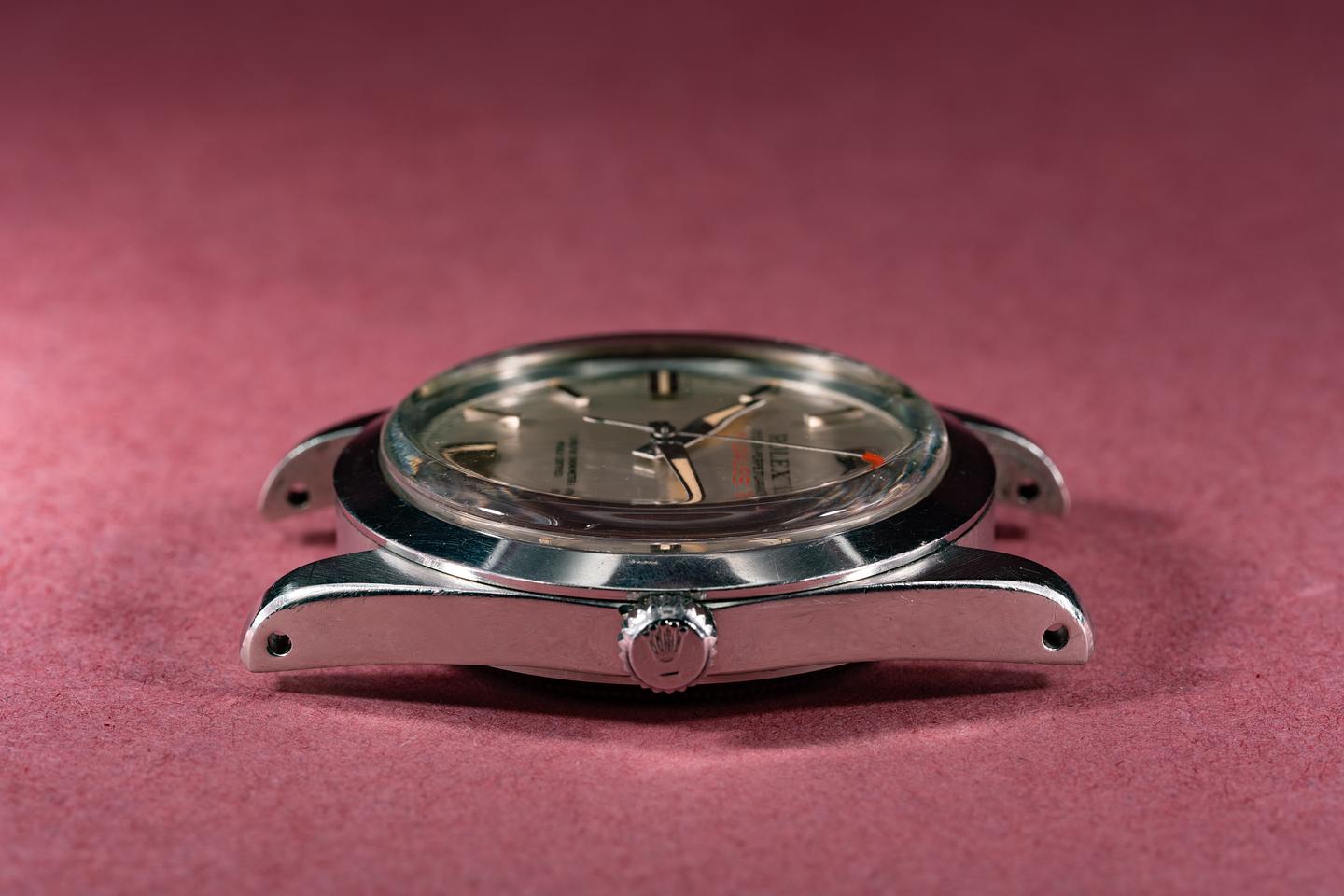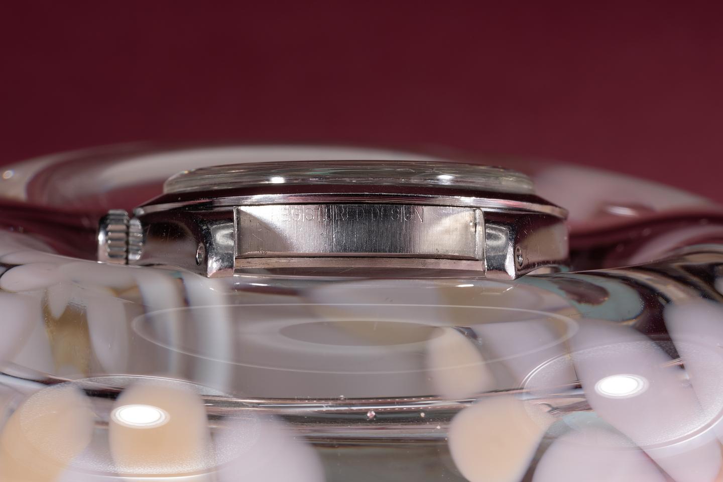 Dial: The silver vertically striated dial is excellent showing little if any wear for its age. The lume has aged to a warm creamy hue and the hands match perfectly. All lume glows brightly when exposed to UV and falls off rapidly at the same rate which is correct for this series of dial.