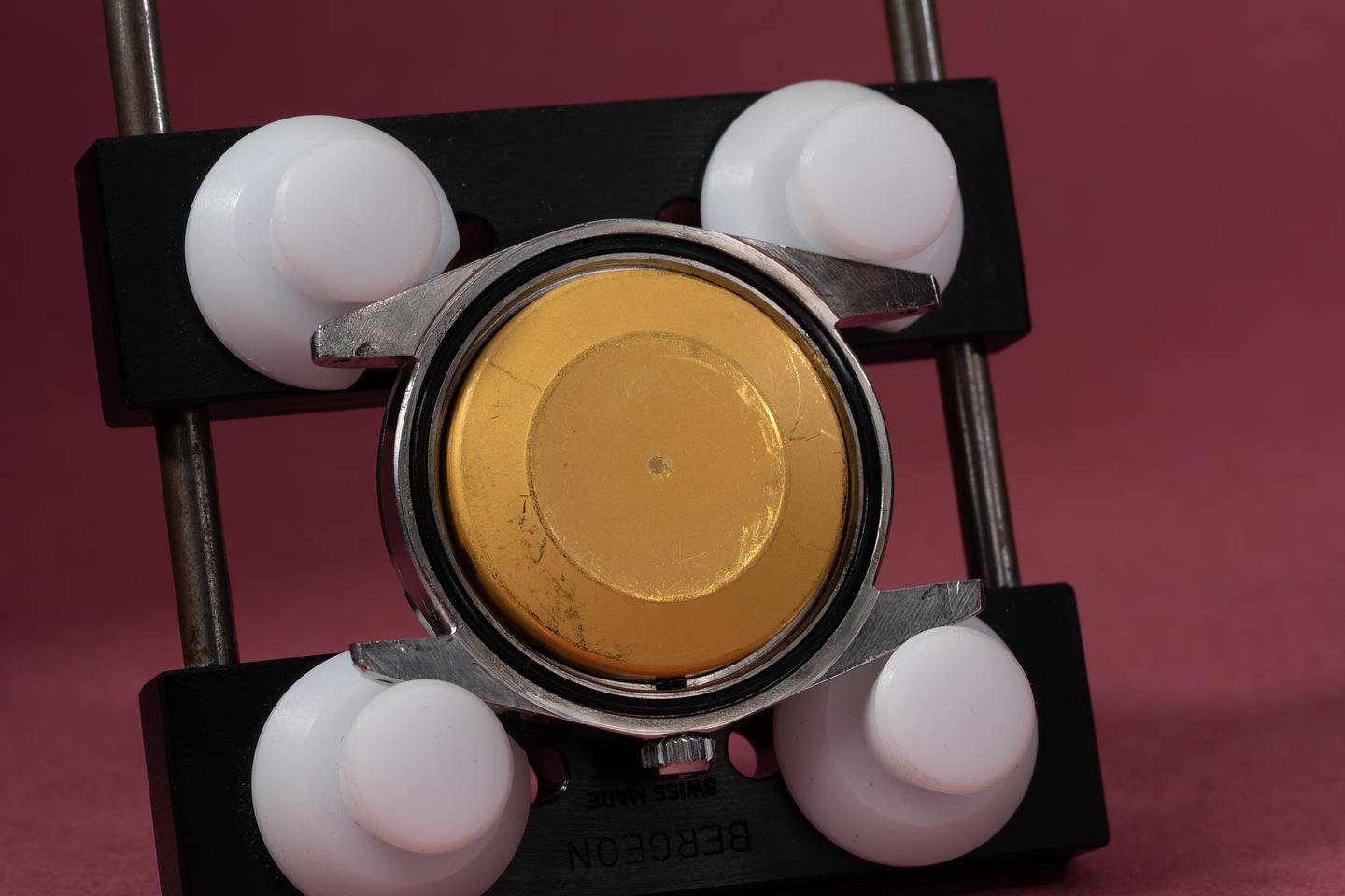 Case: The thick and even case is excellent showing some light wear from use. The smooth stainless bezel is also in excellent condition showing some light wear from use.