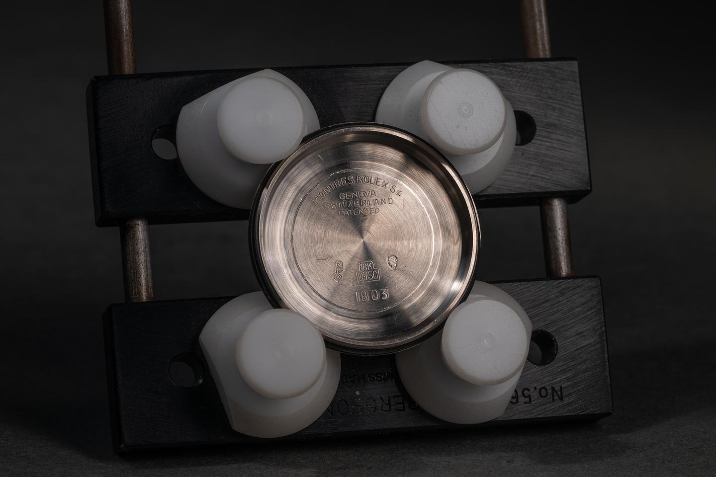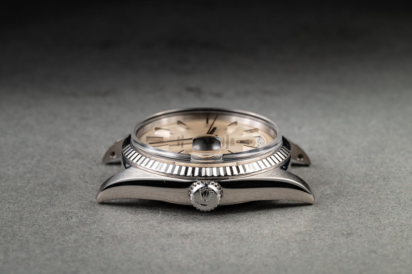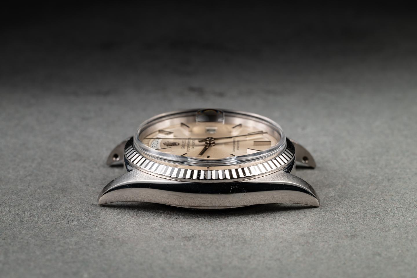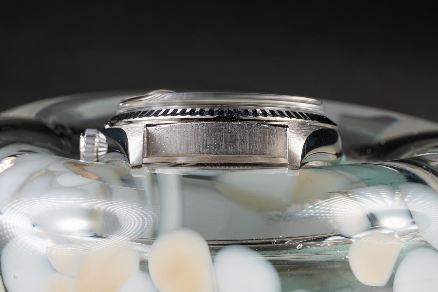 Case: The 18K white gold case is excellent, showing only light wear from use. The 18K white gold fluted bezel is also in excellent condition, showing some light wear from use.