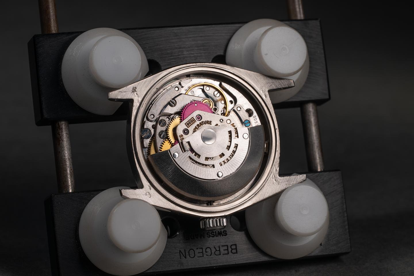 Dial: The silver no-lume dial is excellent, showing some light speckling patina across its surface. The no-lume hands are also in excellent condition and appear to be original to the watch.