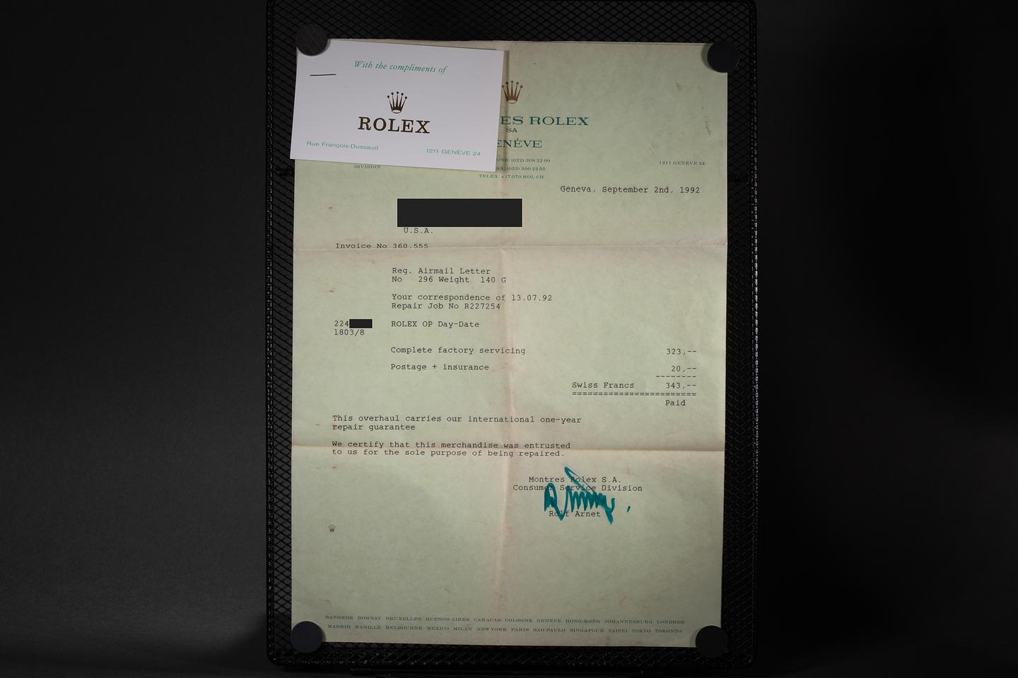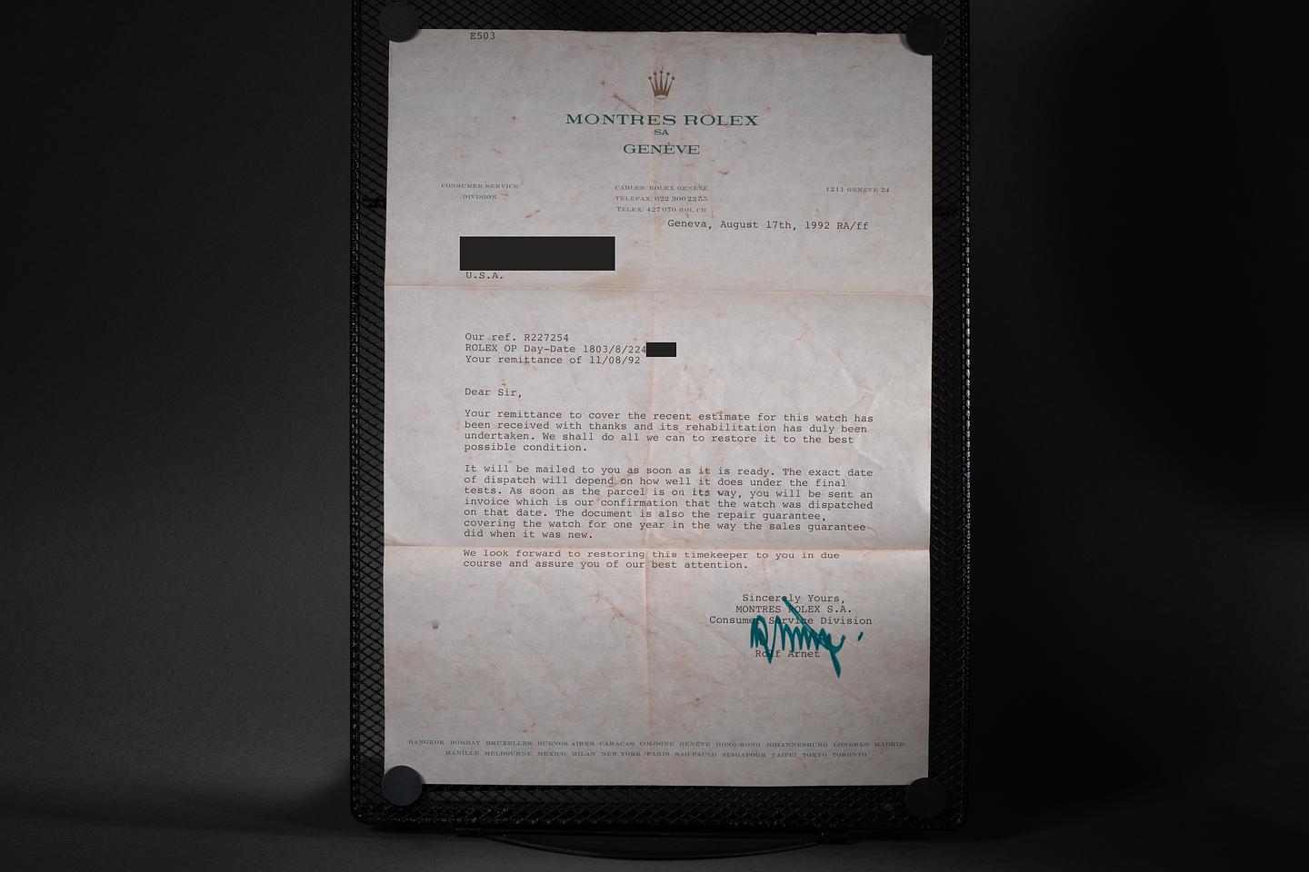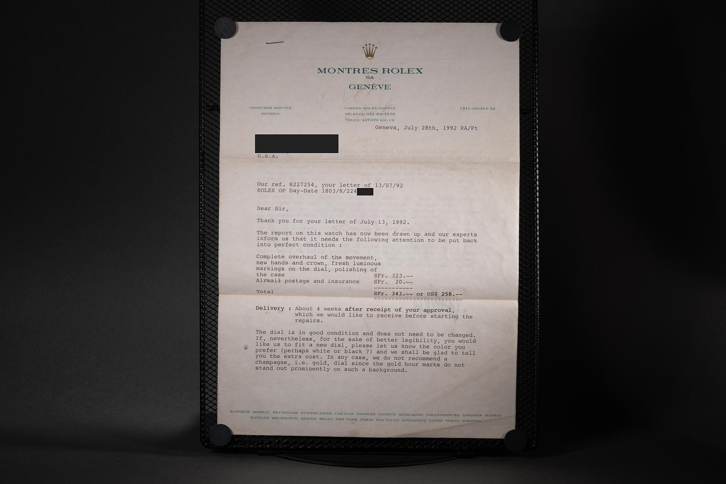 Dial: The bronze dial is excellent, showing little if any wear for its age. The dial was re-lumed and the hands were replace by Rolex of Genéve during a service in 1992. The lume has aged to uniform warm creamy hue.