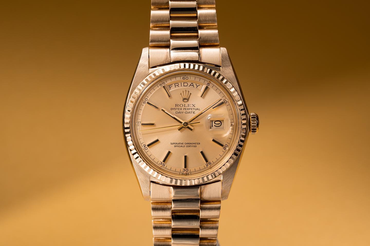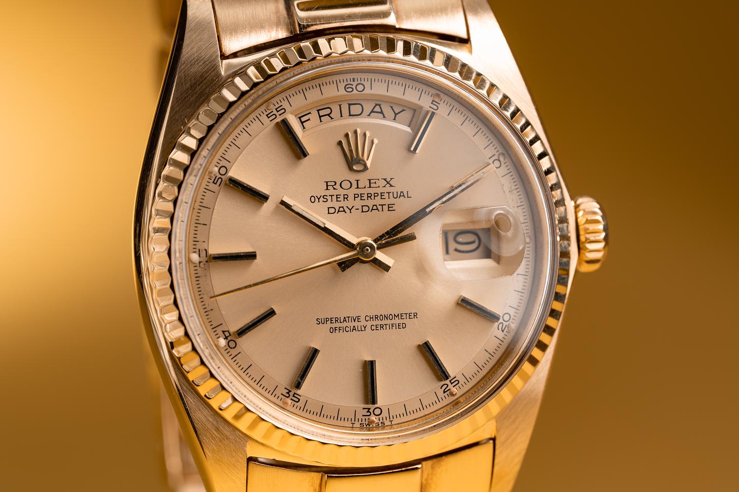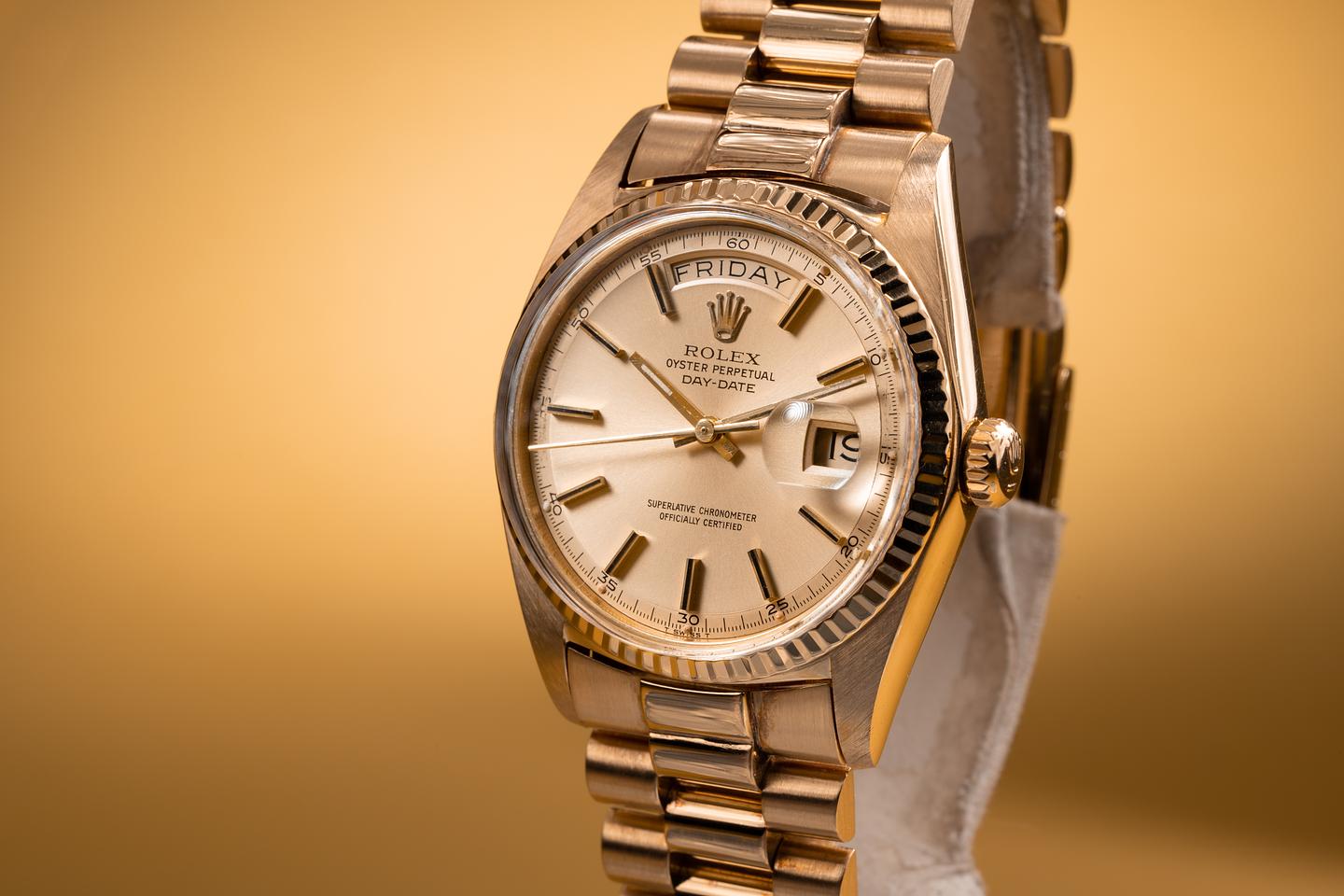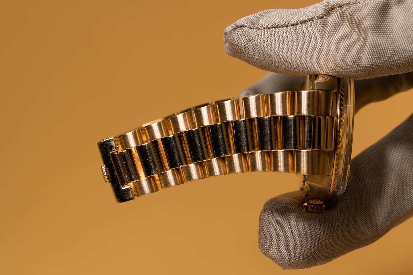Bracelet: The 19 link 18K yellow gold President bracelet is excellent showing some light stretch for its age.