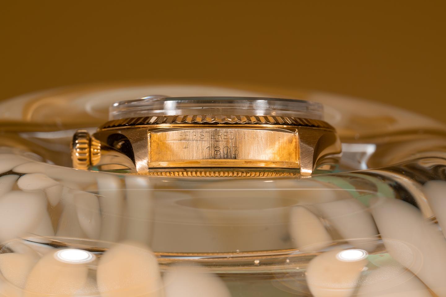 Case: The thick and even 18k yellow gold case has recently been polished showing only very light wear. The 18k fluted bezel is also in excellent condition showing only light wear from use.