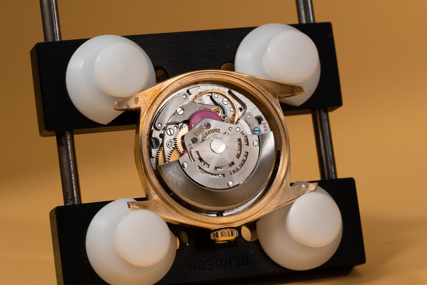 Dial: The champagne dial is excellent showing some light wear for its age. There is a small mark on the outer minute track between the 10 and the 15 indexes. The lume has aged to a warm creamy hue with a few of the plots missing some of their luminous mass. The hands are also in excellent condition with lume that matches dial perfectly. All lume glows brightly when exposed to UV and falls off rapidly at the same rate.