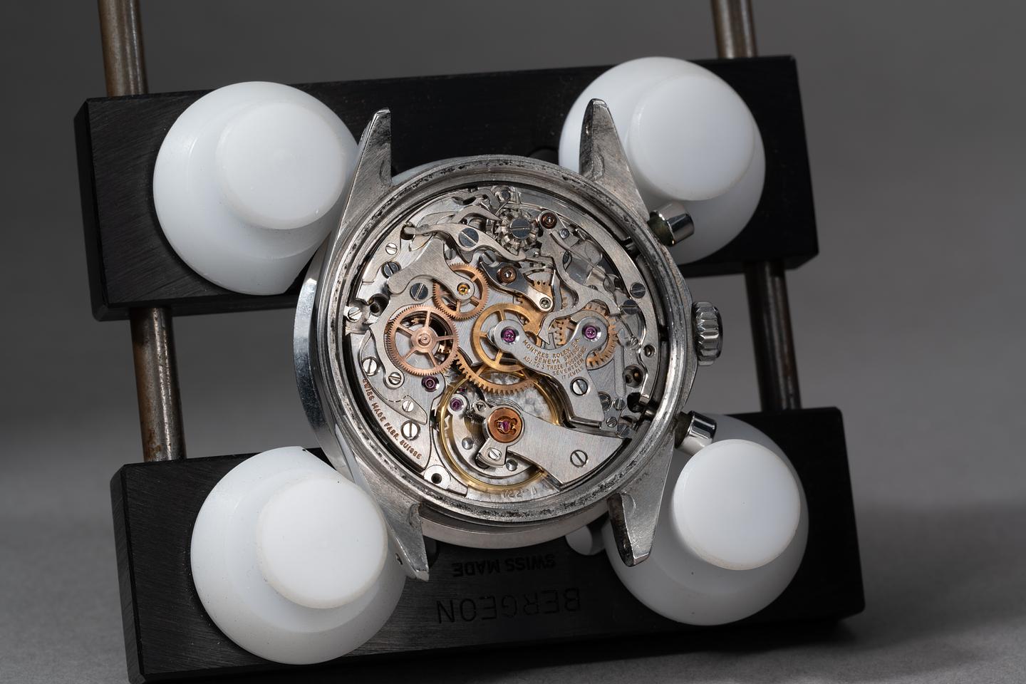 Dial: The silver dial is excellent showing only light wear for its age. The lume has aged to a clean creamy hue. The hands are newer tritium service units and have aged to a warm creamy hue.