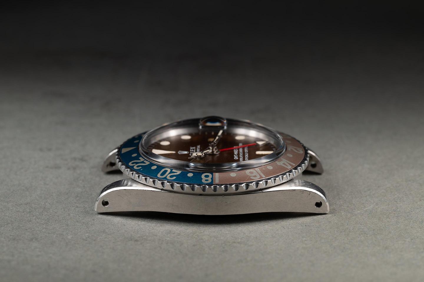 Case: The thick and even case is excellent, showing wide prominent bevels and light to average wear from use. The bezel insert is also in excellent condition and shows significant fading to both portions of the insert.