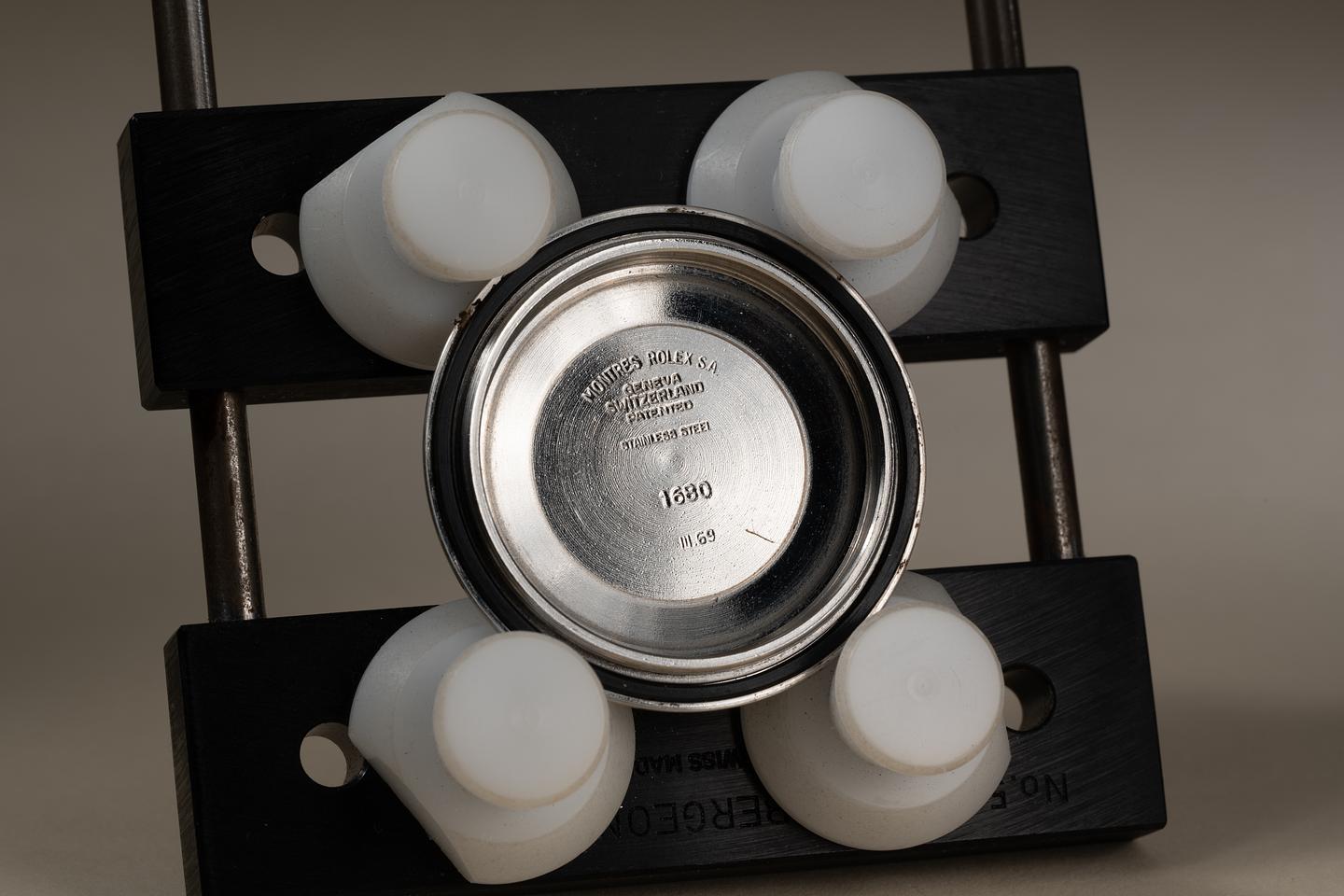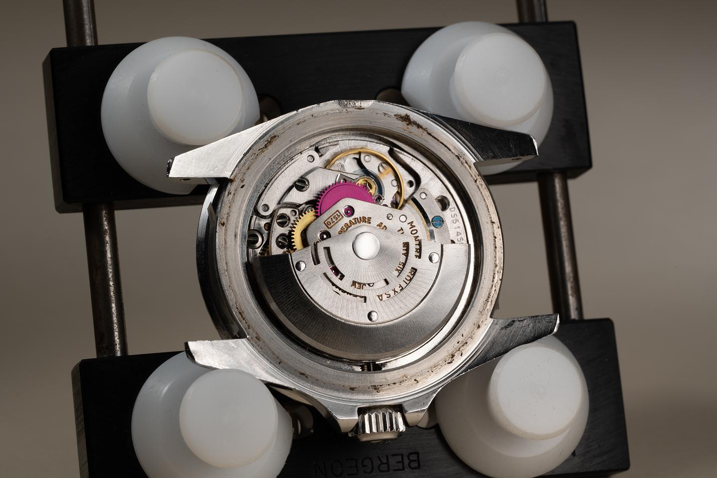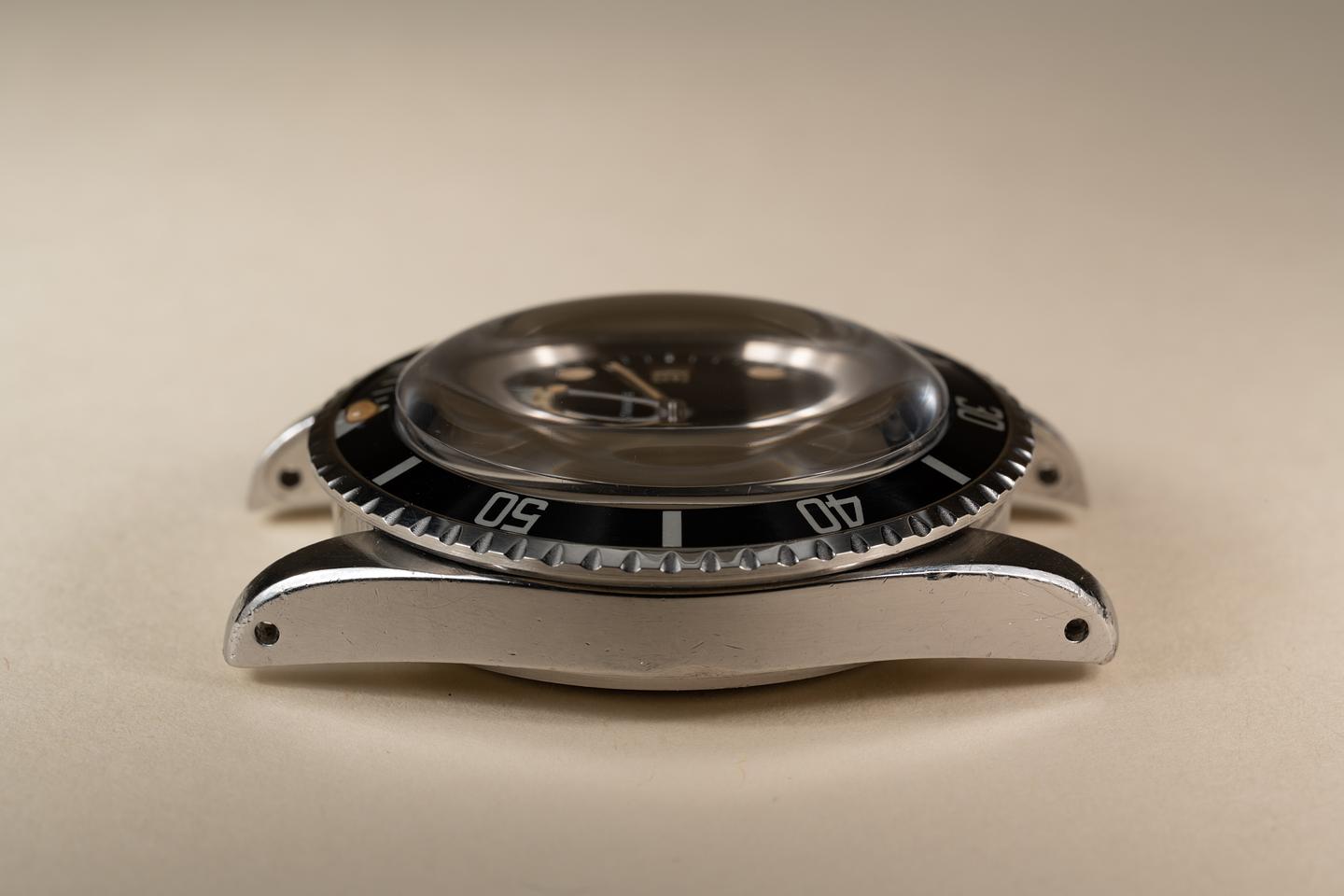 Case: Excellent thick case with wide prominent factory bevels and average wear from use. The black bezel insert is also in excellent condition showing only light wear from use.