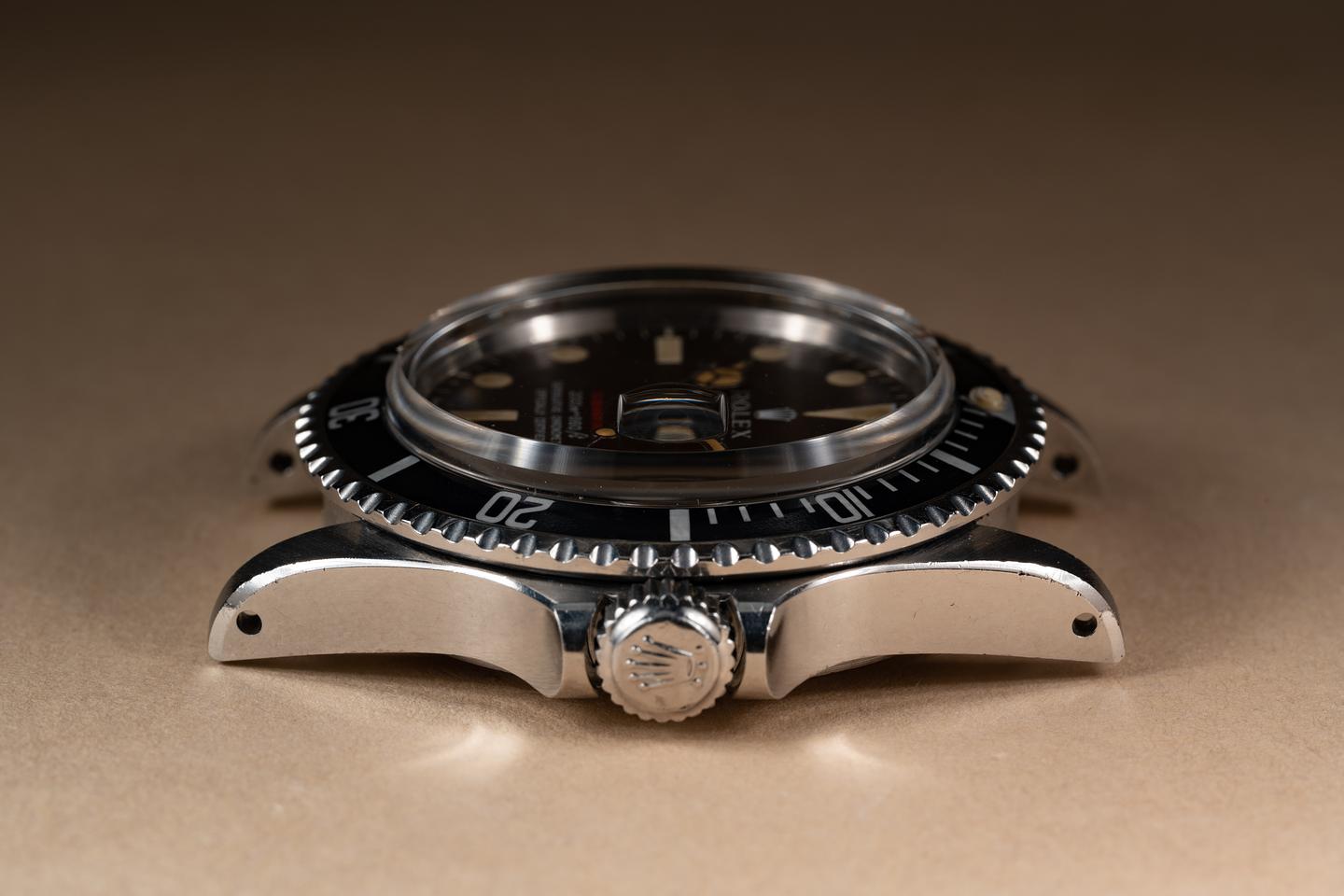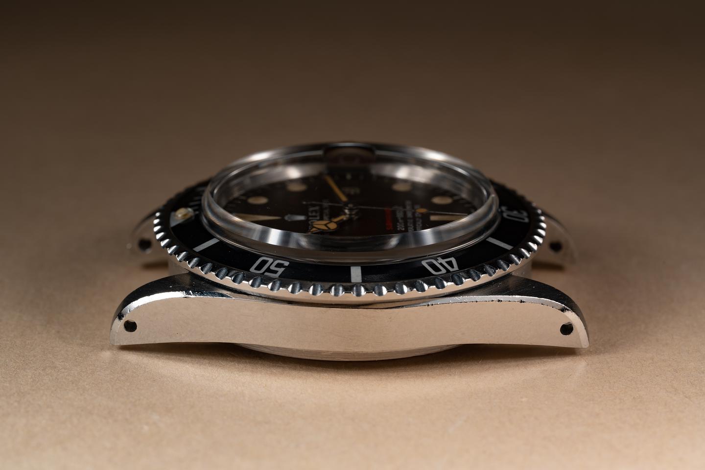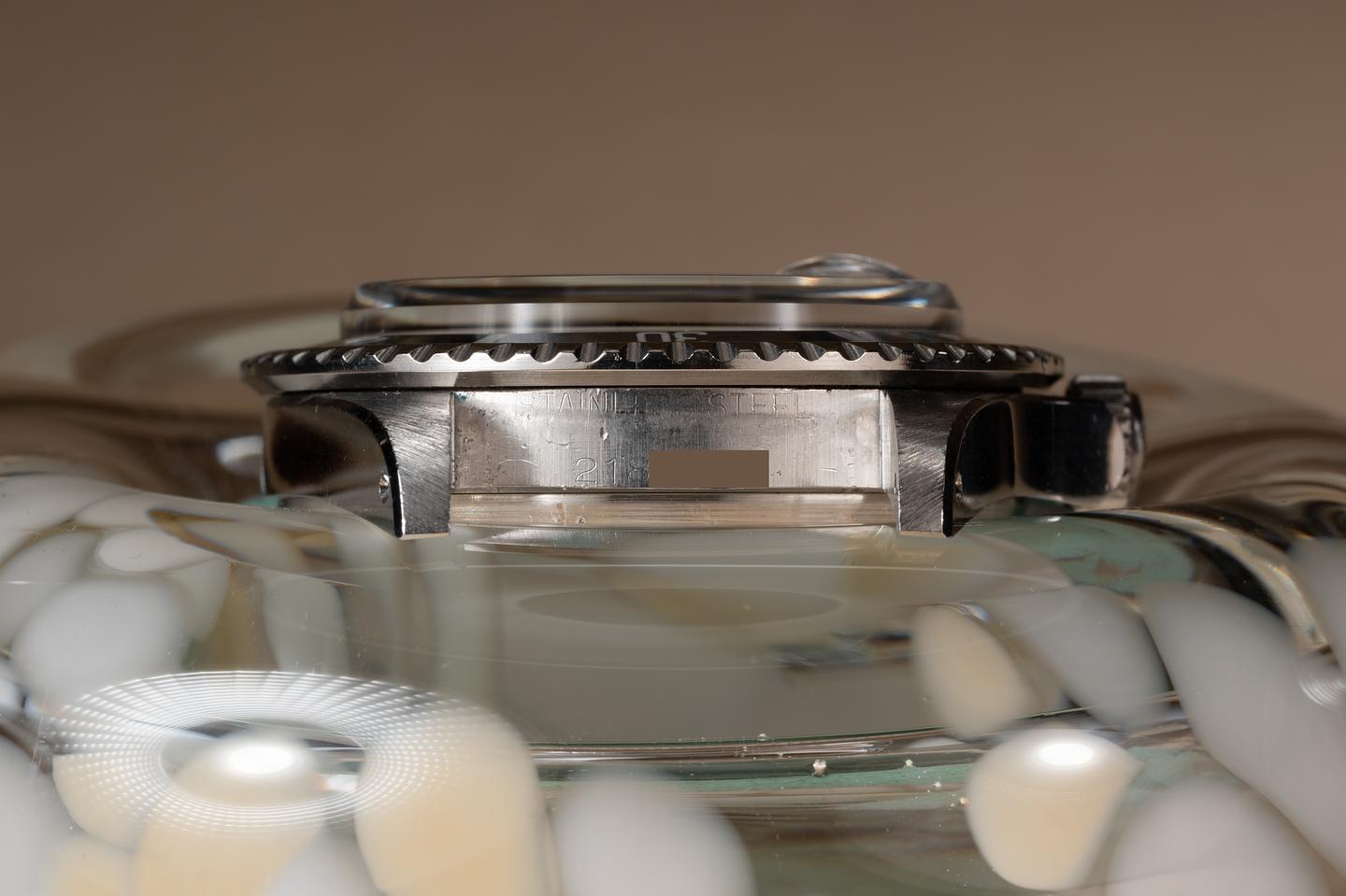 Case: The previously polished case is excellent dowing wide, sharp, prominent bevels, ad only light wear from use. The bezel insert is also in excellent condition and has faded to a dark navy blue hue.