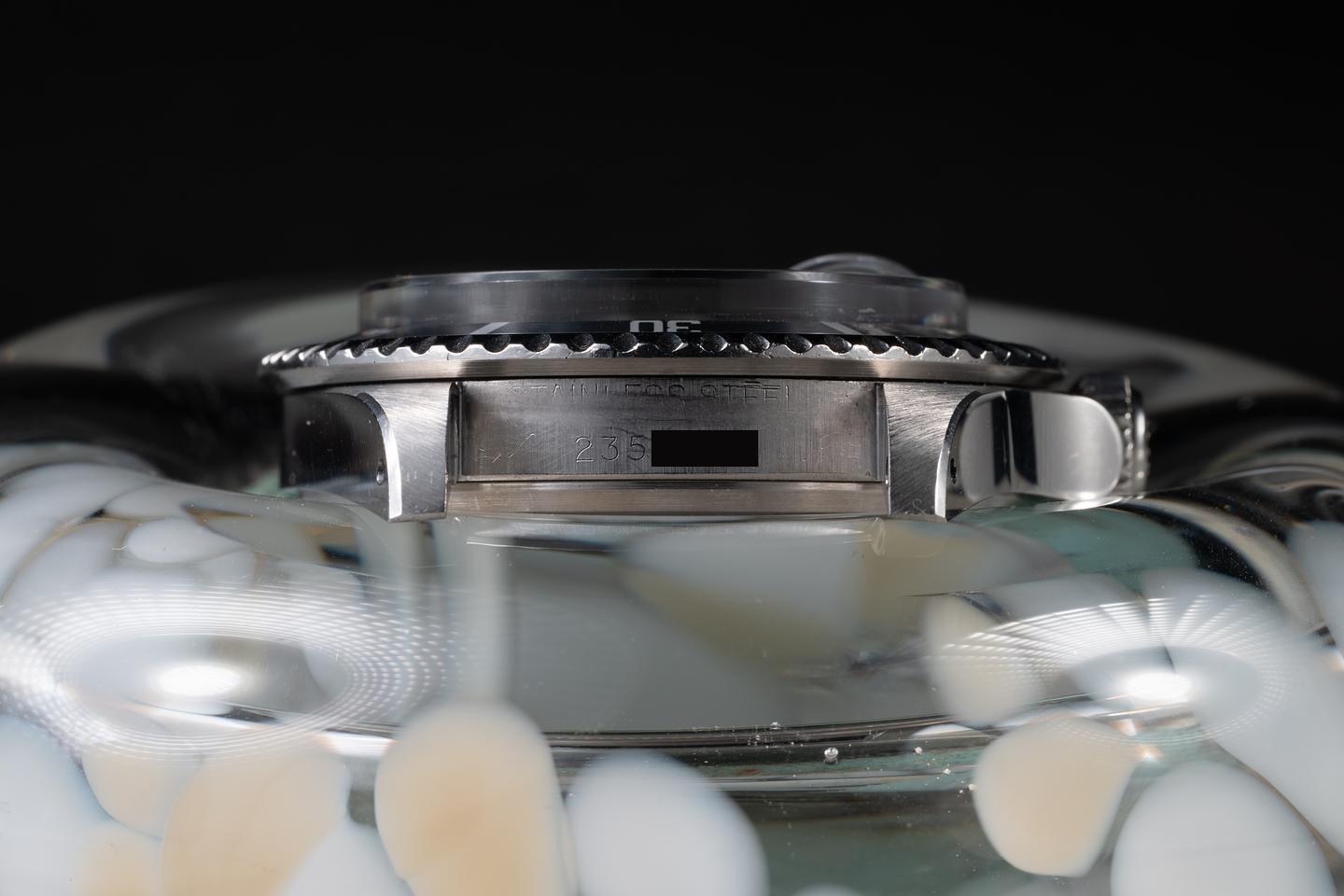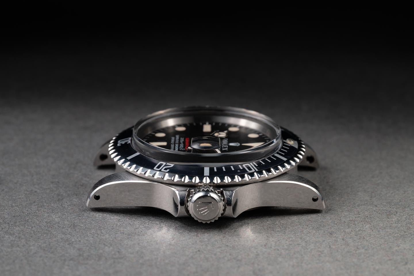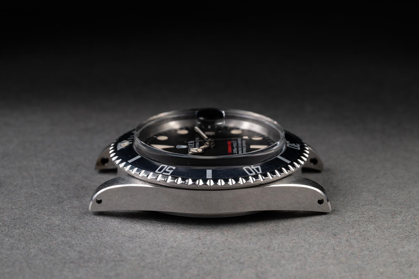 Case: The recently polished case is excellent, showing sharp, prominent bevels and only very light wear. The bezel insert is also in excellent condition and has aged to a navy blue hue, showing only light wear from use.
