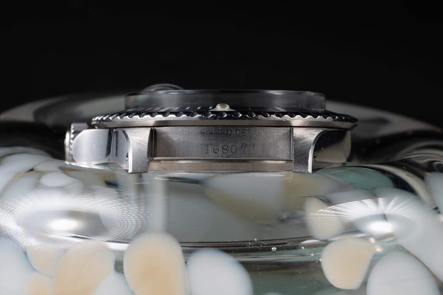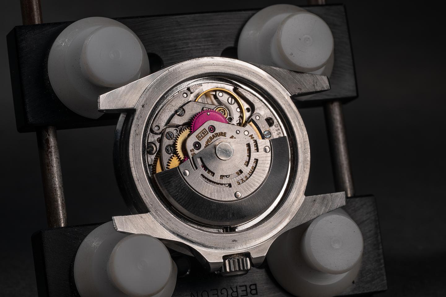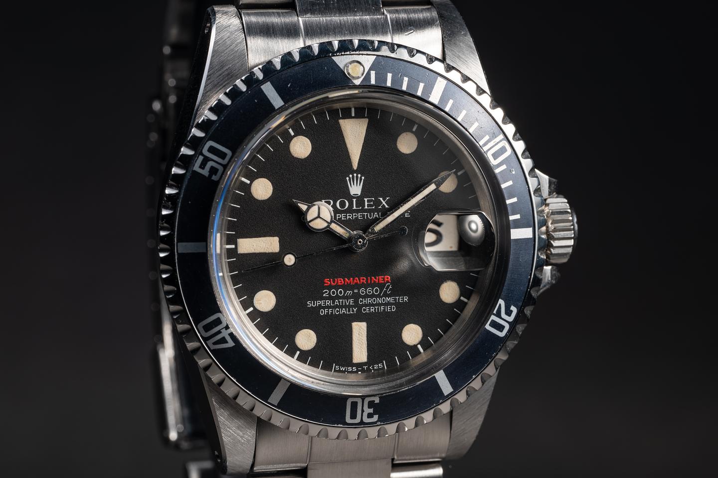 Case: The recently polished case is excellent, showing sharp, prominent bevels and only very light wear. The bezel insert is also in excellent condition and has aged to a navy blue hue, showing only light wear from use.