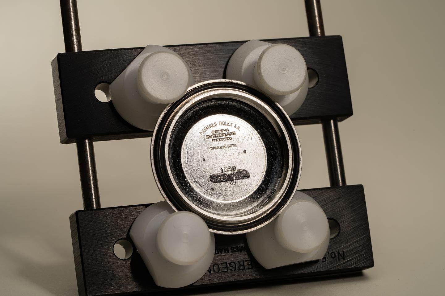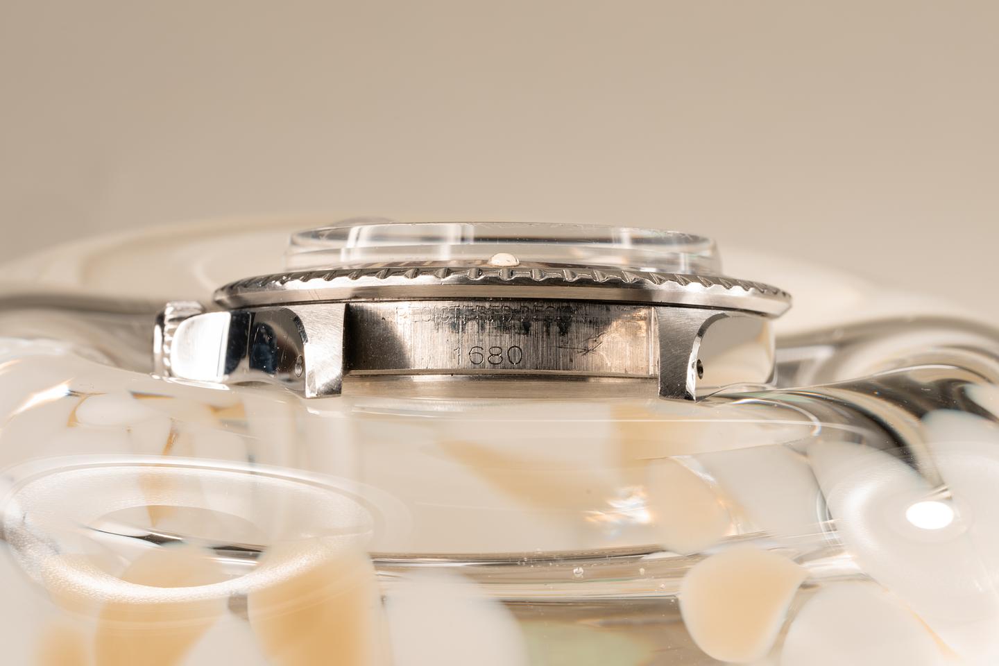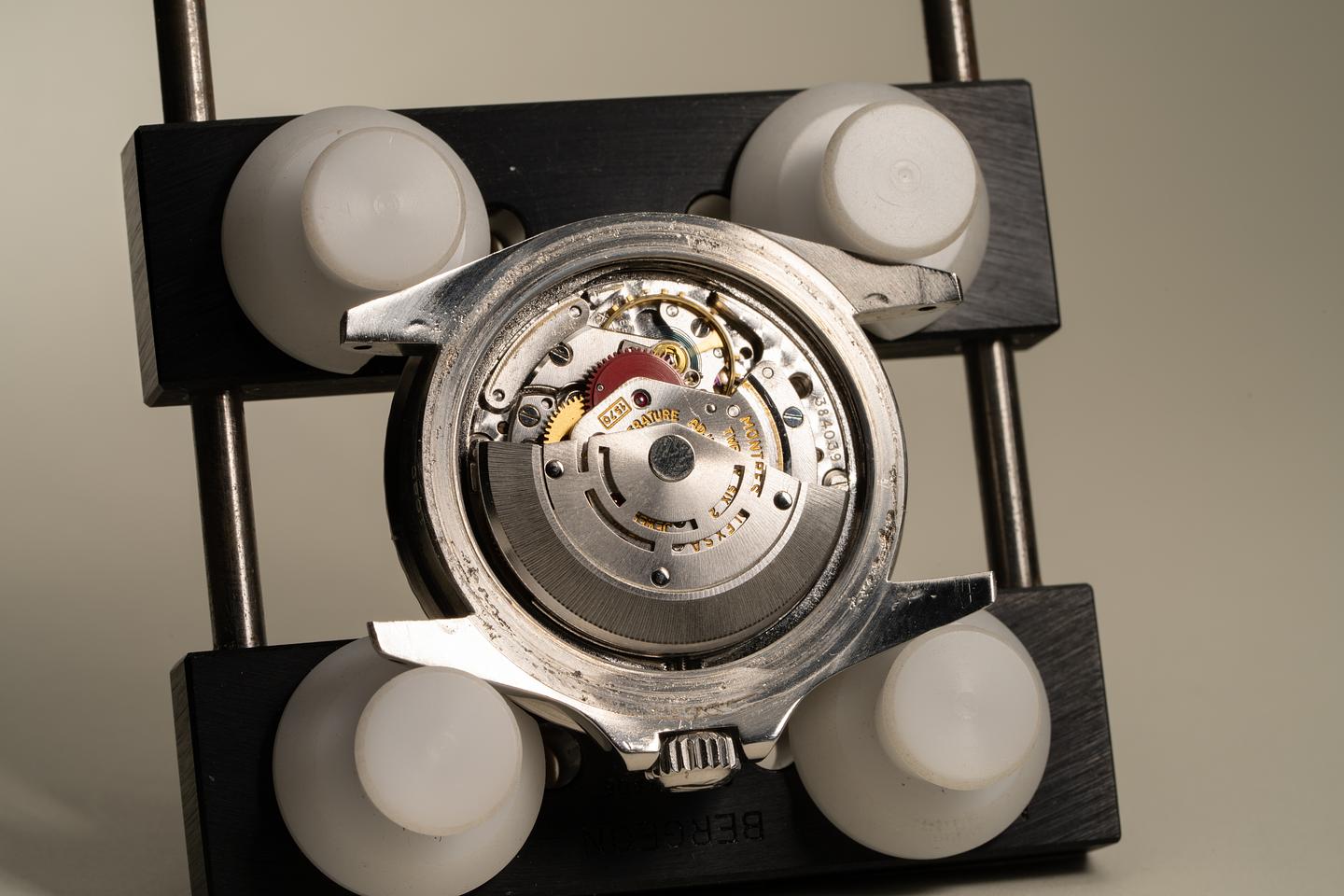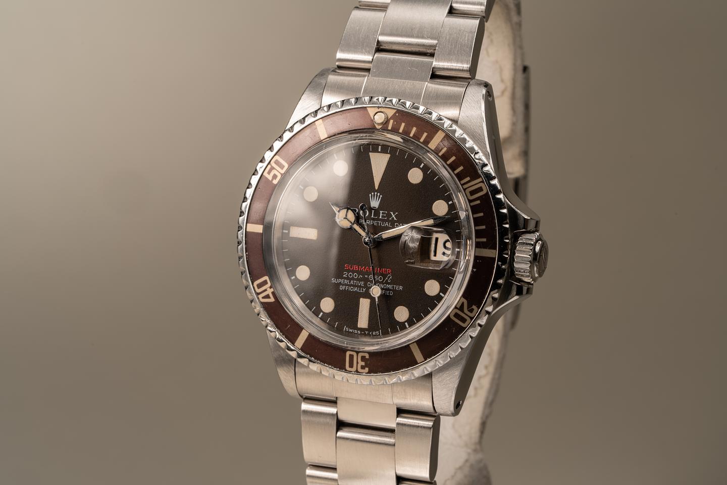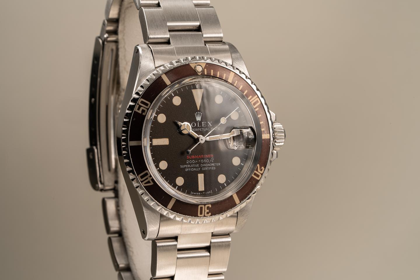 Case: Excellent case that has just returned from polishing. The bezel insert has faded to a deep brown hue and the silver numbering is warming to a creamy hue. The pearl is present and intact.