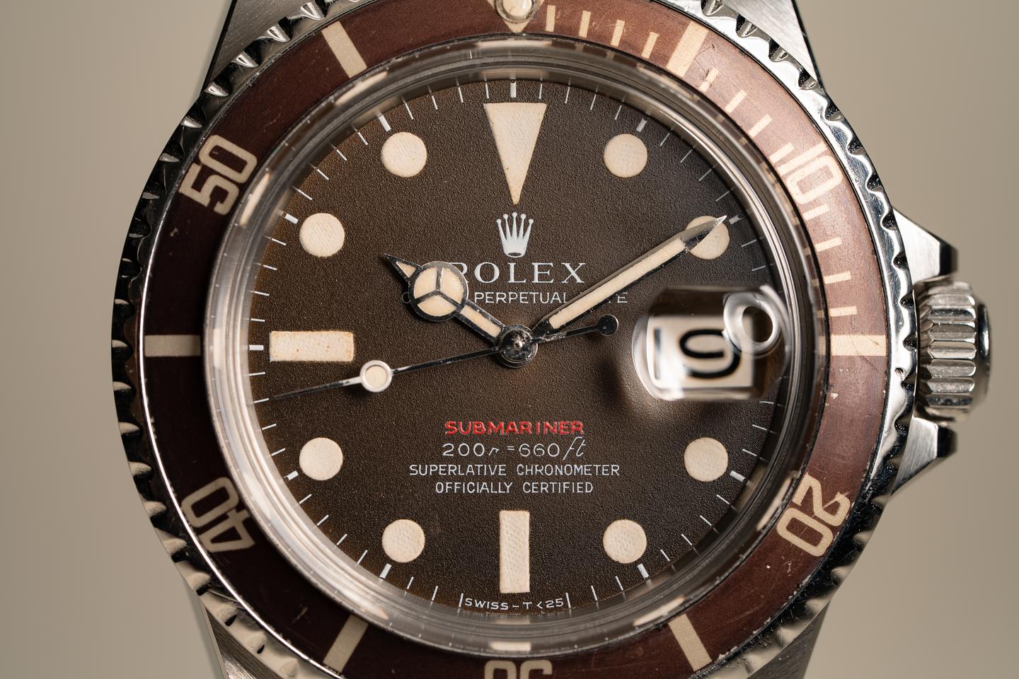Dial: The MK 2 dial has aged with a deep brown "Tropical" patina. There is some light chipping to some of the minute indexes around the edge of the dial. The M in meters is also showing some wear from age. The lume has aged to a creamy hue. The hands have been relumed and colored to match the lume on the dial.