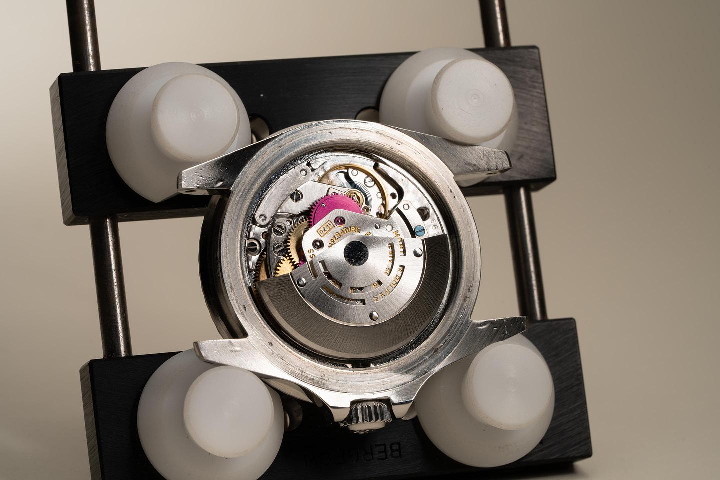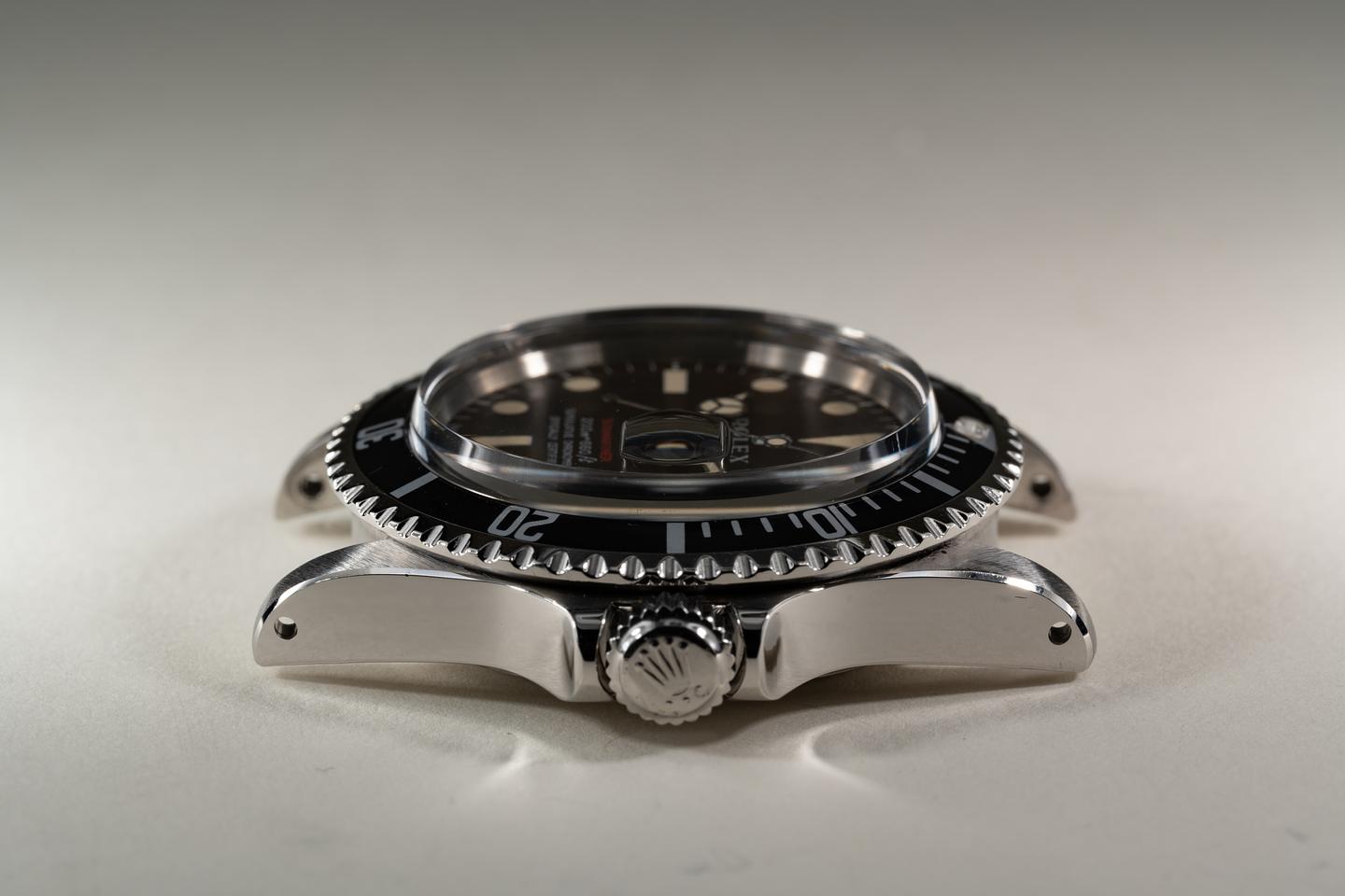 Case: The previously polished case is excellent showing wide sharp prominent bevels and some light wear from use. The black fat font bezel is also in excellent condition showing only very light wear from use.