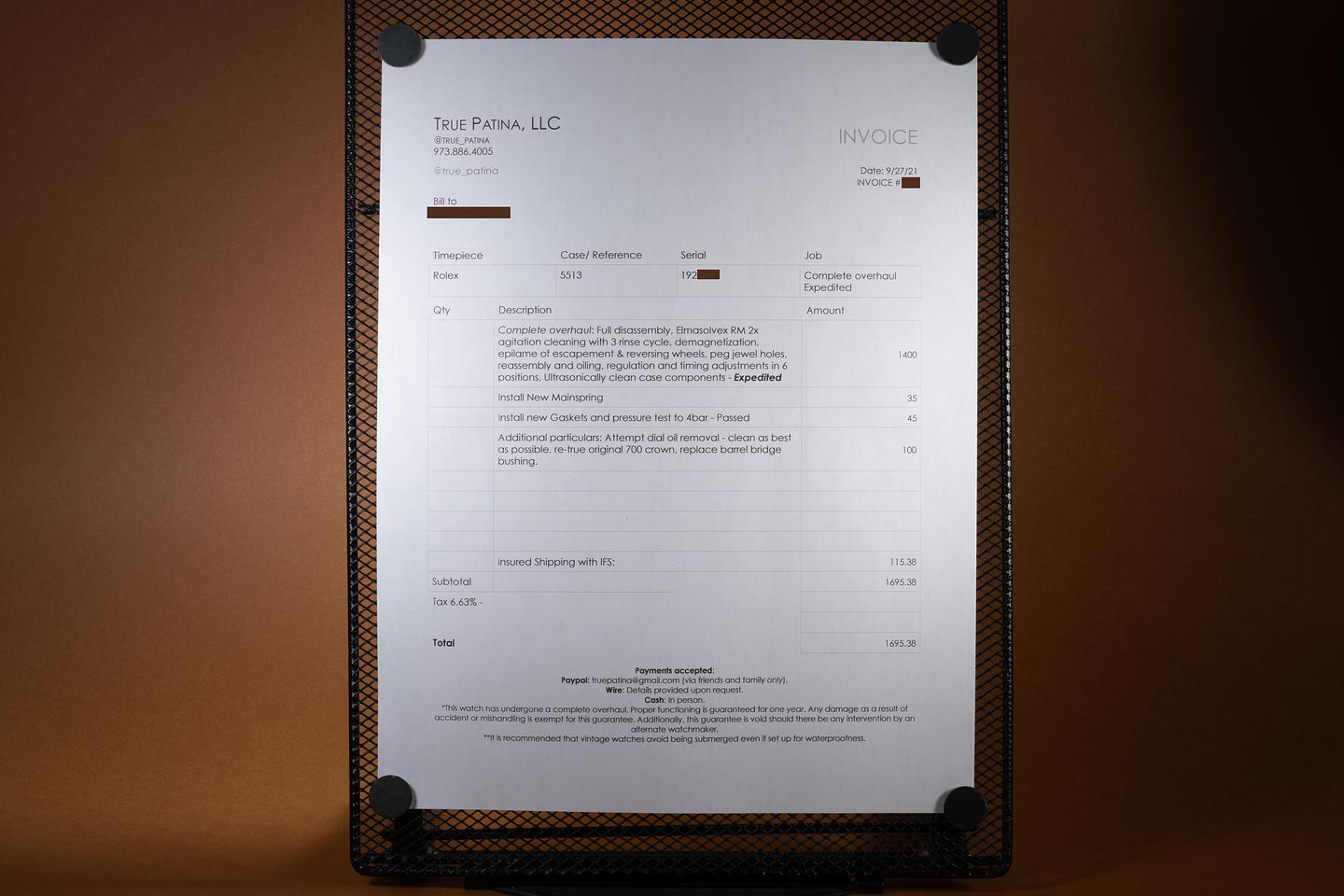 Dial: The newer matte black serif dial is excellent, showing only very light wear for its age. There is some oil staining around the very outer edge of the dial.