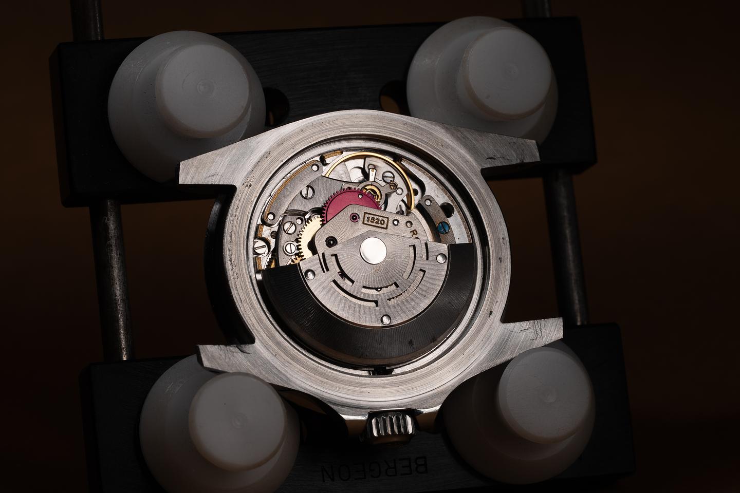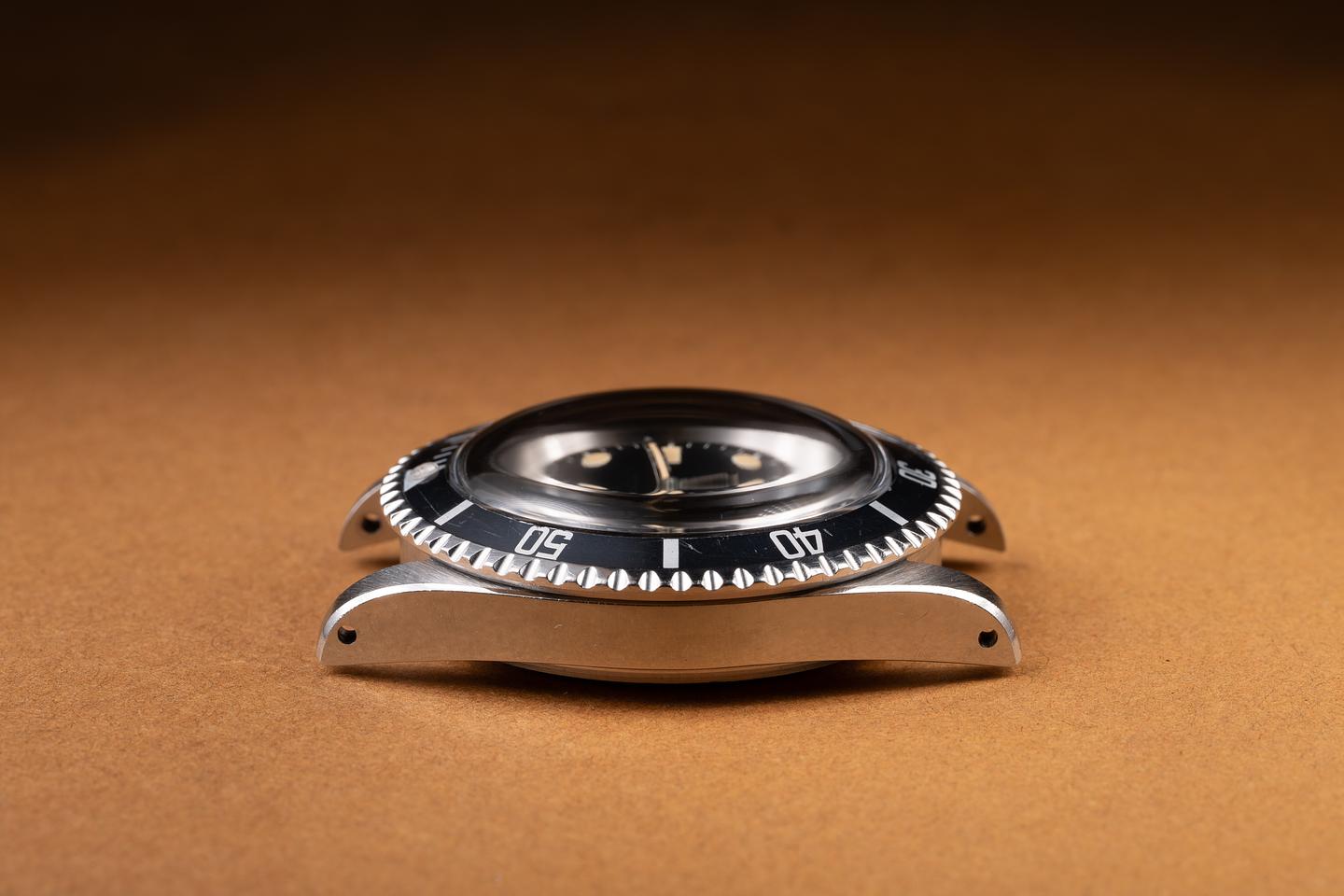 Dial: The newer matte black serif dial is excellent, showing only very light wear for its age. There is some oil staining around the very outer edge of the dial.