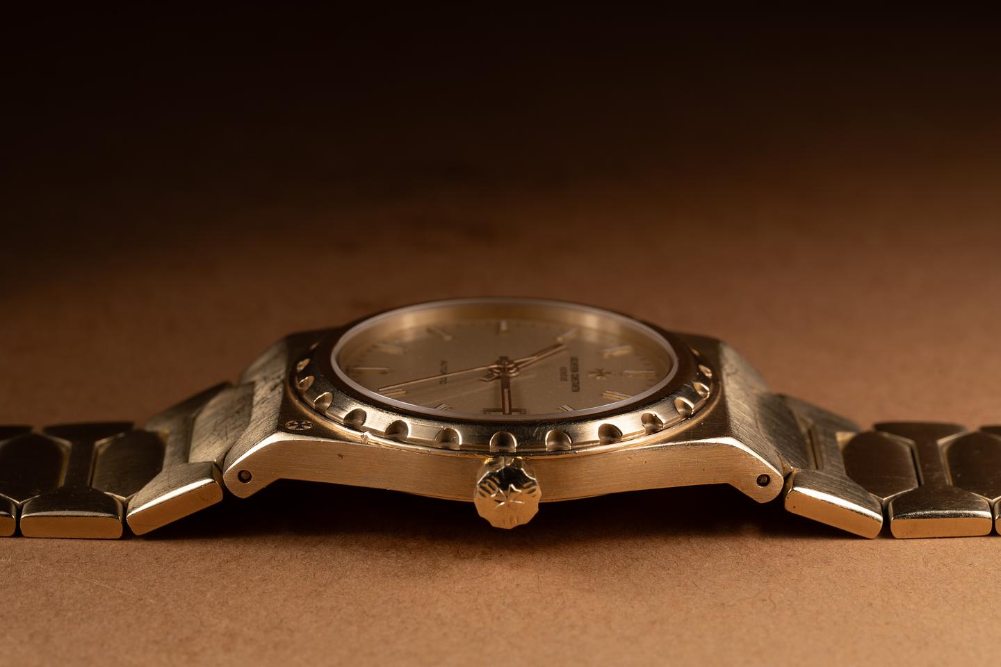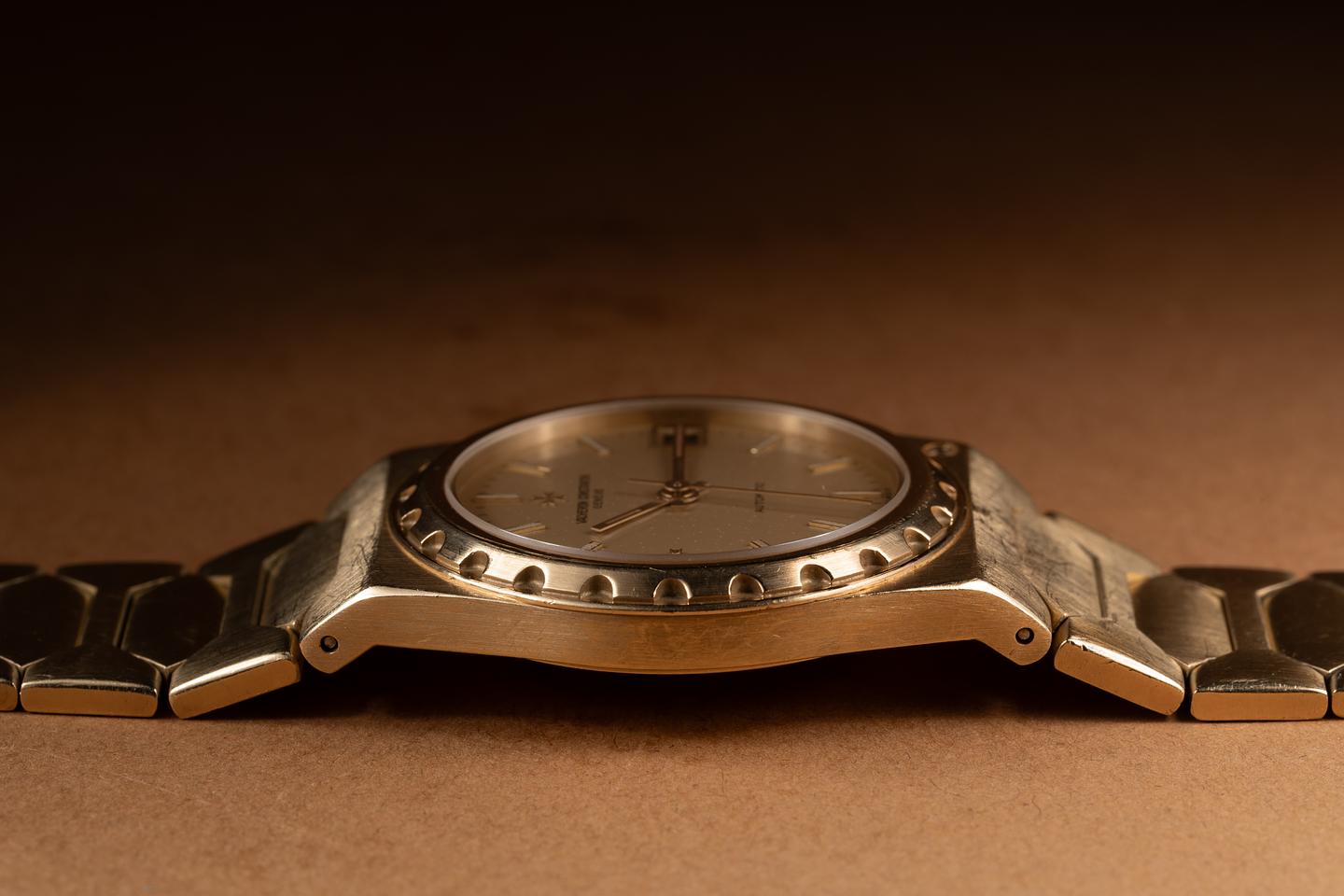 Case: The slim 34mm 18k yellow gold case is excellent showing sharp beveling and only light wear from use. The 18k yellow gold bezel is also in excellent condition showing some light wear from use.