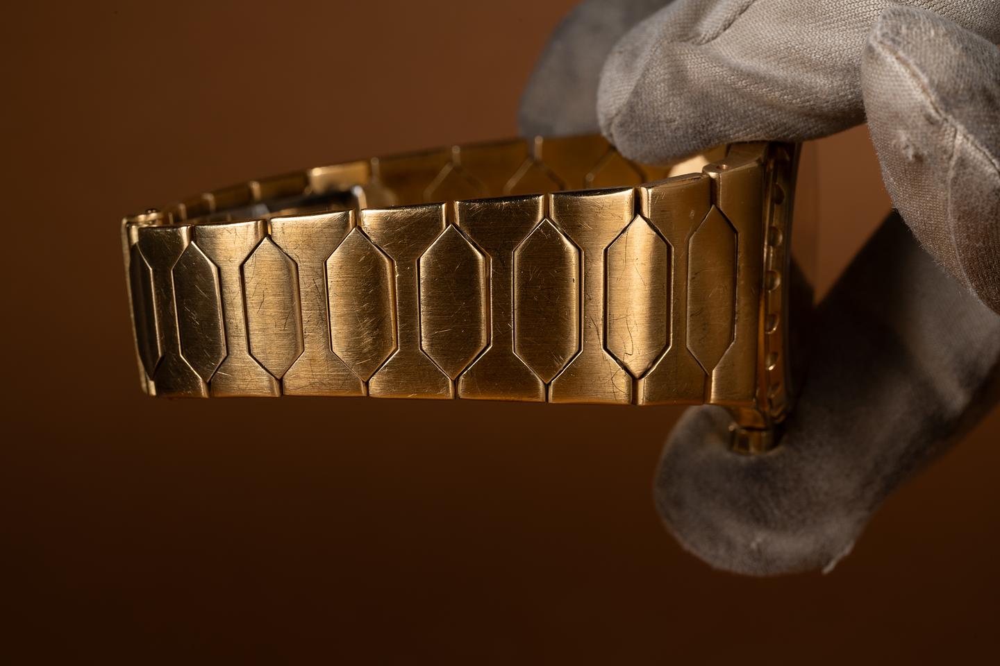 Bracelet: The 17 link "222" 18K yellow gold bracelet is excellent showing only very light stretch. The bracelet will fit up to a 18 cm. / 7.08" wrist.