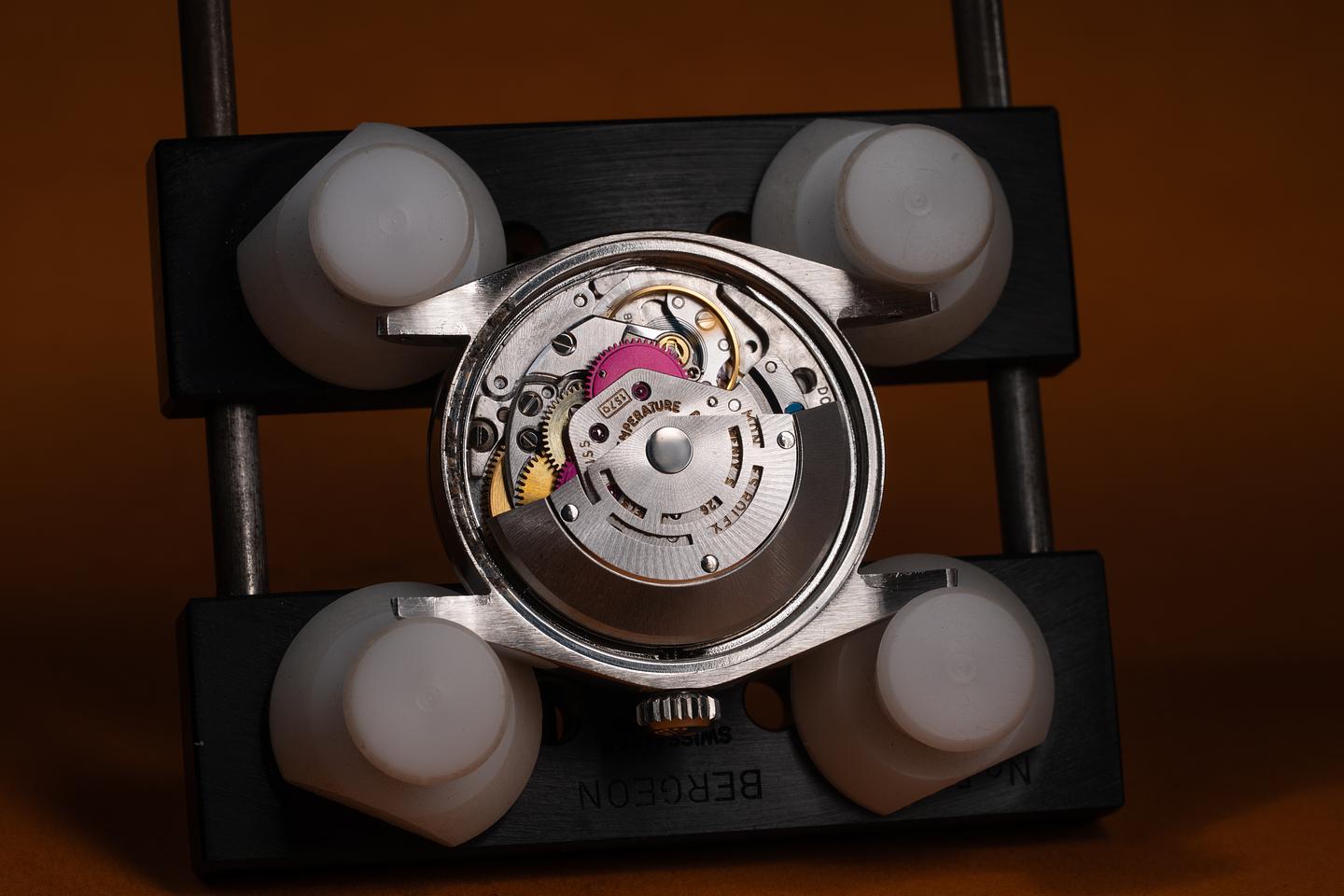 Case: The 34mm case appears to be unpolished showing some light wear from use. The smooth stainless bezel is also in excelent condition showing some light wear from use.