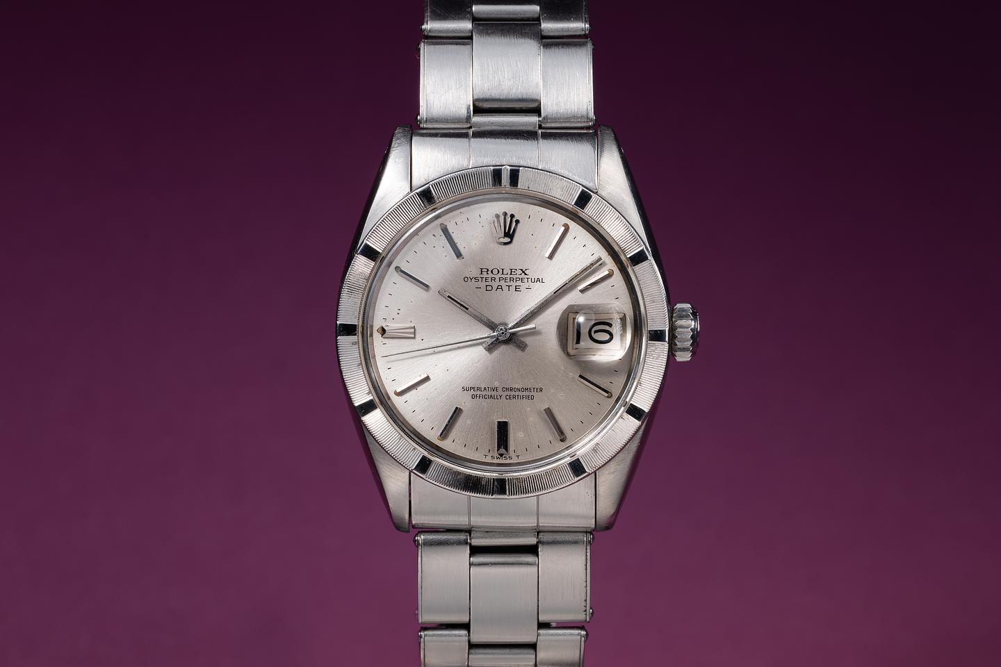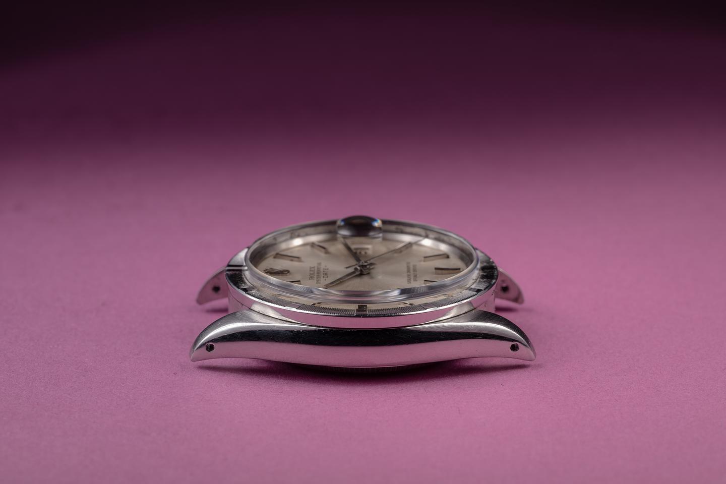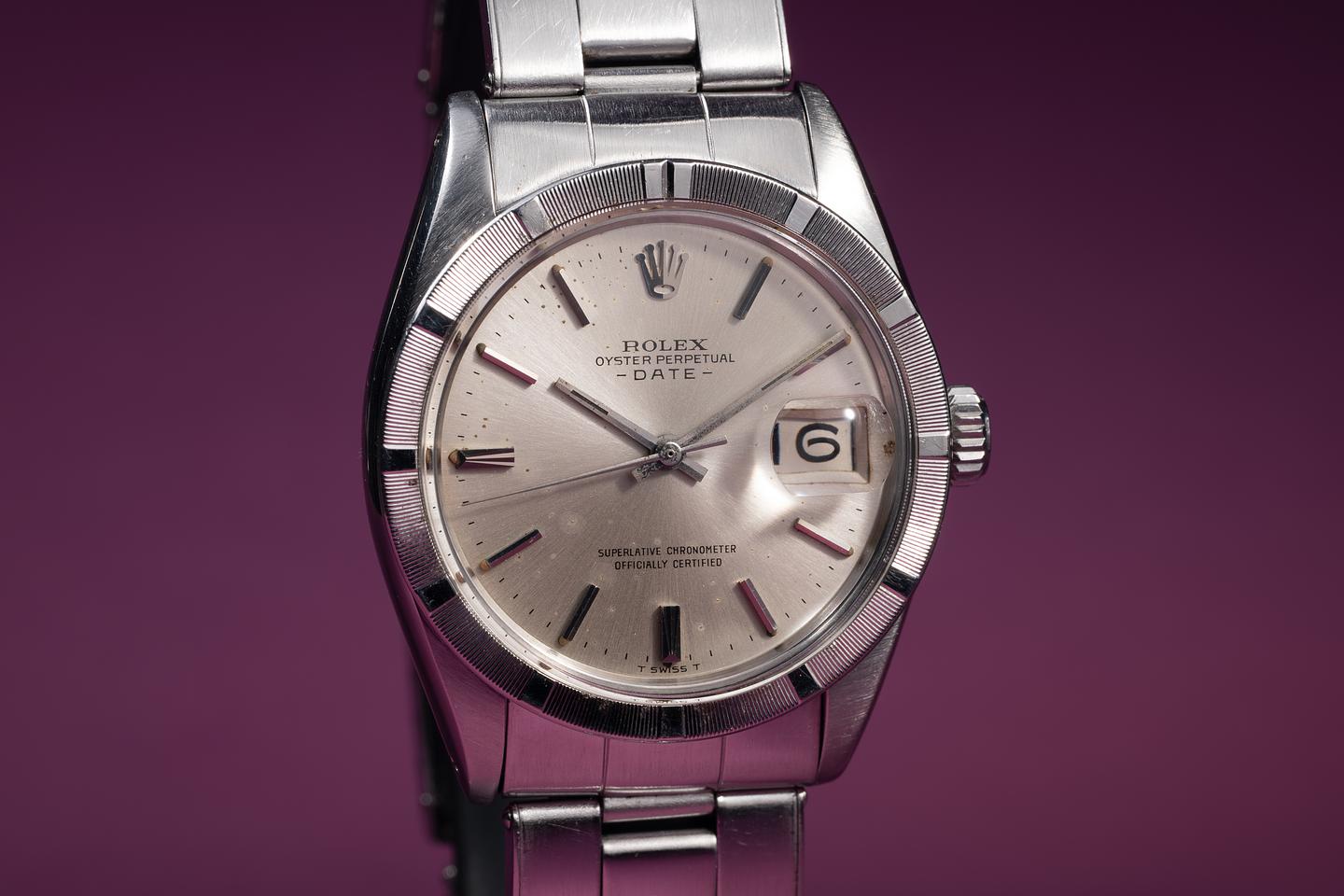 Case: The excellent 34mm case has been polished in the past and shows some light wear from use. The stainless steel engine-turned bezel is also in excellent condition, showing some light wear from use.