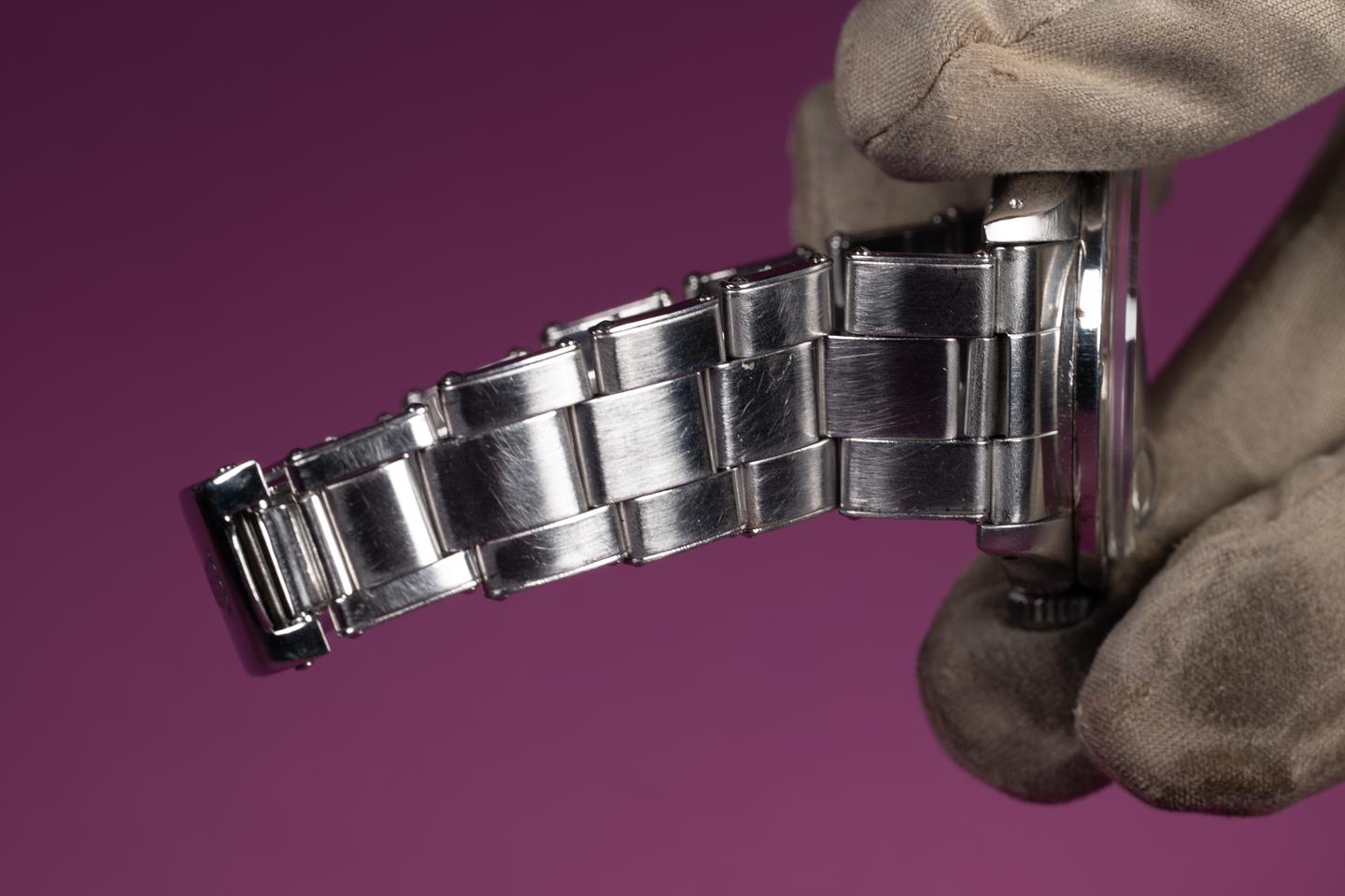 Bracelet: The 12-link Swiss rivet bracelet is excellent, showing some light stretch for its age.