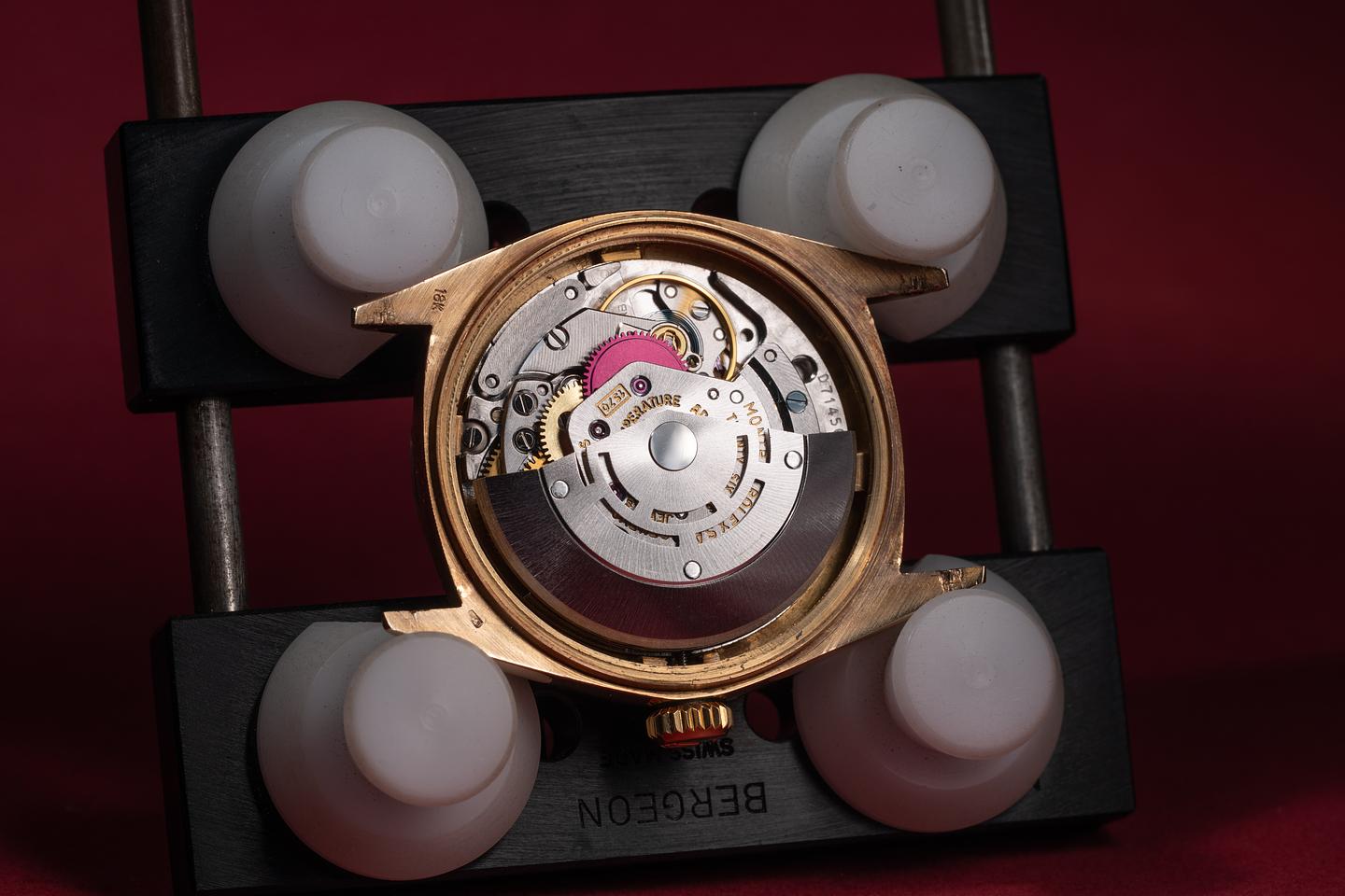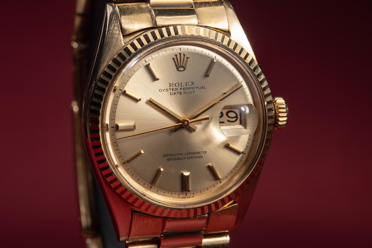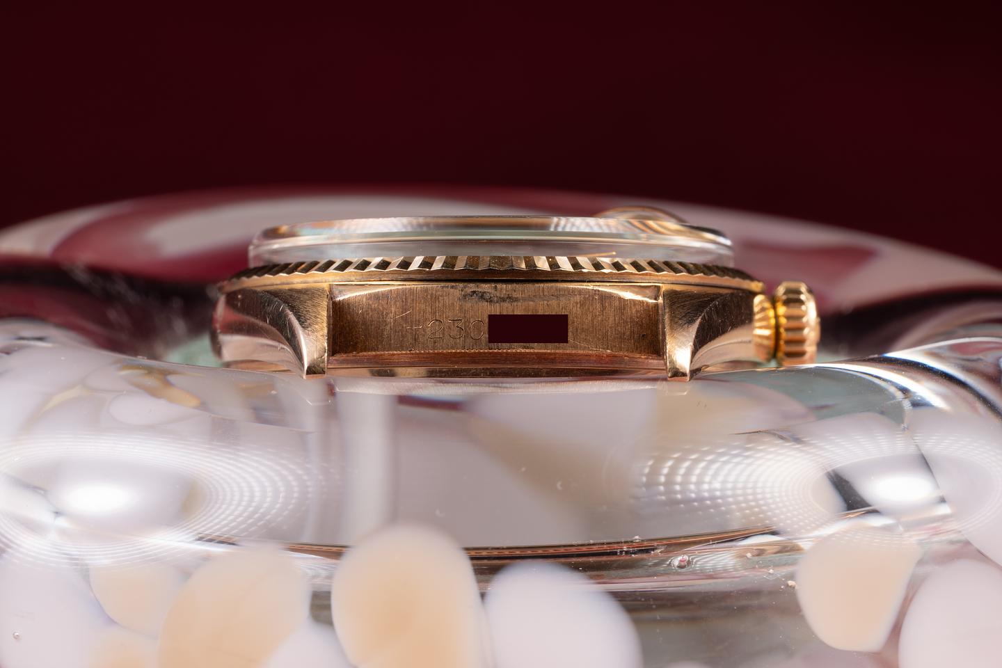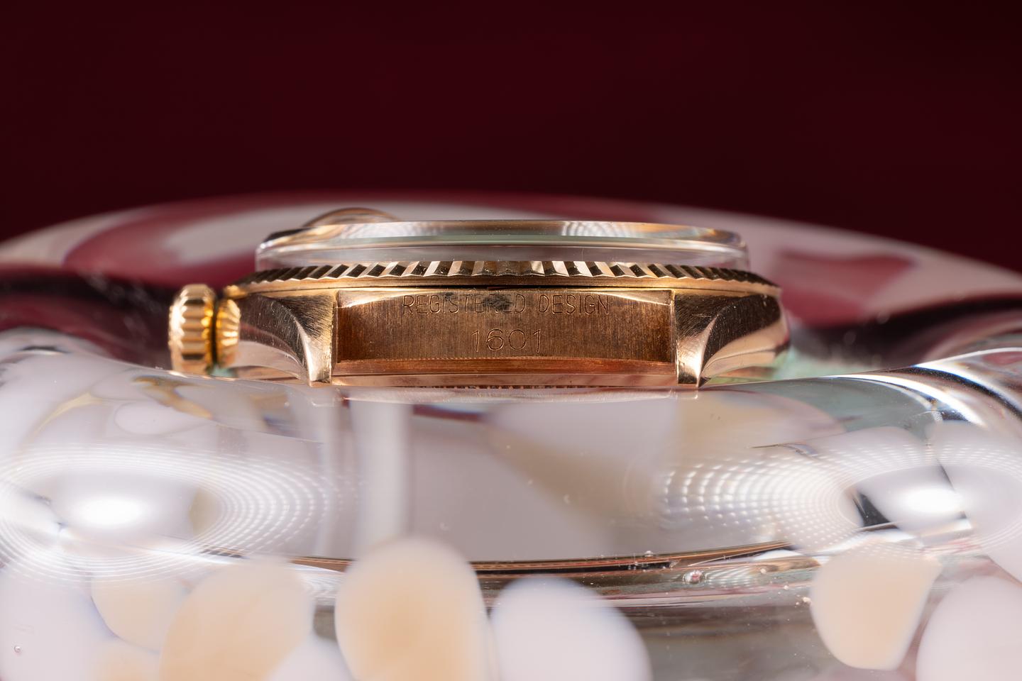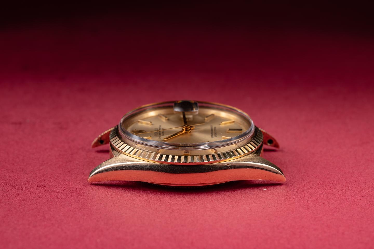 Case: The case is excellent, showing a sleeve polished finish and some light wear from use. The sharp 18K yellow gold fluted bezel is also in excellent condition, showing only light wear from use.