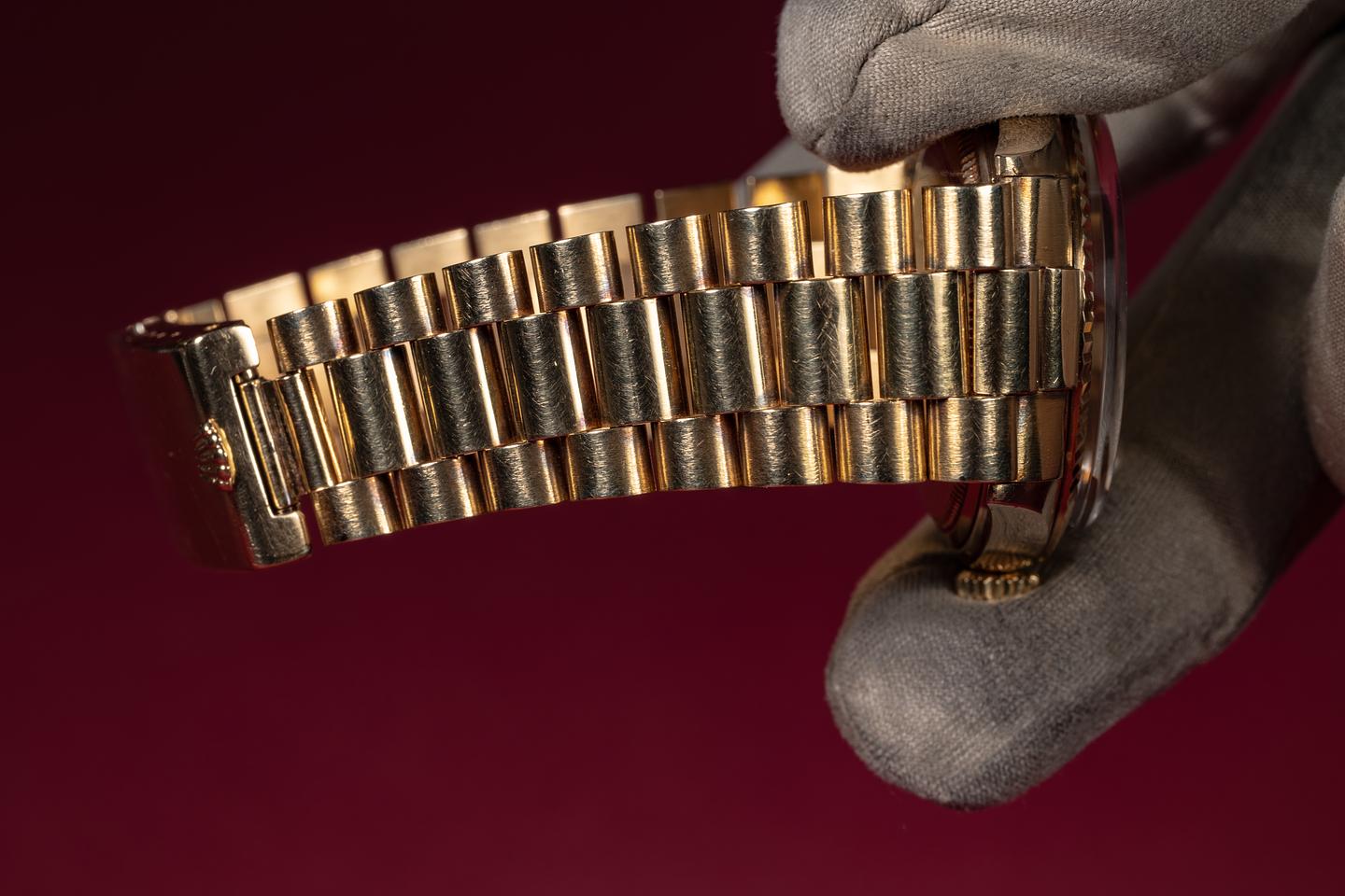Bracelet: The 19-link 18K yellow gold President bracelet is excellent, showing only very light stretch for its age.