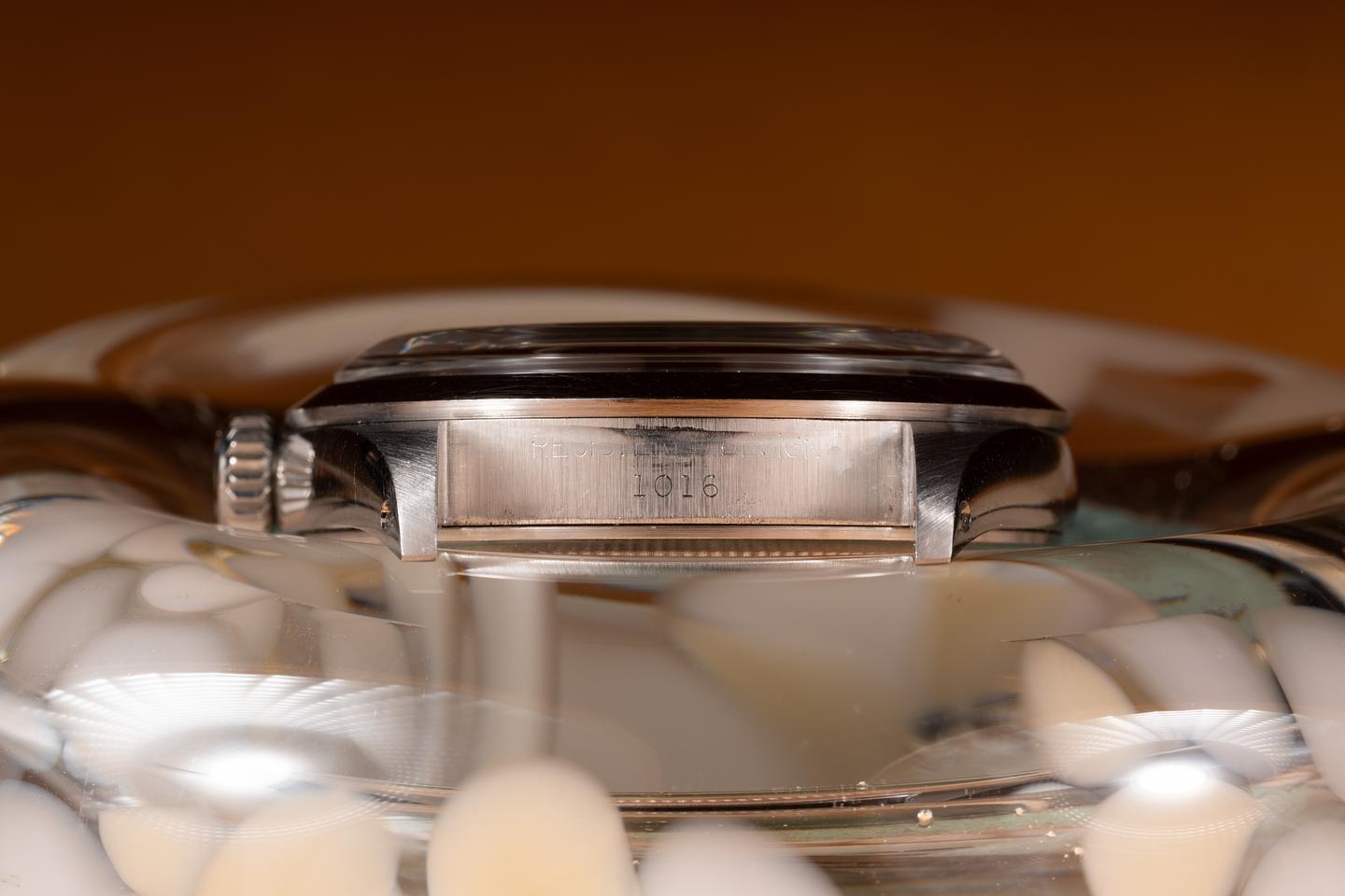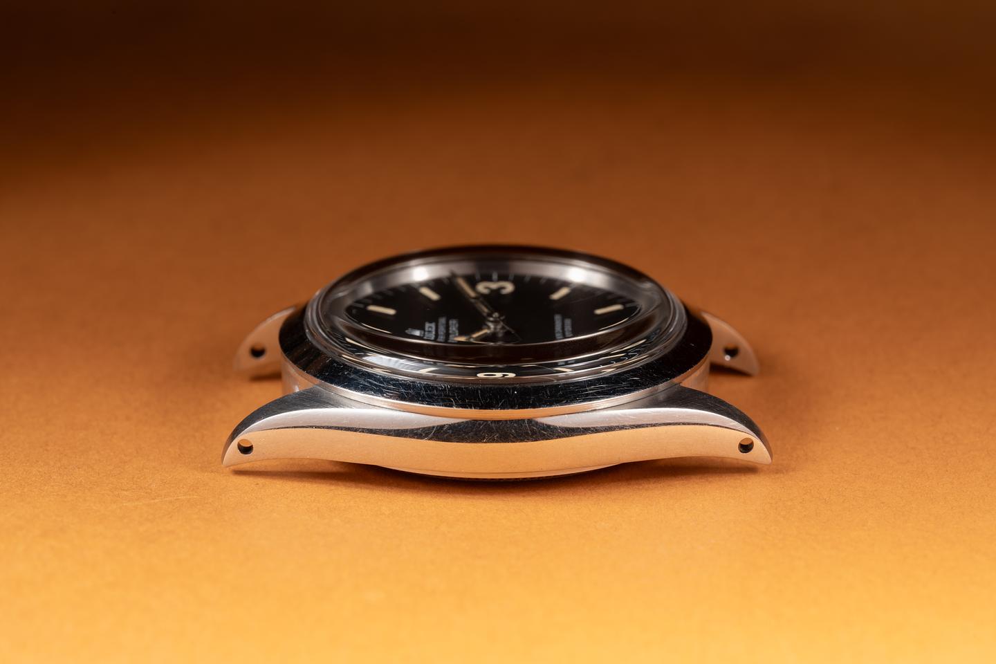 Case: The sharp 36mm case is excellent showing only very light wear. The smooth stainless bezel is also in excellent condition showing only very light wear.