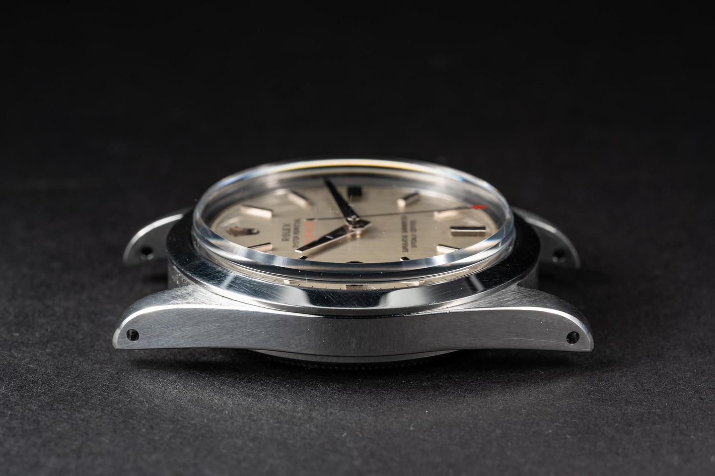 Notes The no lume dial in combination with the no lume black enamel hands denotes this watch as one specifically developed for the scientists at the CERN particle accelerator. To where any tiny amount of radiation could affect the outcome of experiments performed in the accelerator. This watch was bought from the son of the orginal owner who flew from Seattle to meet me in San Francisco.