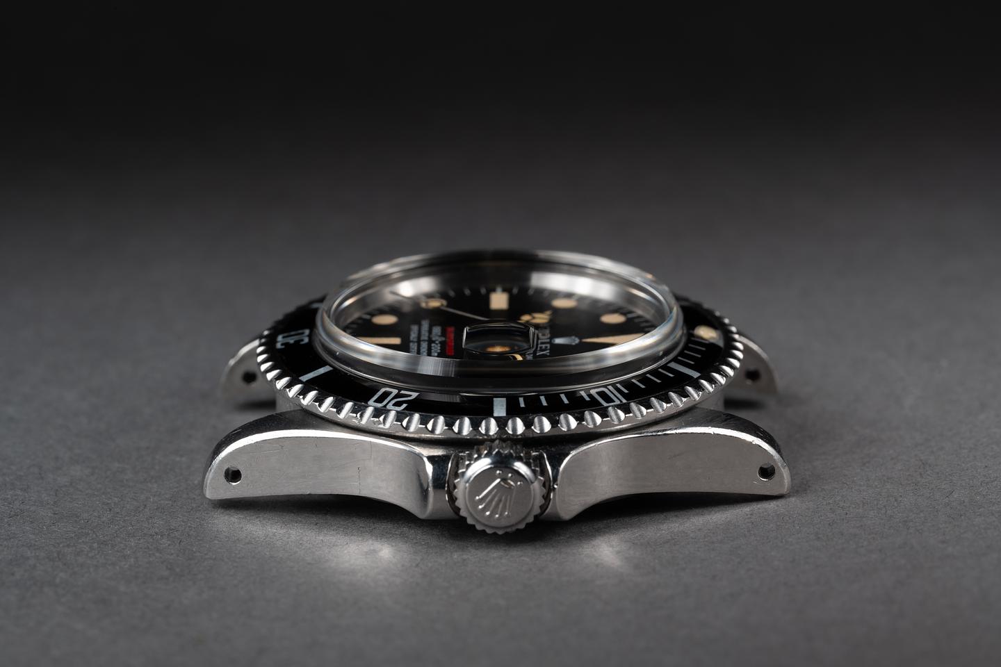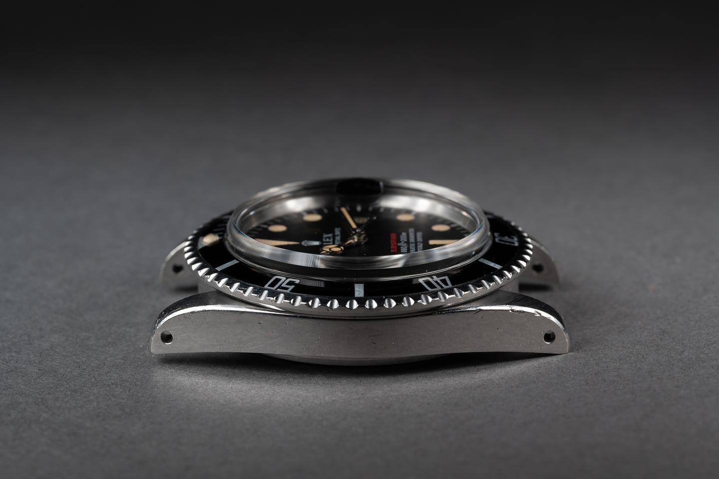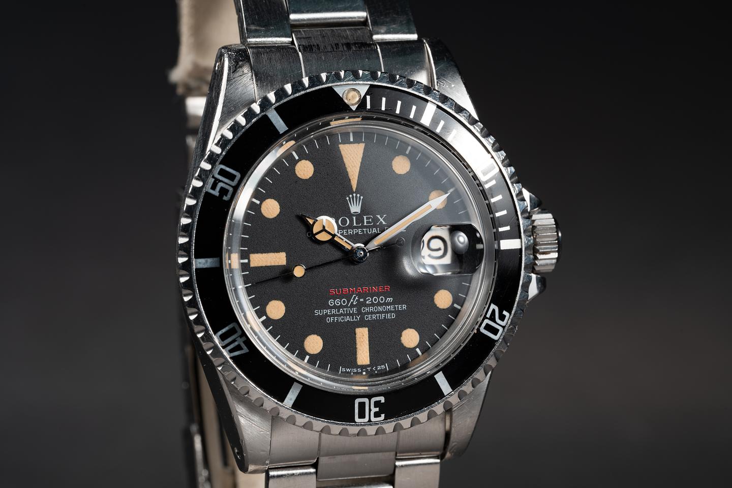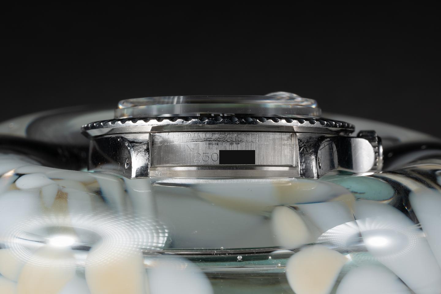 Case: The excellent case appears to be unpolished showing wide prominent factory bevels and light to average wear from use. The black bezel is also in excellent condition showing only light wear from use.