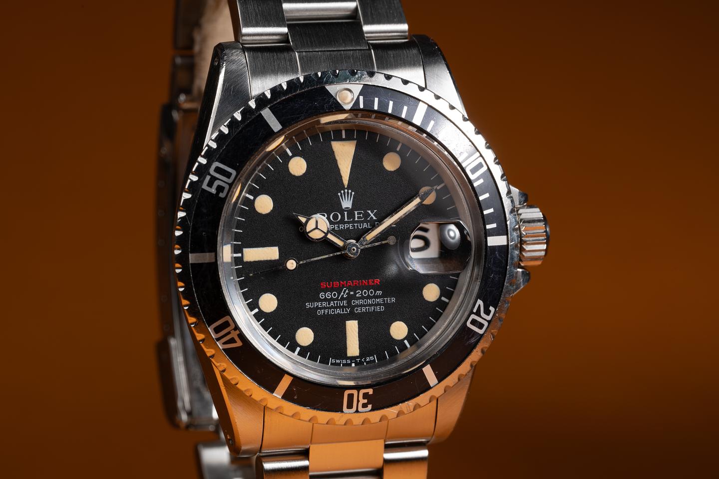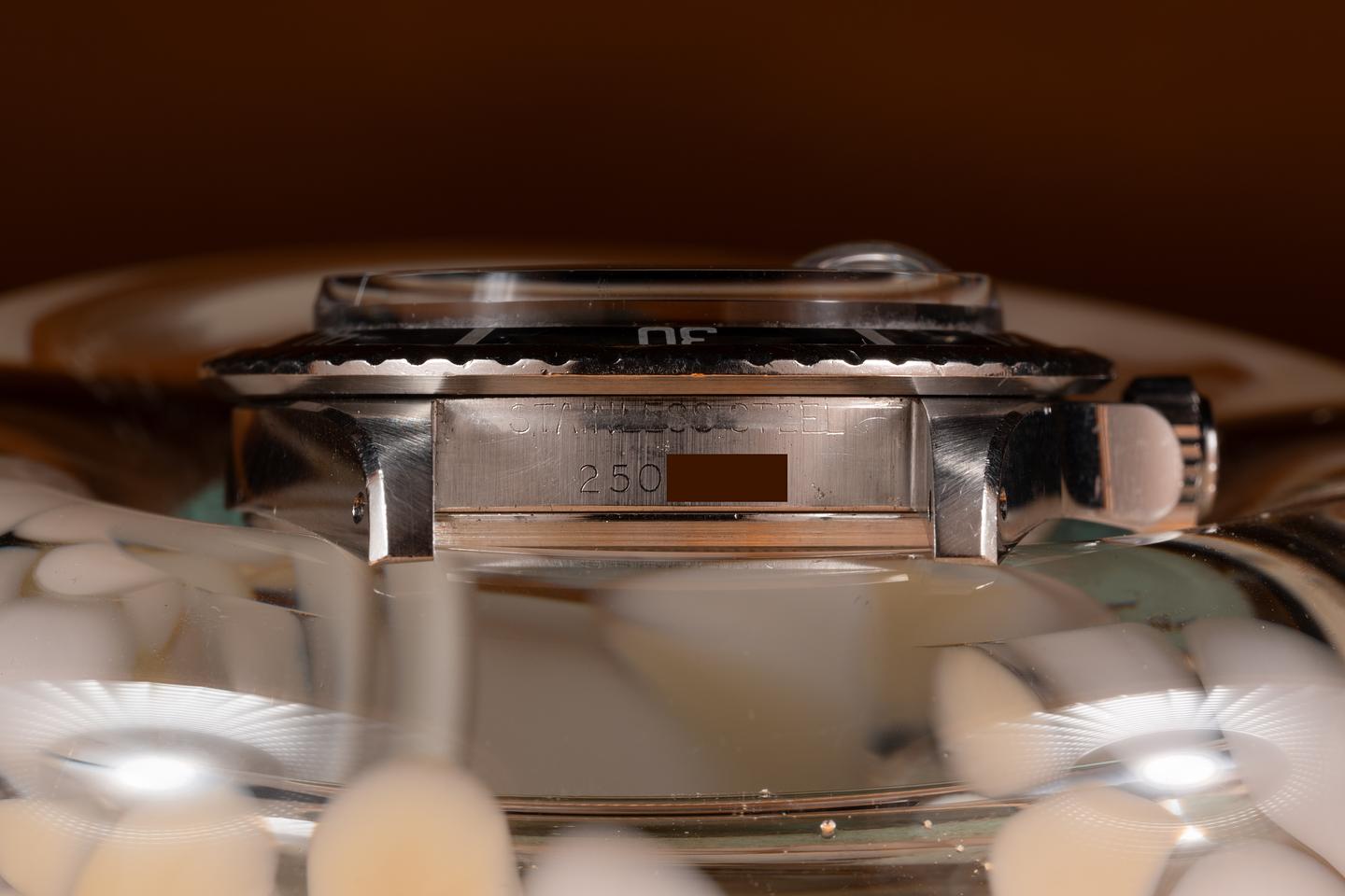 Case: The case is excellent showing sharp prominent bevels and some light wear from use. The black bezel insert is also in excellent condition showing average wear.