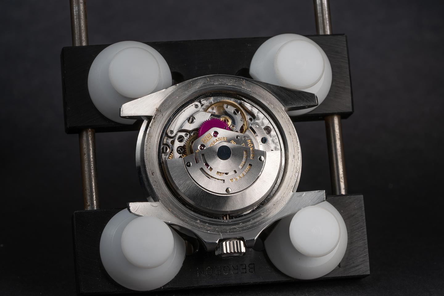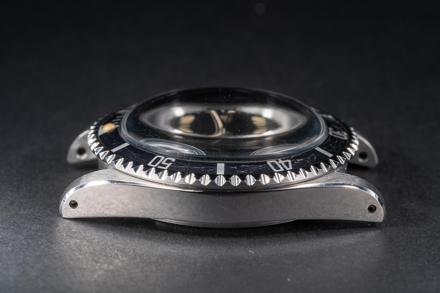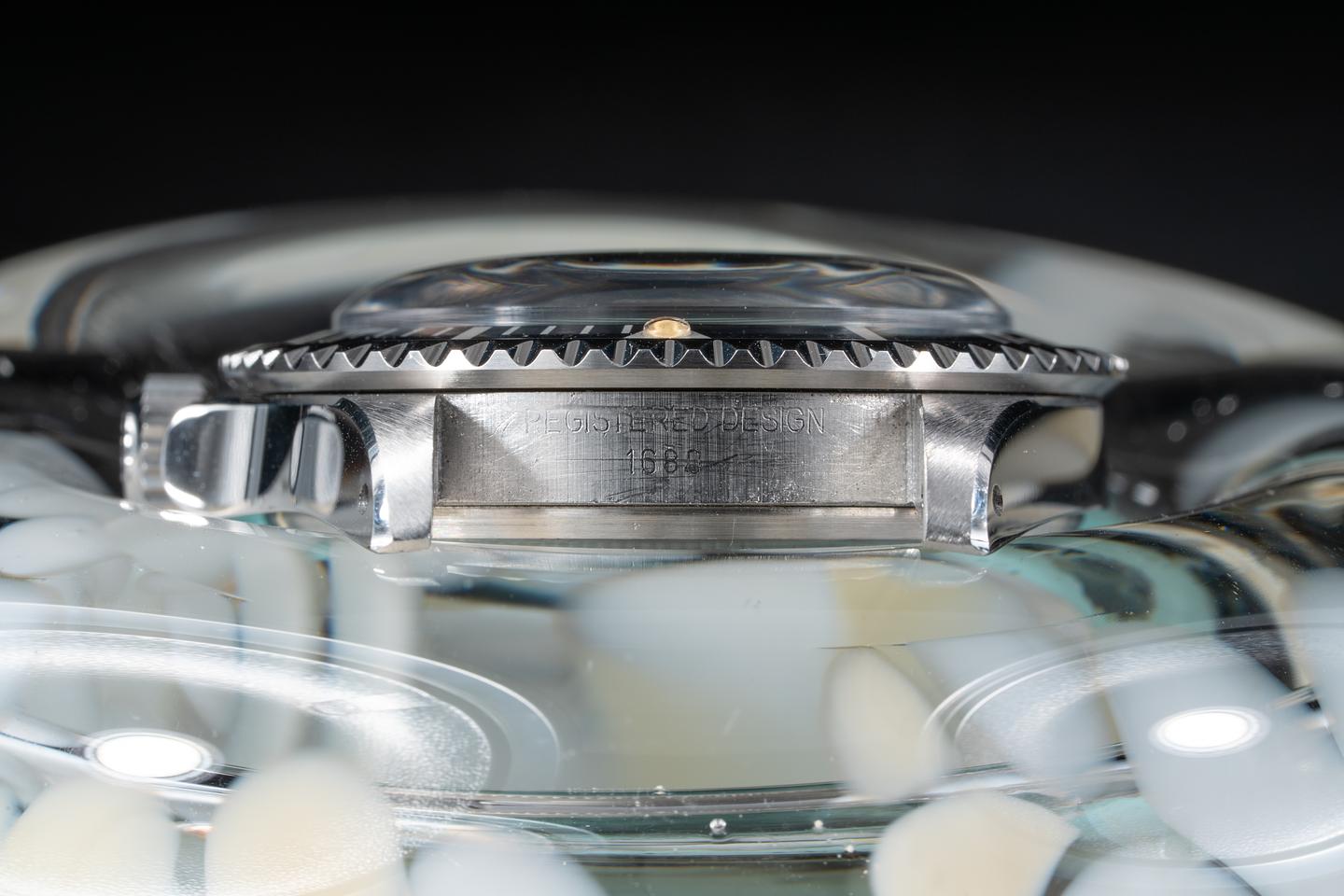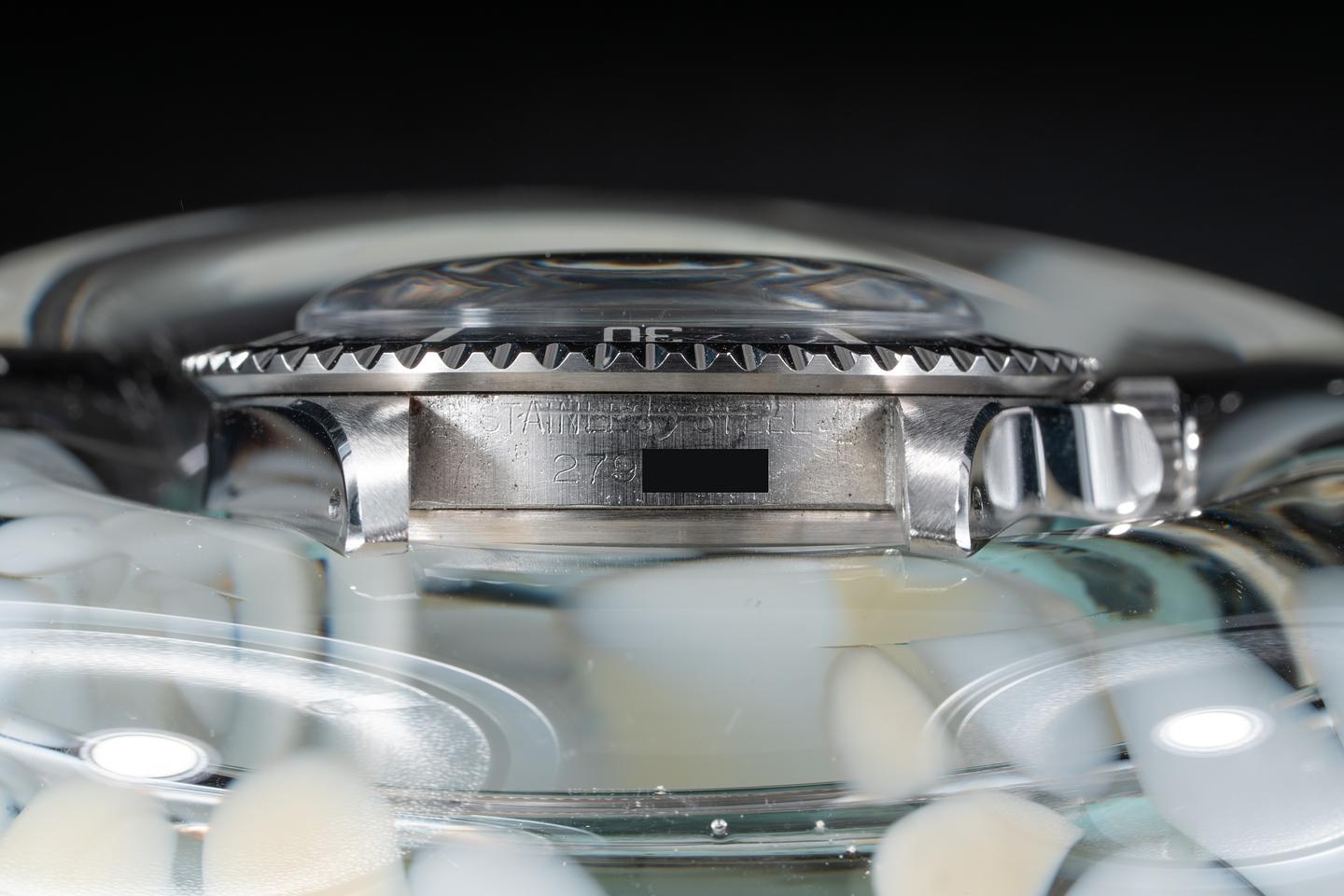 Case: The recently polished case is in excellent condition and shows sharp prominent bevels and only very light wear from use. The bezel insert is also in excellent condition and has aged to a dark navy blue hue.