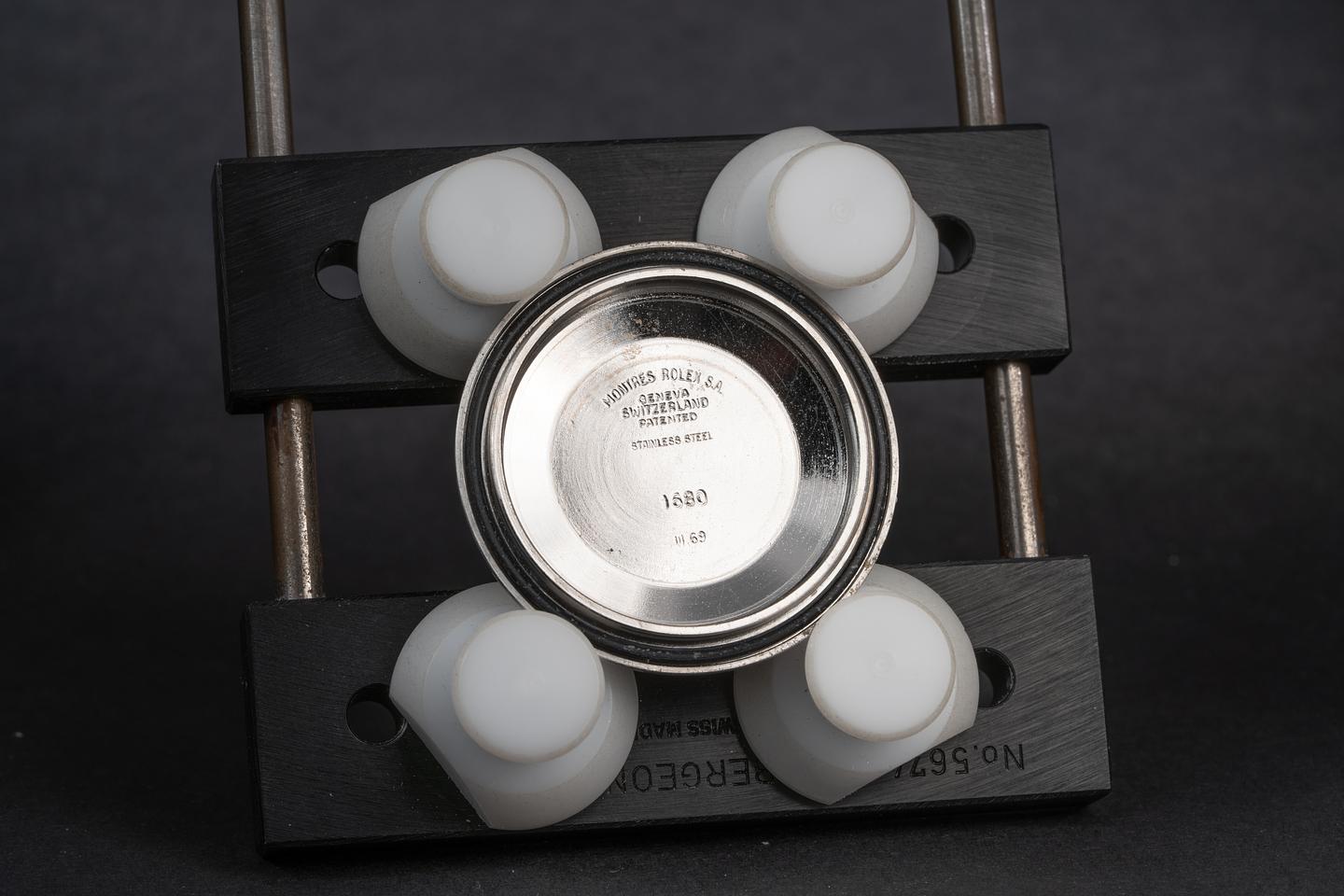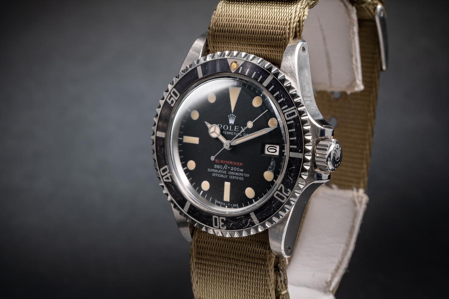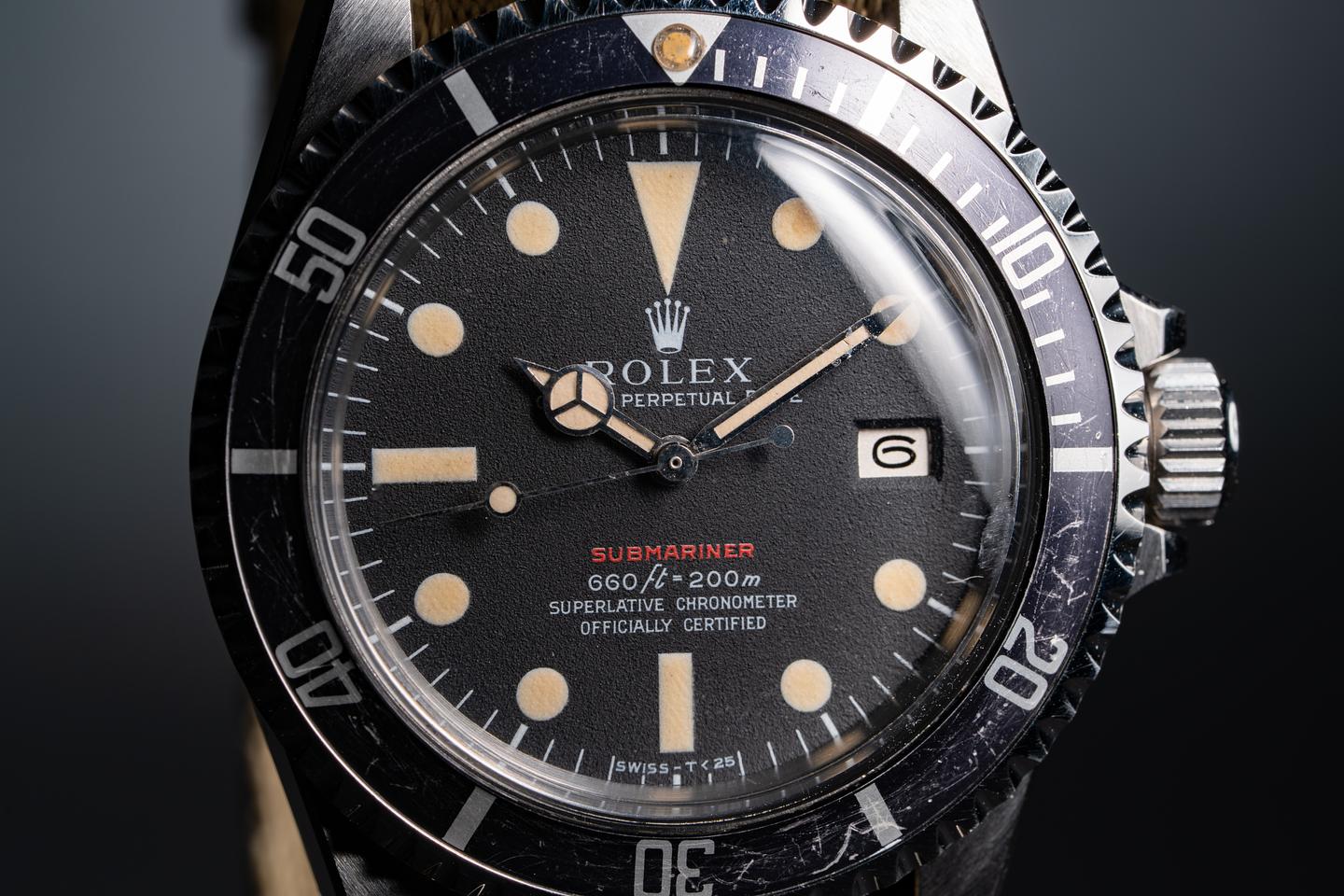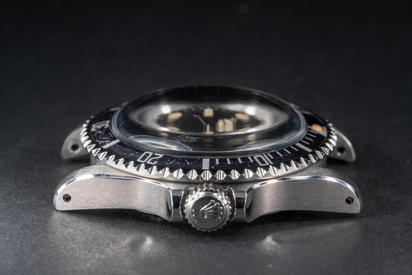 Case: The recently polished case is in excellent condition and shows sharp prominent bevels and only very light wear from use. The bezel insert is also in excellent condition and has aged to a dark navy blue hue.