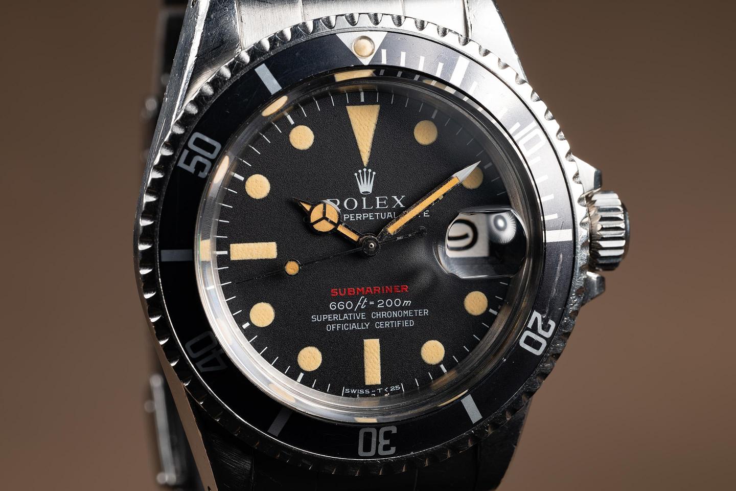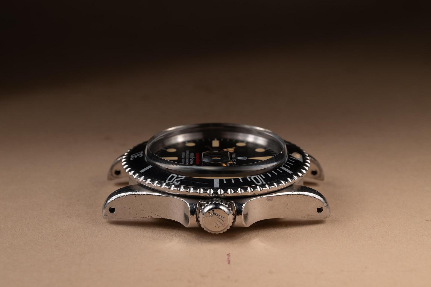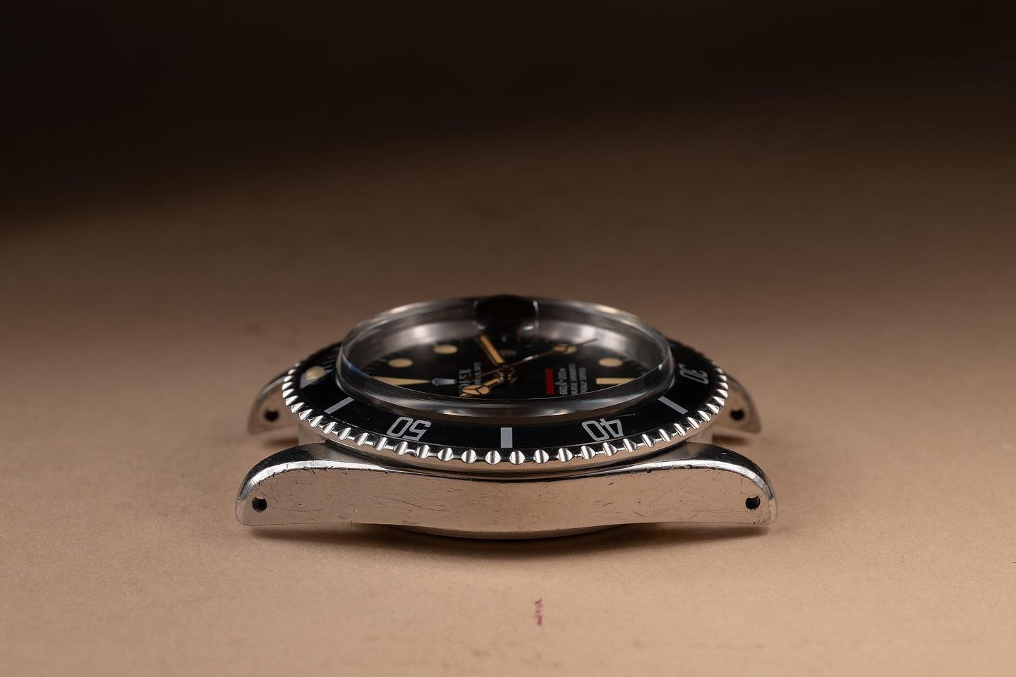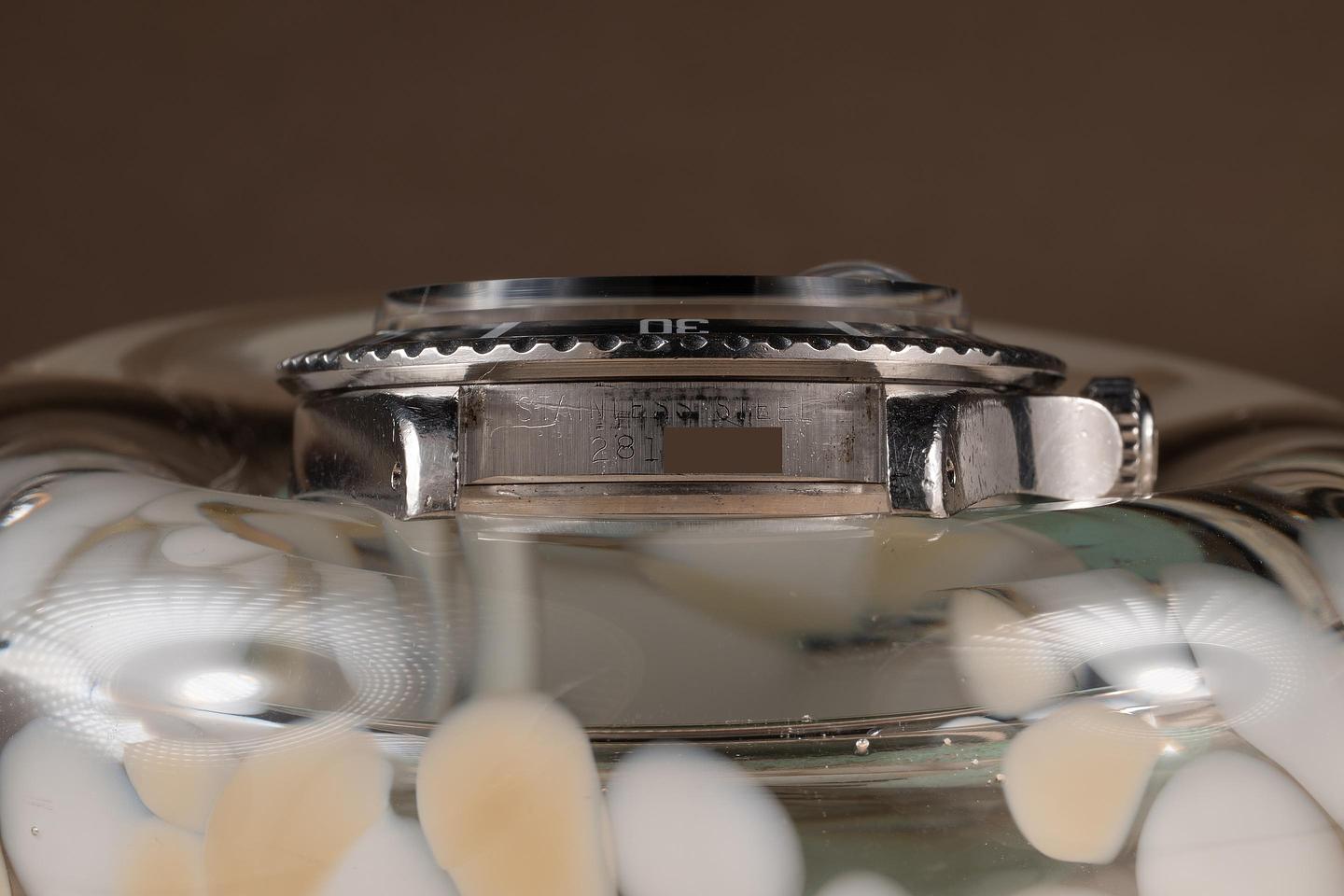 Case: The unpolished case is excellent, showing prominent factory bevels and average wear from use. The bezel insert is also in excellent condition and has aged to a dark grey tone, showing only light wear from use.